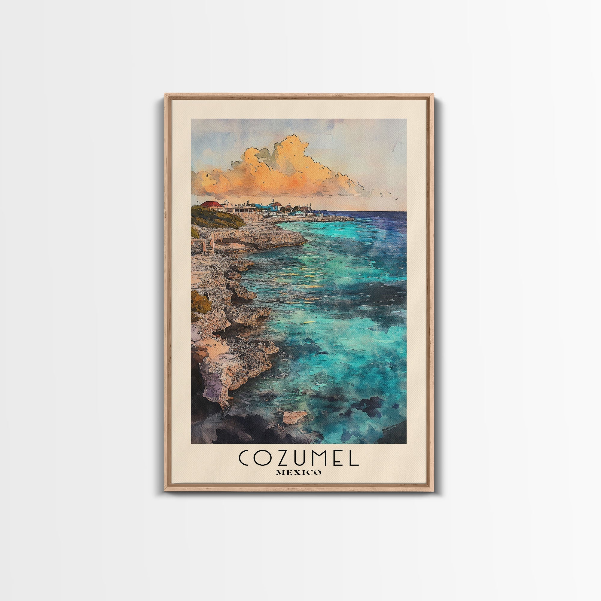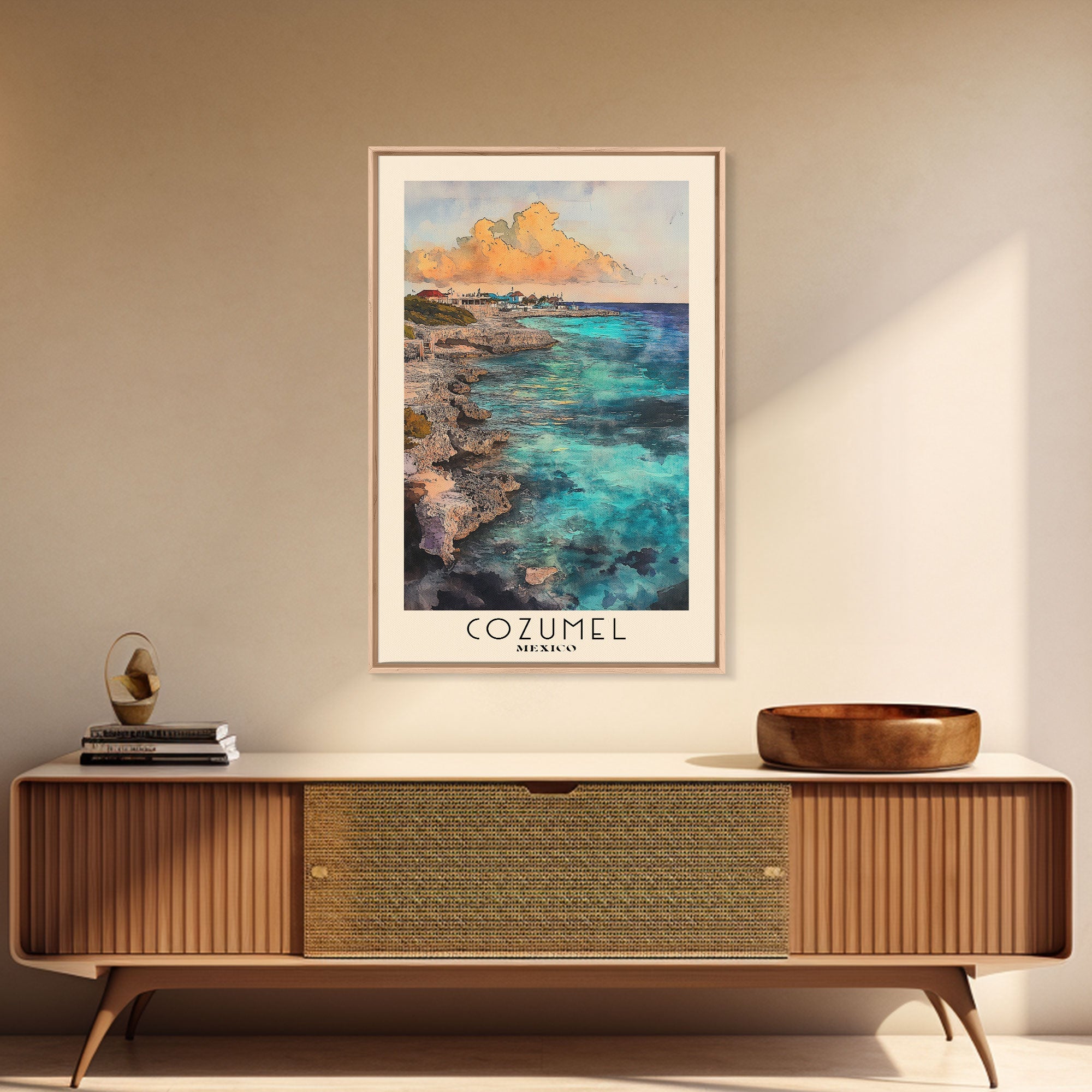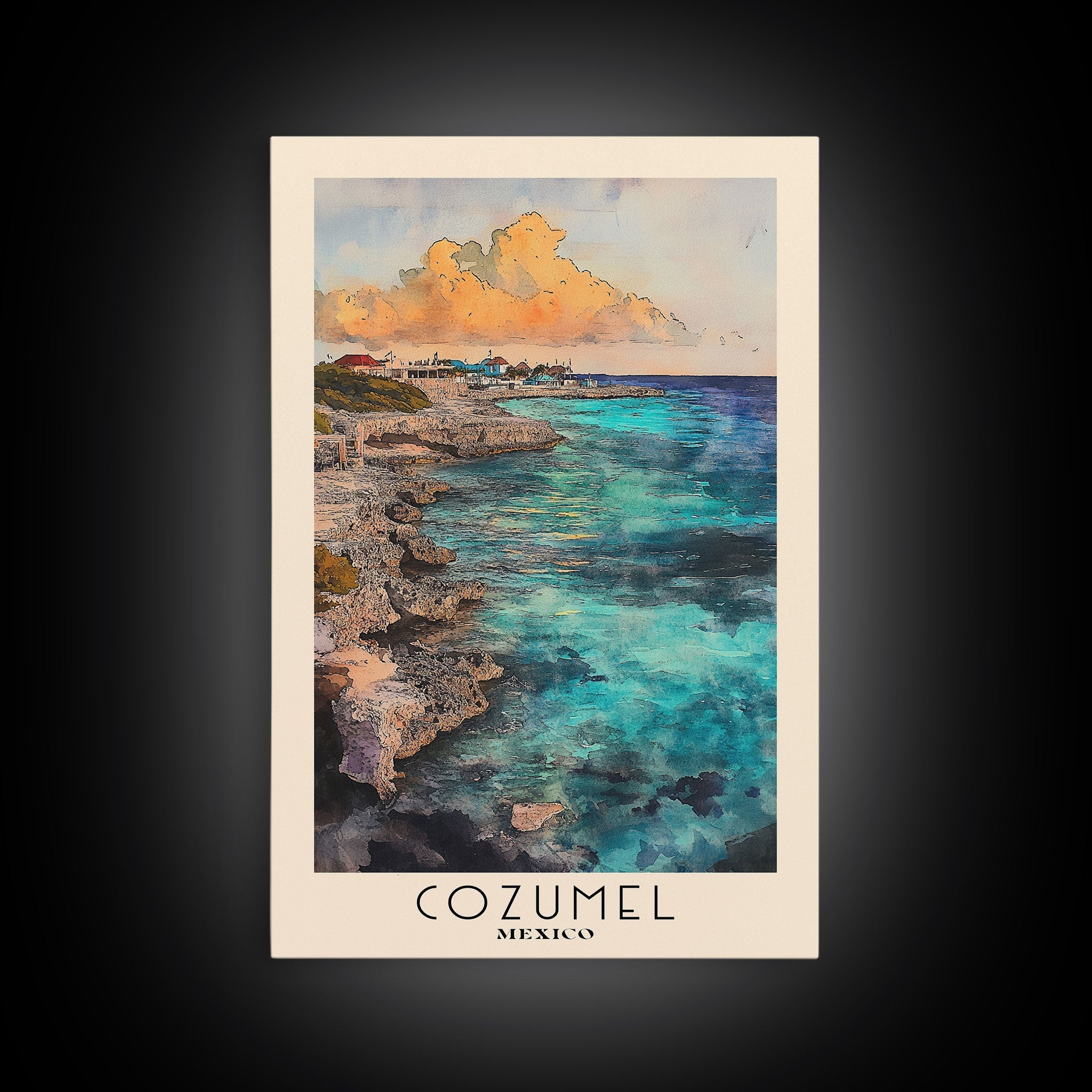Cozumel, Mexico Watercolor Print, Vacation Gift, Mexico Wall Art, Beach Painting, Beach Decor, Large Wall Art, Wood Frame Art