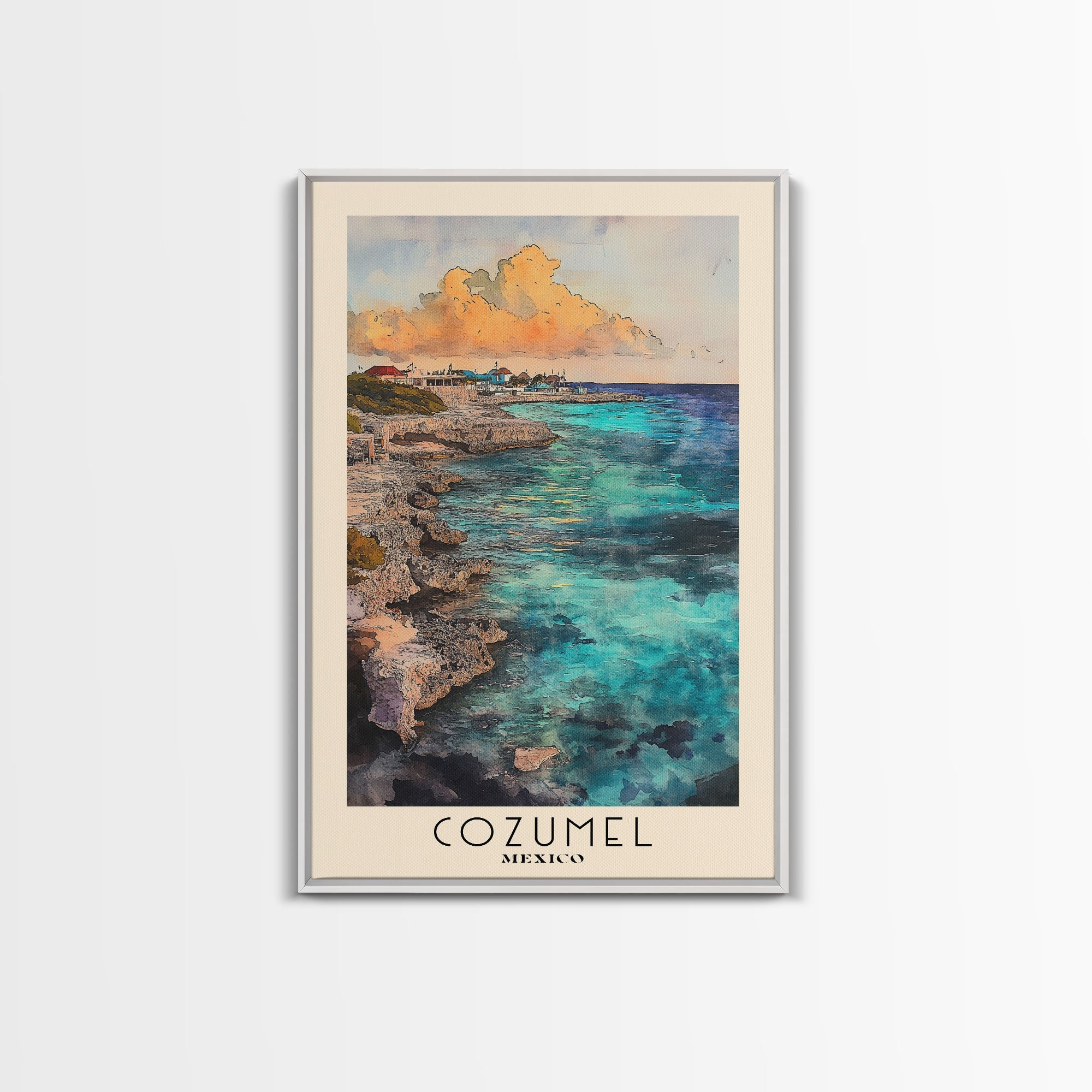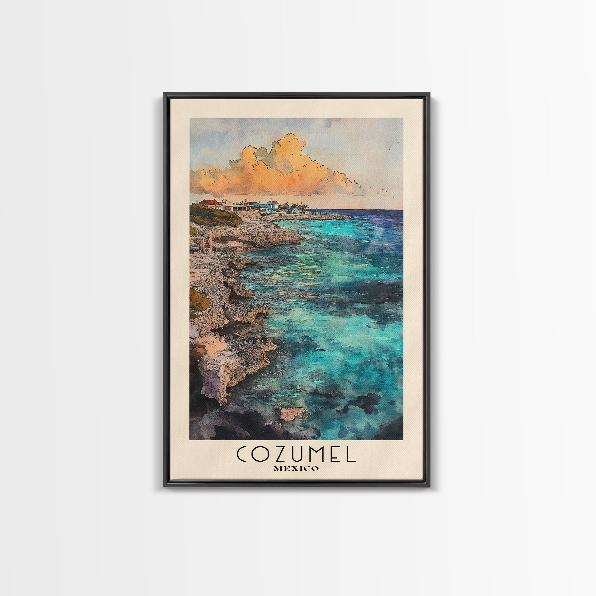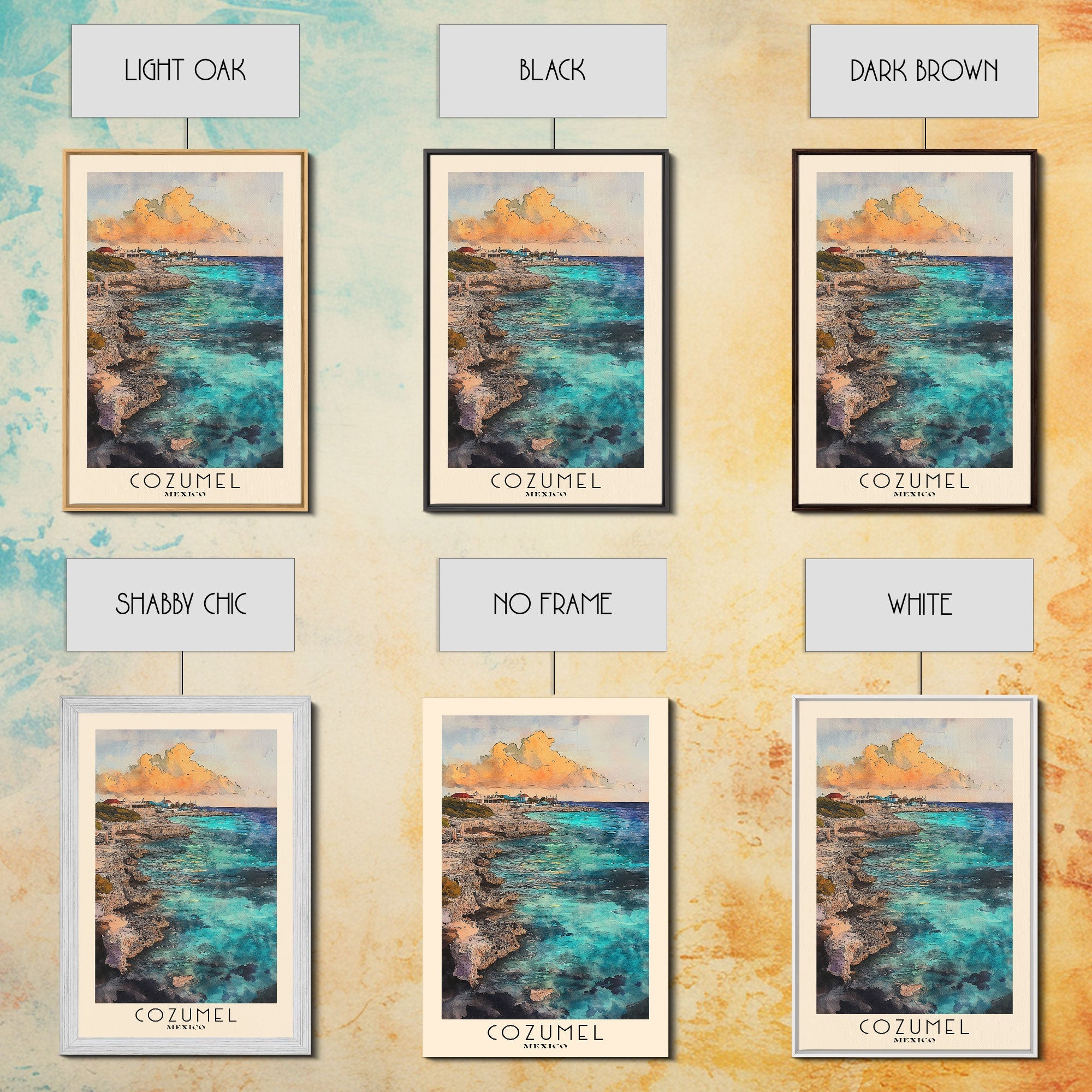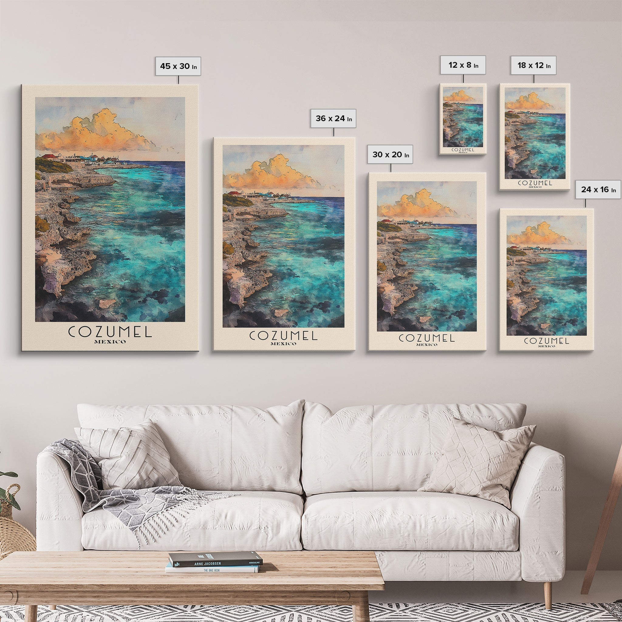 Cozumel, Mexico Watercolor Print, Vacation Gift, Mexico Wall Art, Beach Painting, Beach Decor, Large Wall Art, Wood Frame Art