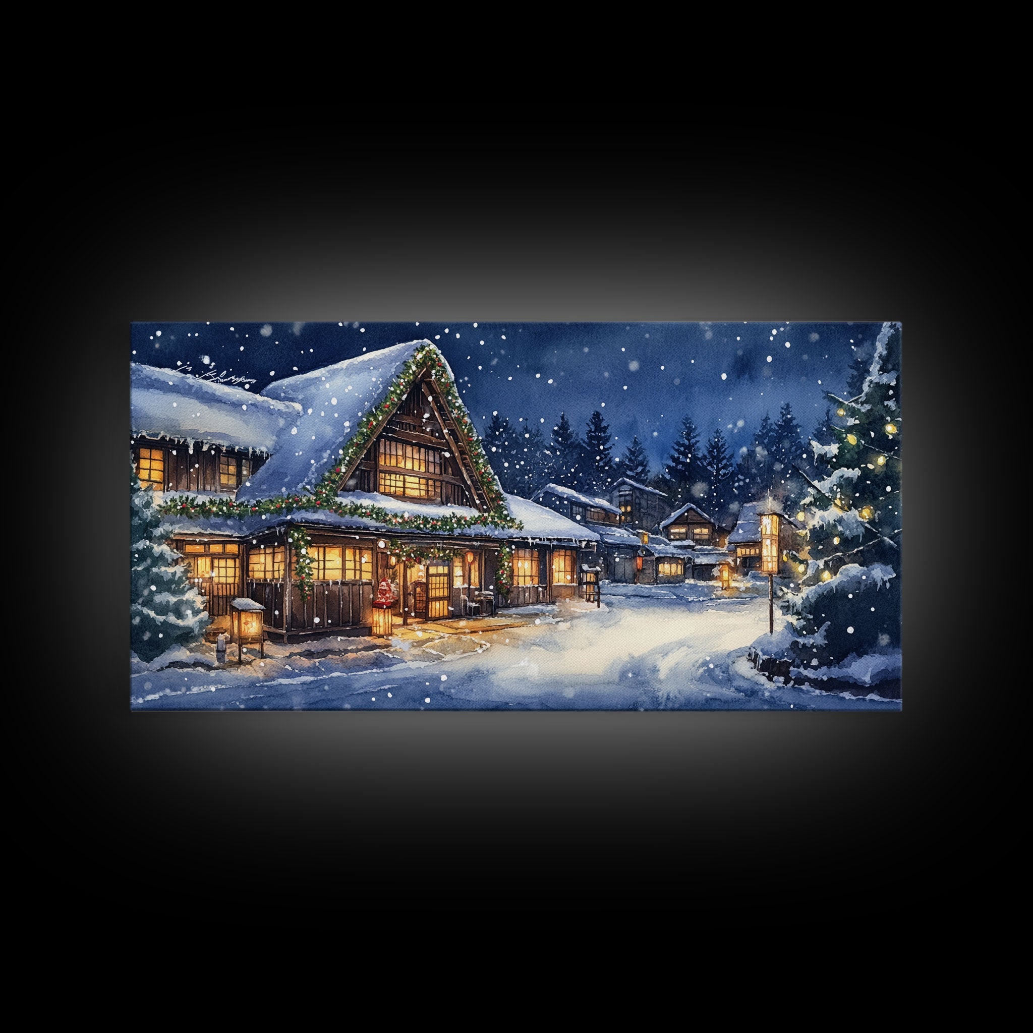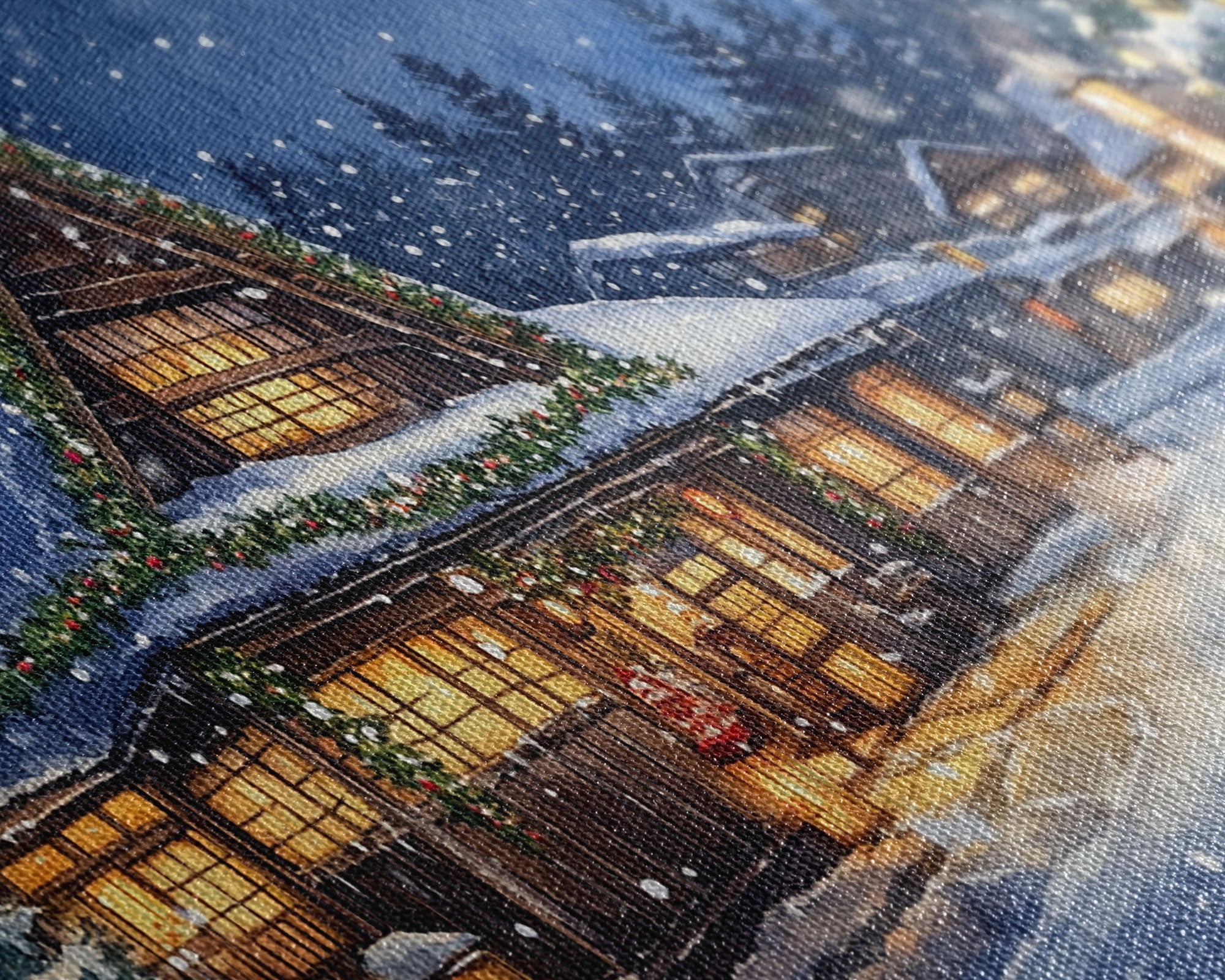 Cozy Snowy Christmas Cabin Scene Canvas Print | Winter Wonderland Christmas Wall Art | Rustic Christmas Decor | 2024 Holiday Art Gift