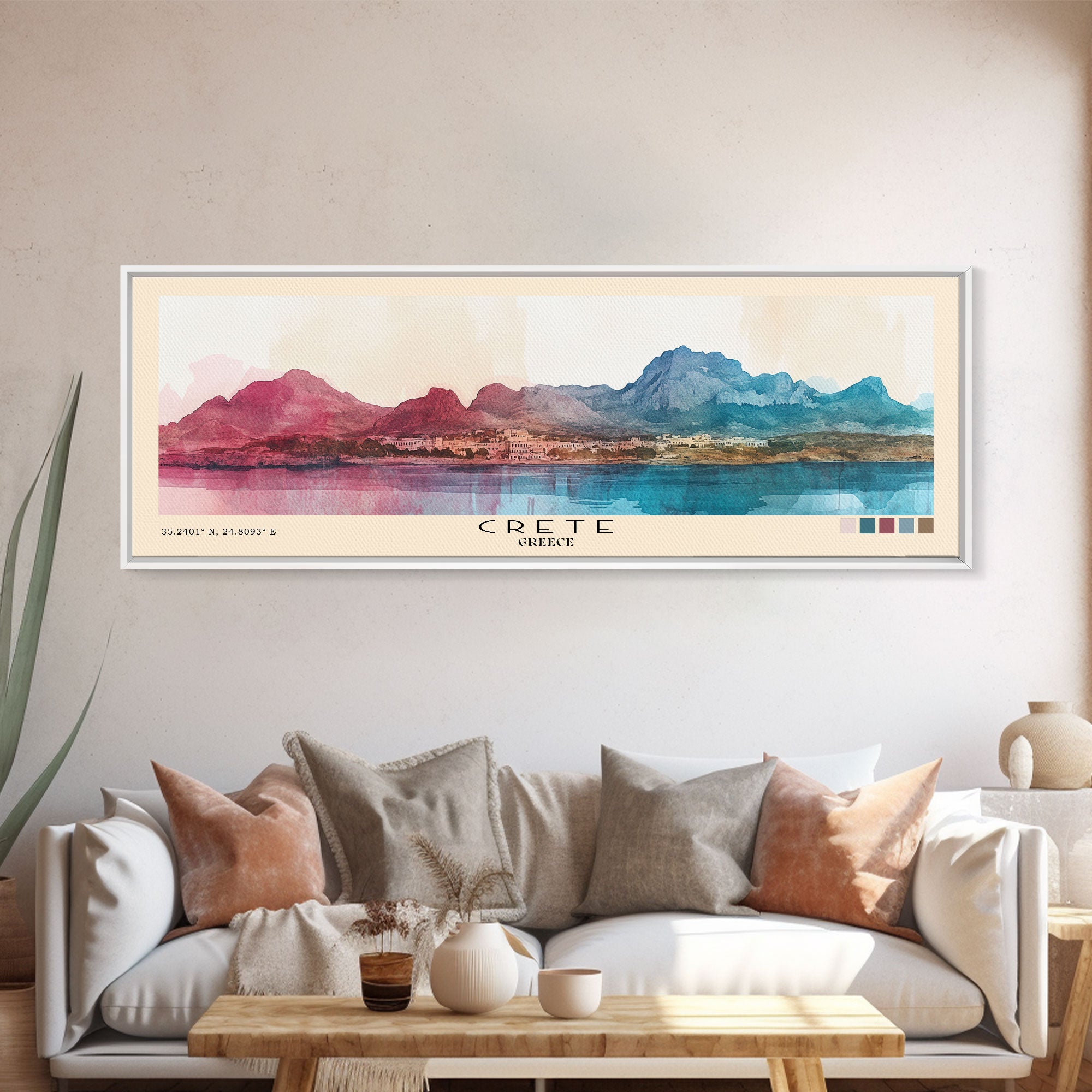 • Load image into Gallery viewer, Crete, Greece Watercolor Beach Print, Vacation Gift, Greece Wall Art, Beach Painting, Beach Decor, Beach Painting