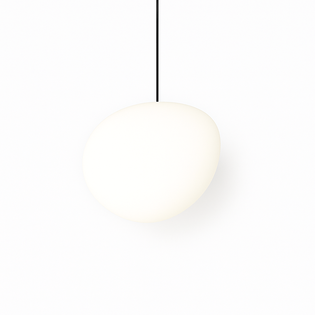 The Dario Pendant Light captivates with its modern minimalist design. Crafted from solid white satin-finished blown glass and boasting a unique irregular spherical form, this lamp casts a warm and even light, ideal for a variety of room settings from living spaces and bedrooms to entranceways and kitchen islands. It has an eye-catching design that elevates any space it's in.