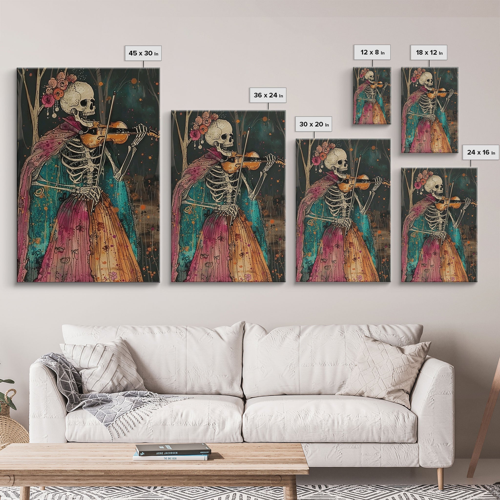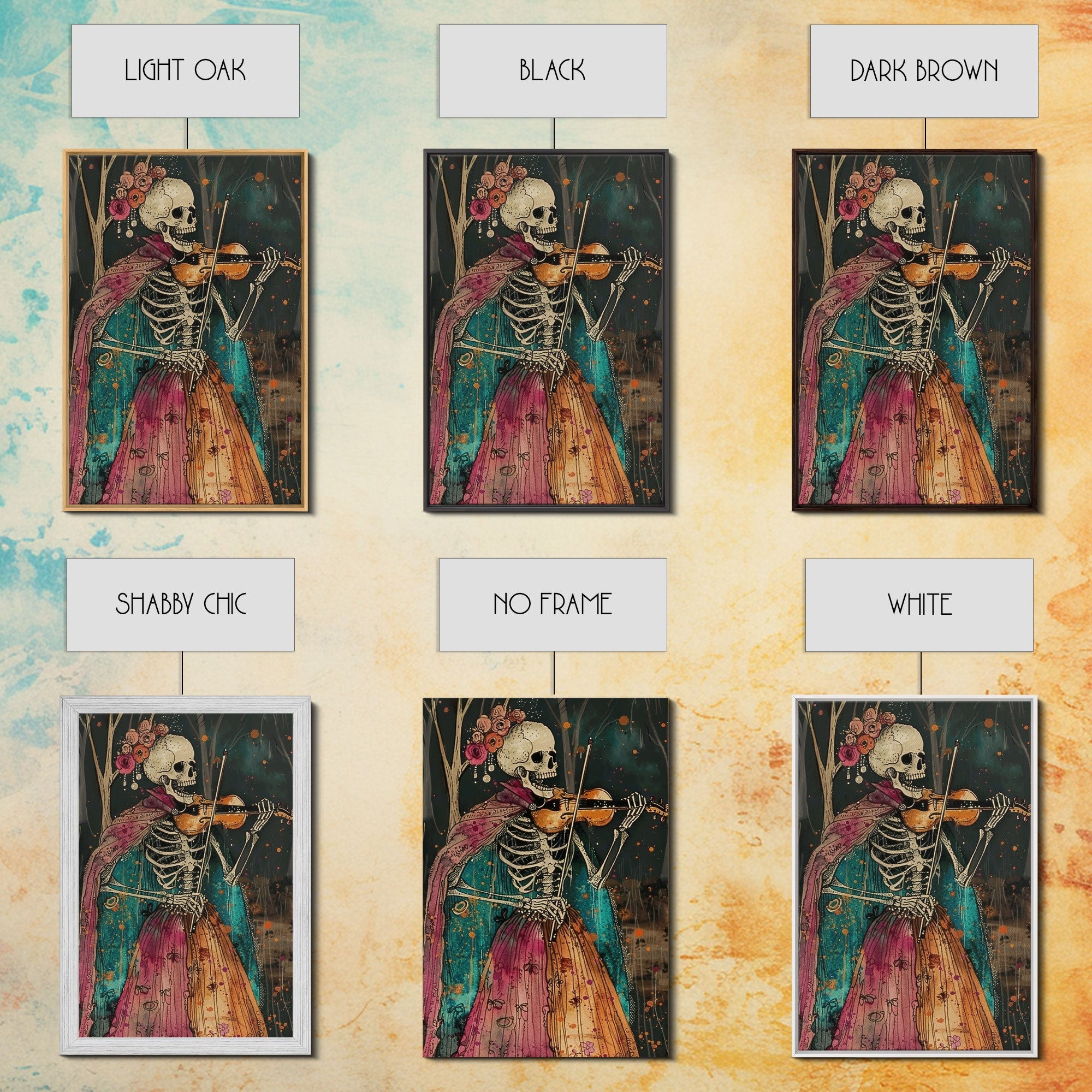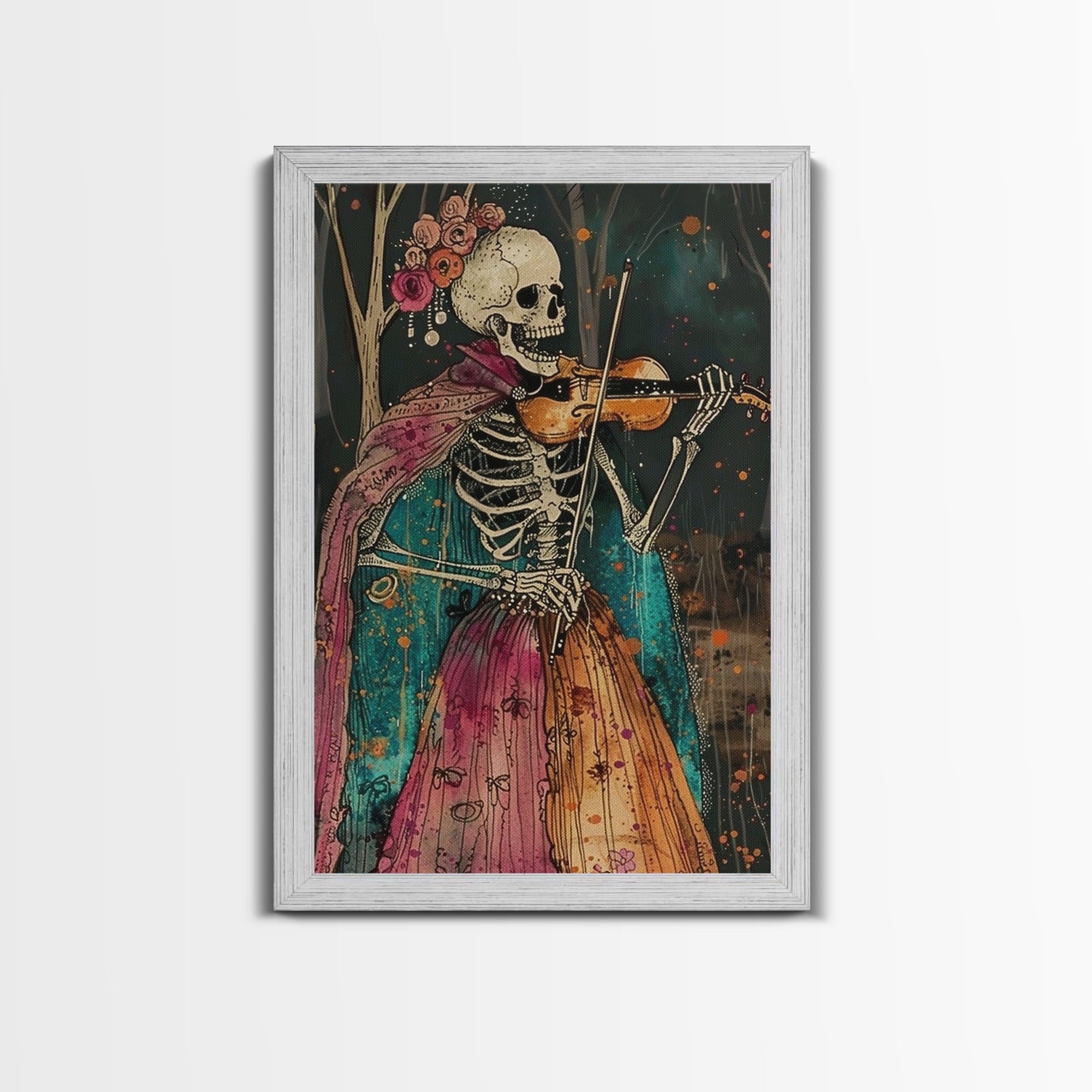 Day of the Dead Skeleton Playing Violin - Colorful Skeleton Art - Dia de los Muertos Inspired Print - Halloween Skeleton Decor