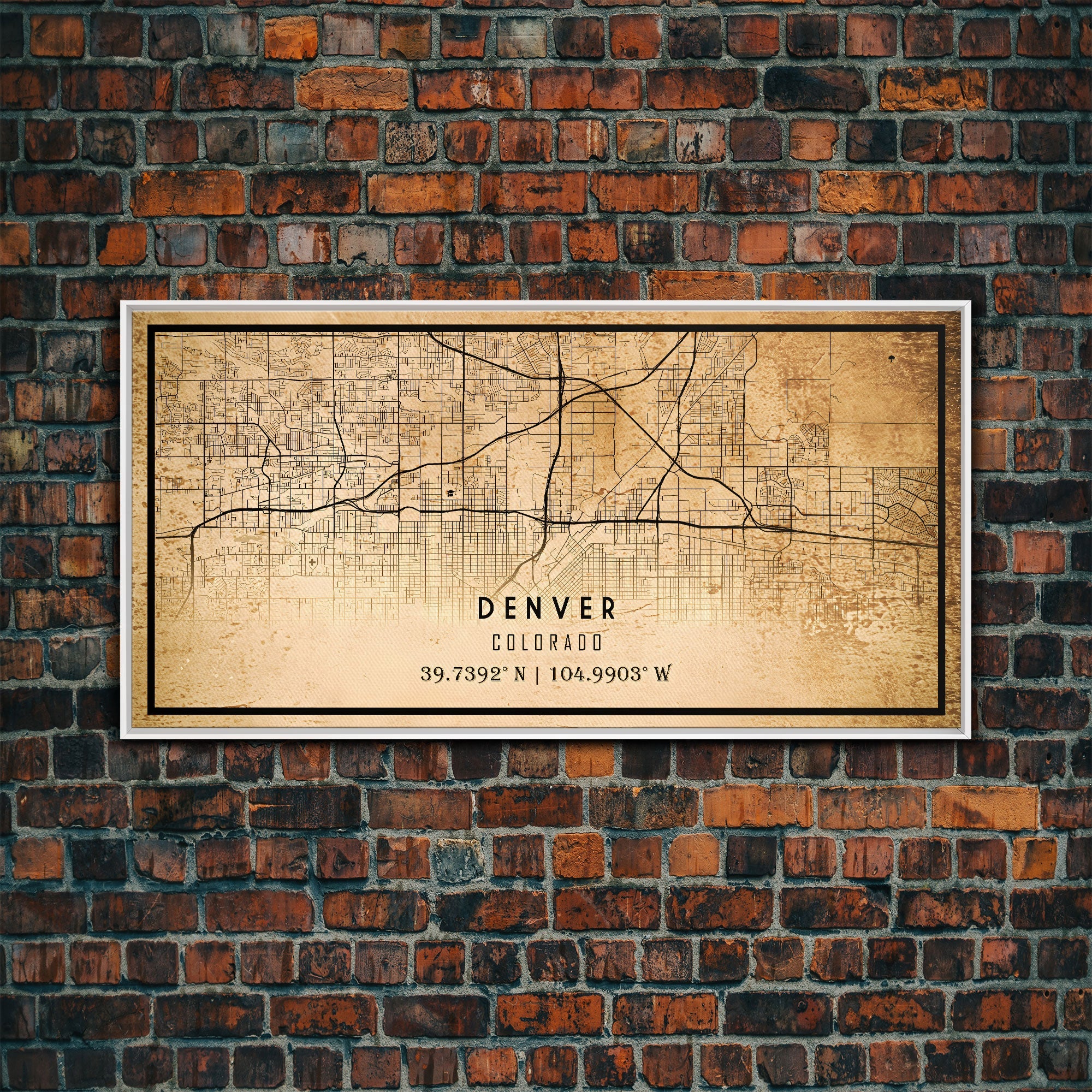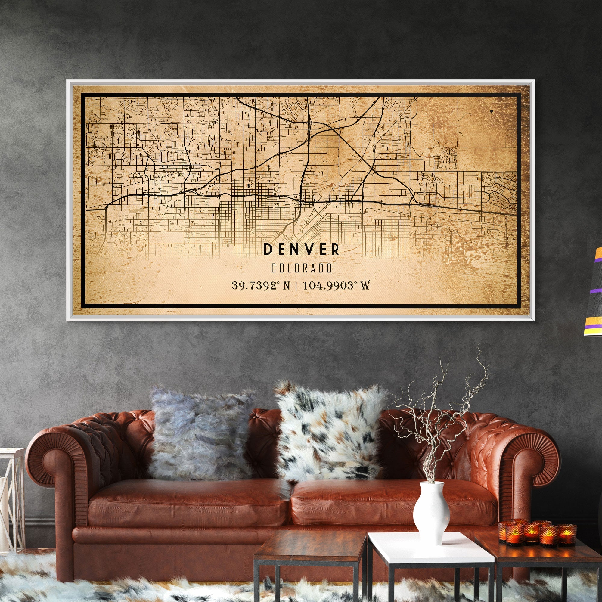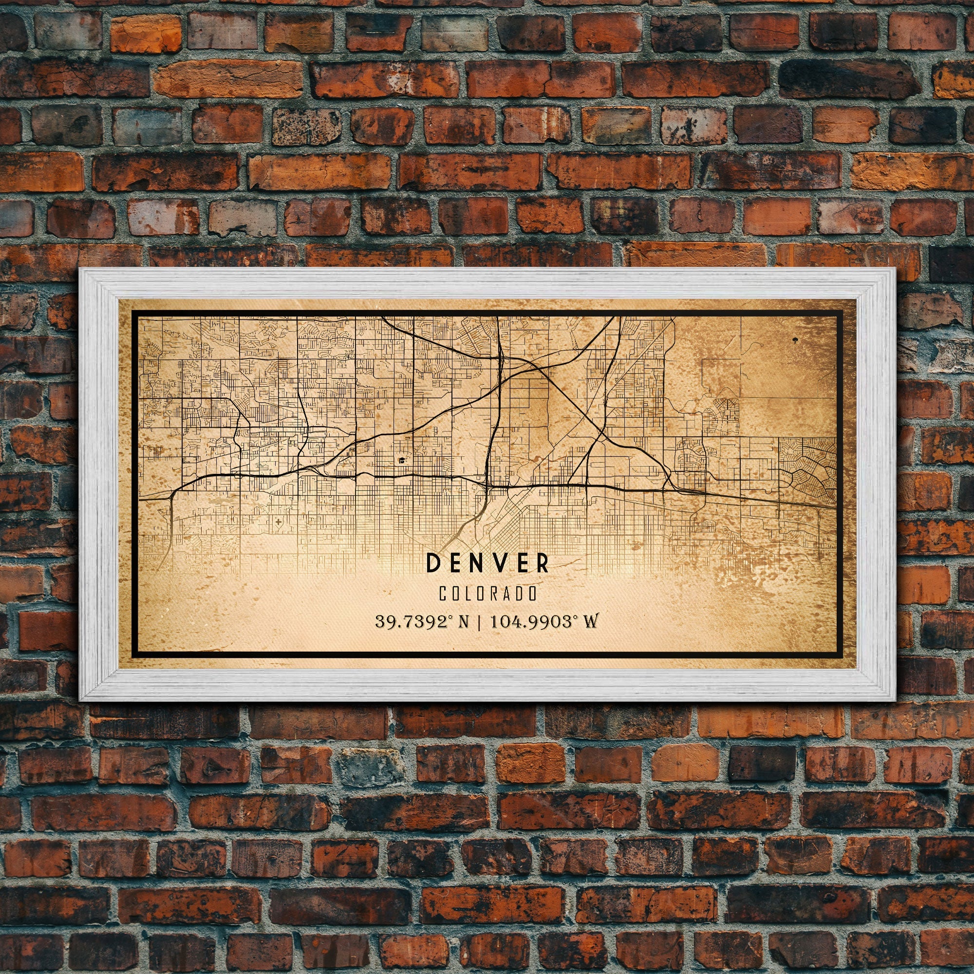 Denver map print poster canvas, Colorado map print poster canvas, Denver city map print poster canvas, framed road map art, office decor
