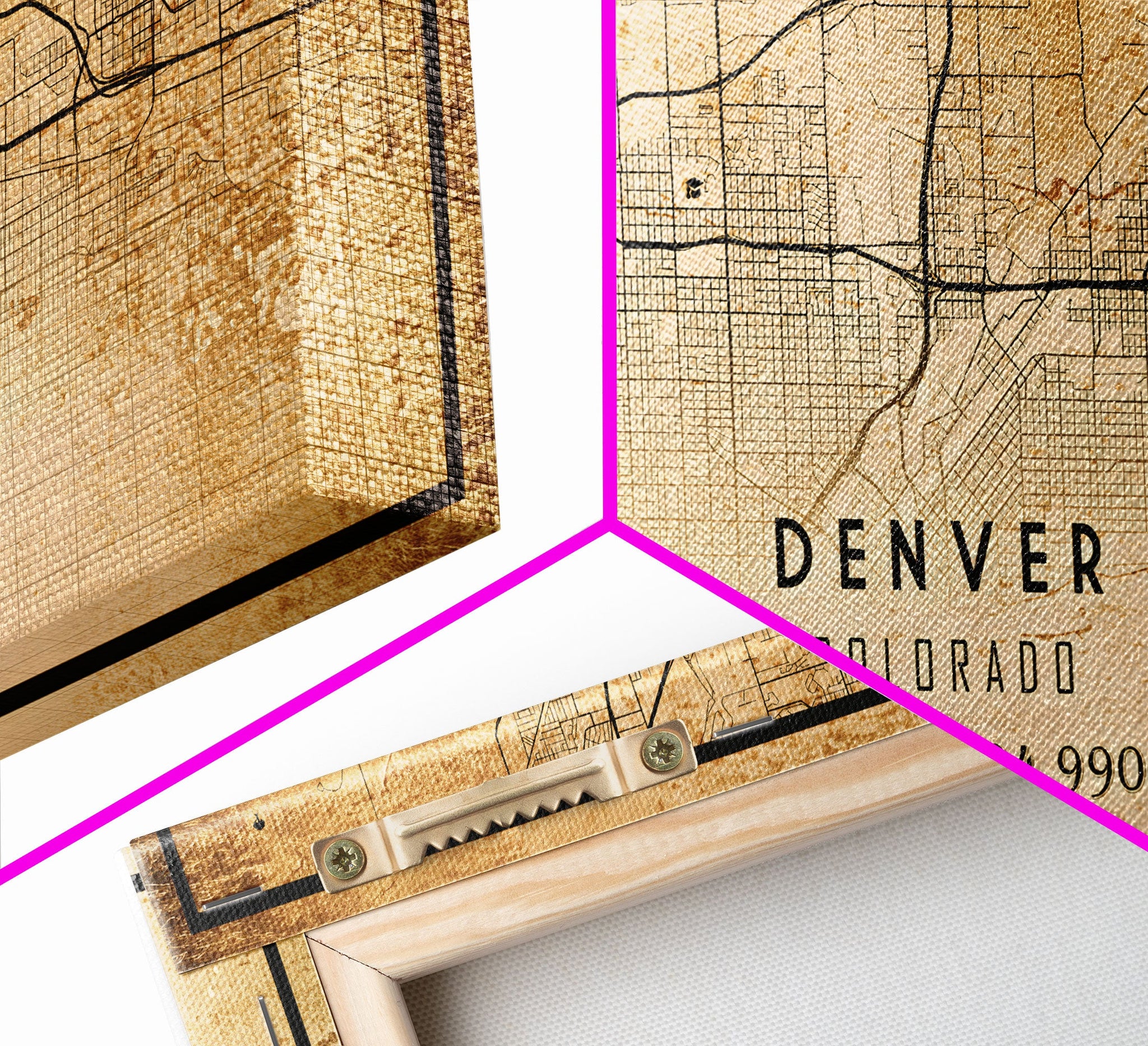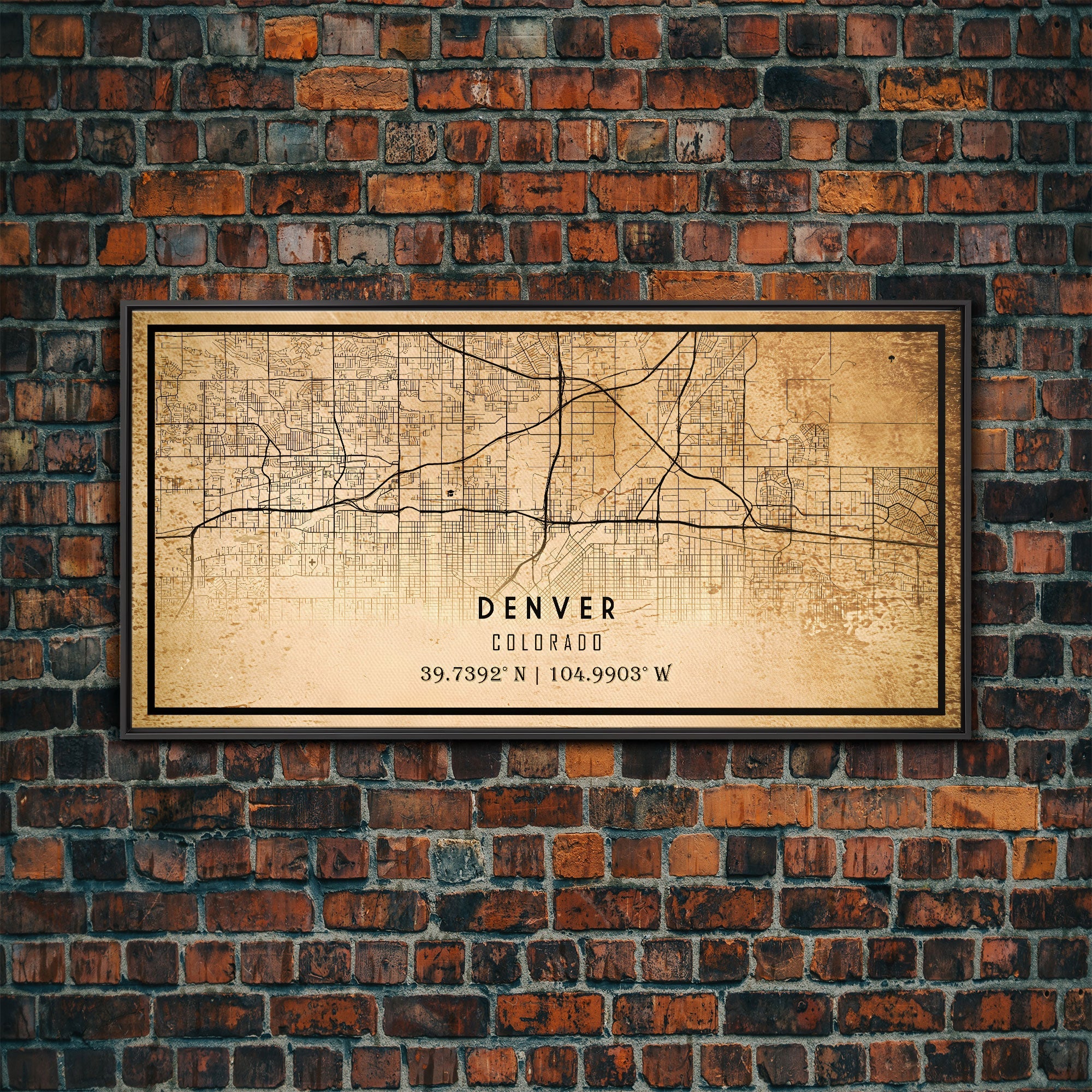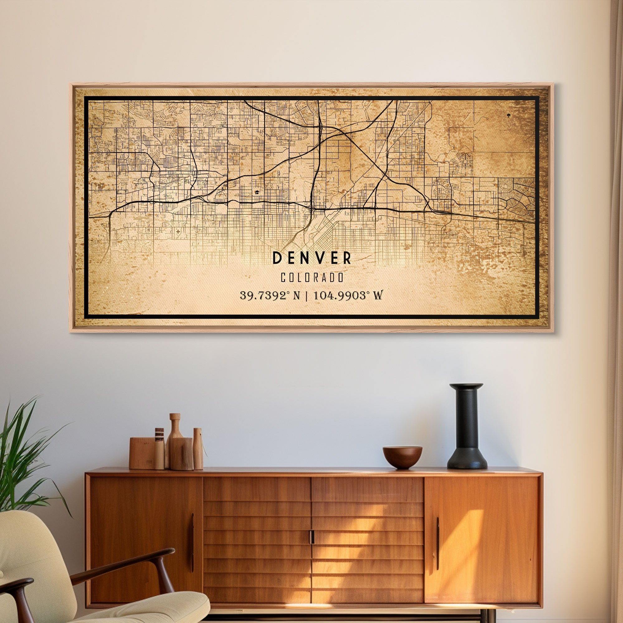 Denver map print poster canvas, Colorado map print poster canvas, Denver city map print poster canvas, framed road map art, office decor