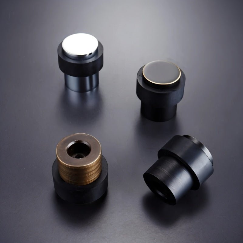 Desist Door Stopper is a heavy-duty rubber stopper that prevent doors from slamming shut, protecting your walls and floors. The classy brass design adds a touch of elegance to any room, and the non-magnetic catch ensures compatibility with electronic devices. Durable and eco-friendly, these door stops are perfect for both home and office use, combining functionality with a sleek look for a lasting impression.