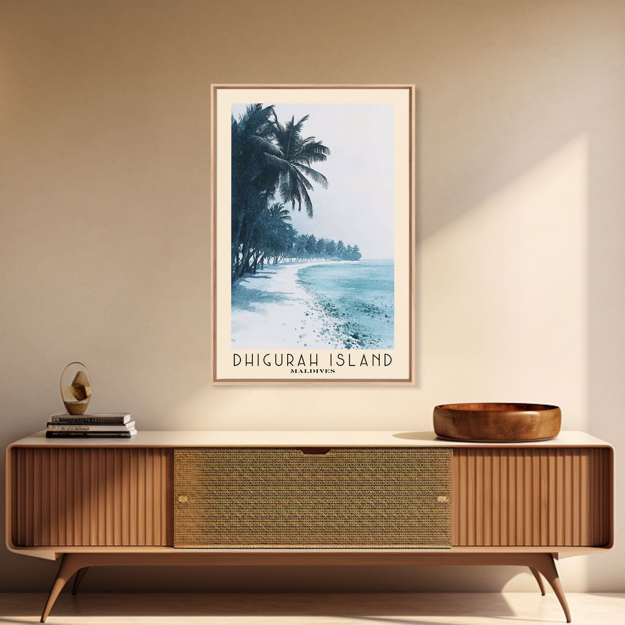 Dhigurah Island, Maldives Watercolor Print, Vacation Gift, Maldives Wall Art, Beach Painting, Beach Decor, Large Wall Art, Wood Frame Art