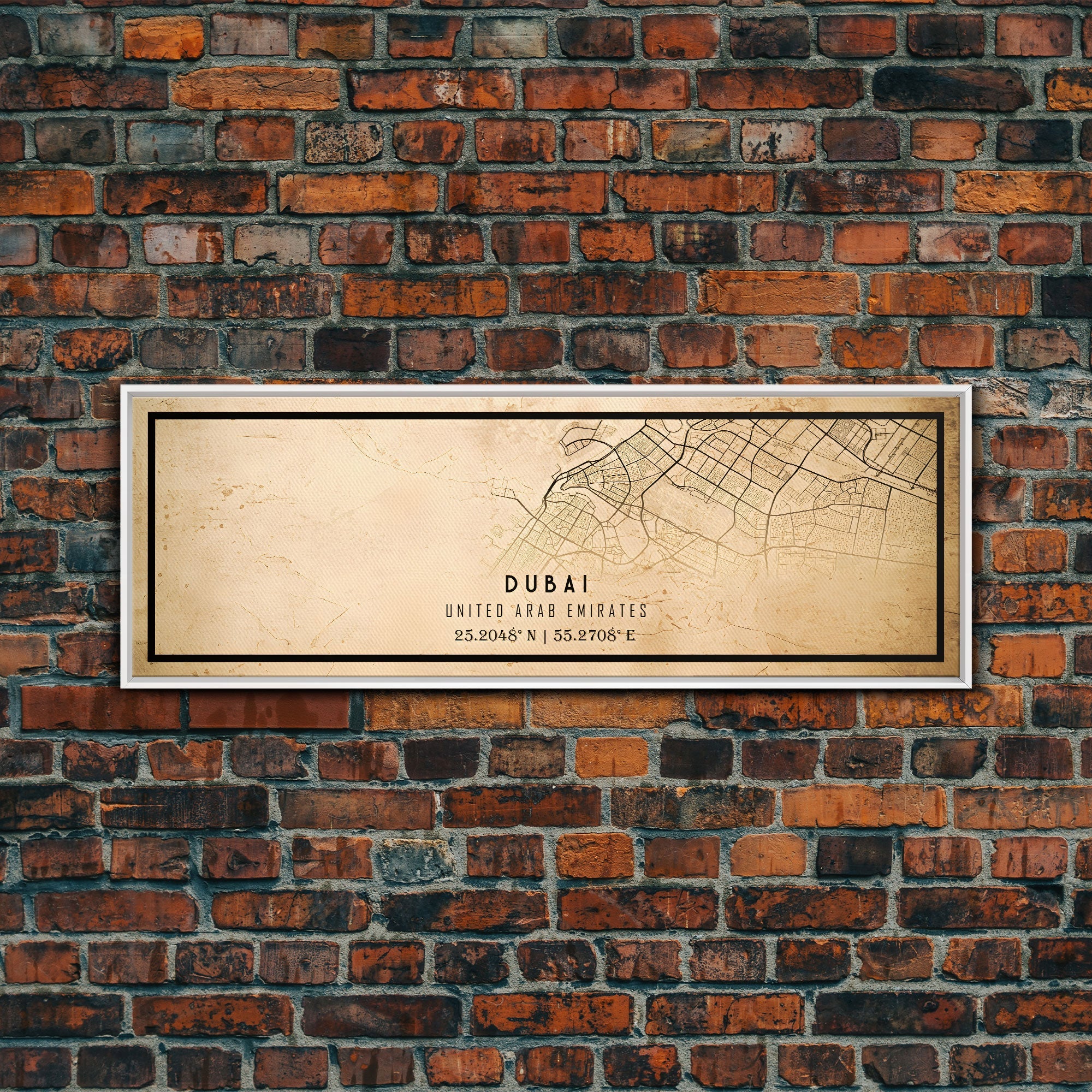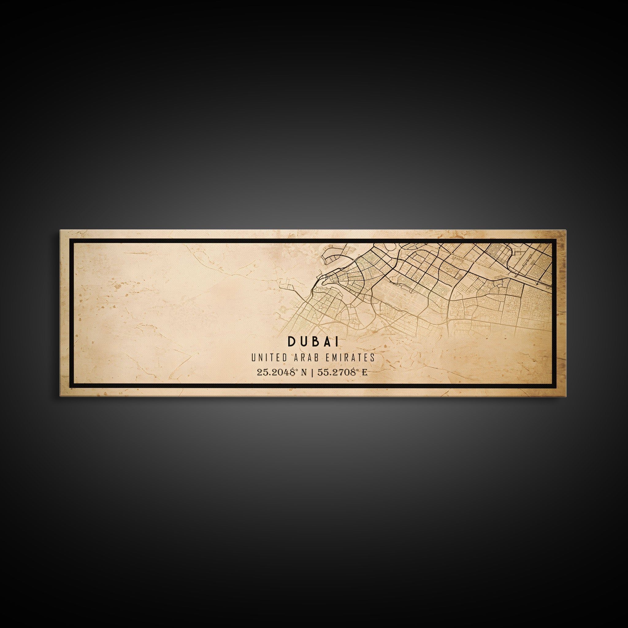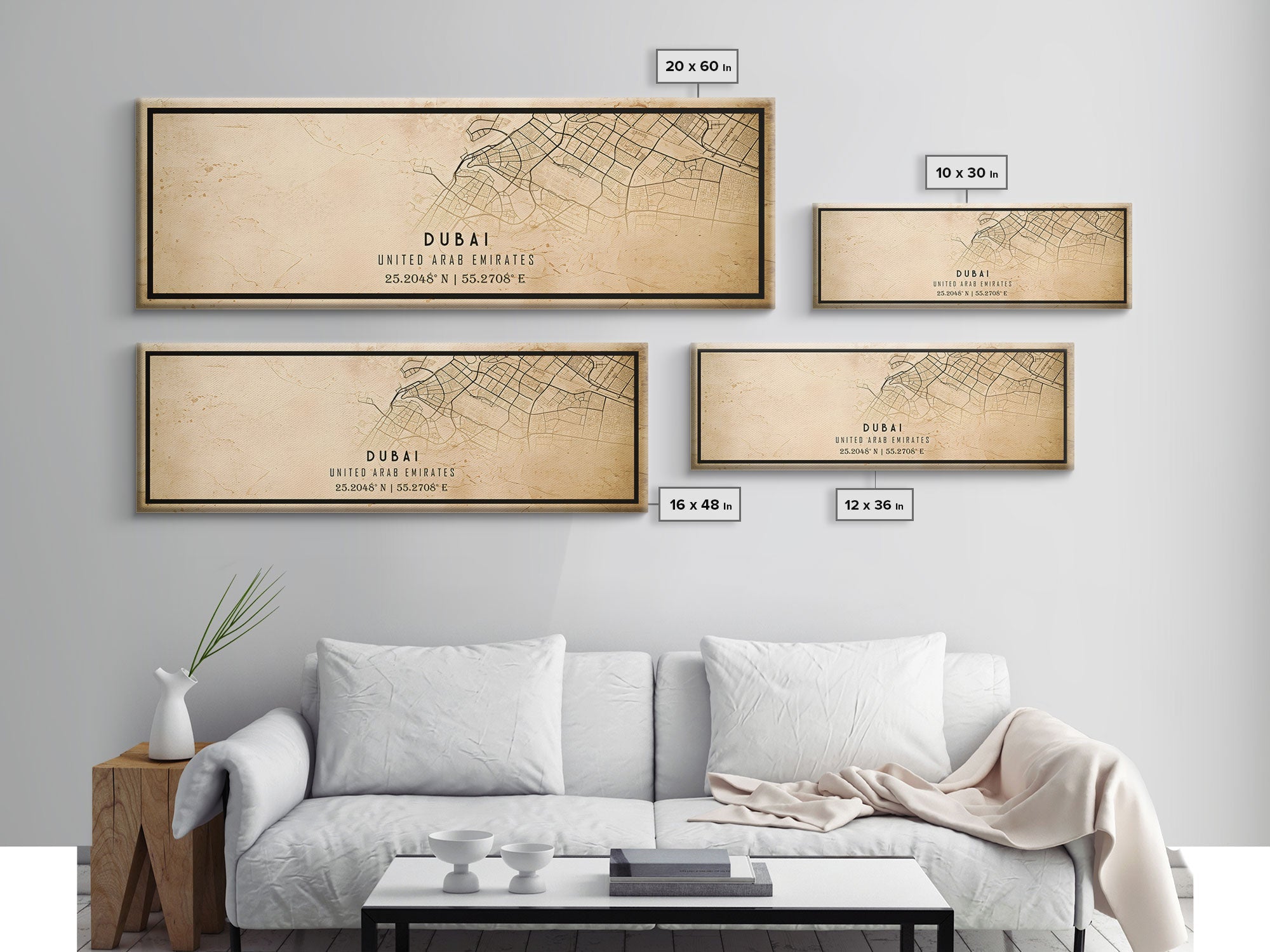 Dubai UAE Panoramic map print poster or framed canvas, Dubai map print poster canvas, Dubai city map print poster canvas, Vintage Travel Art