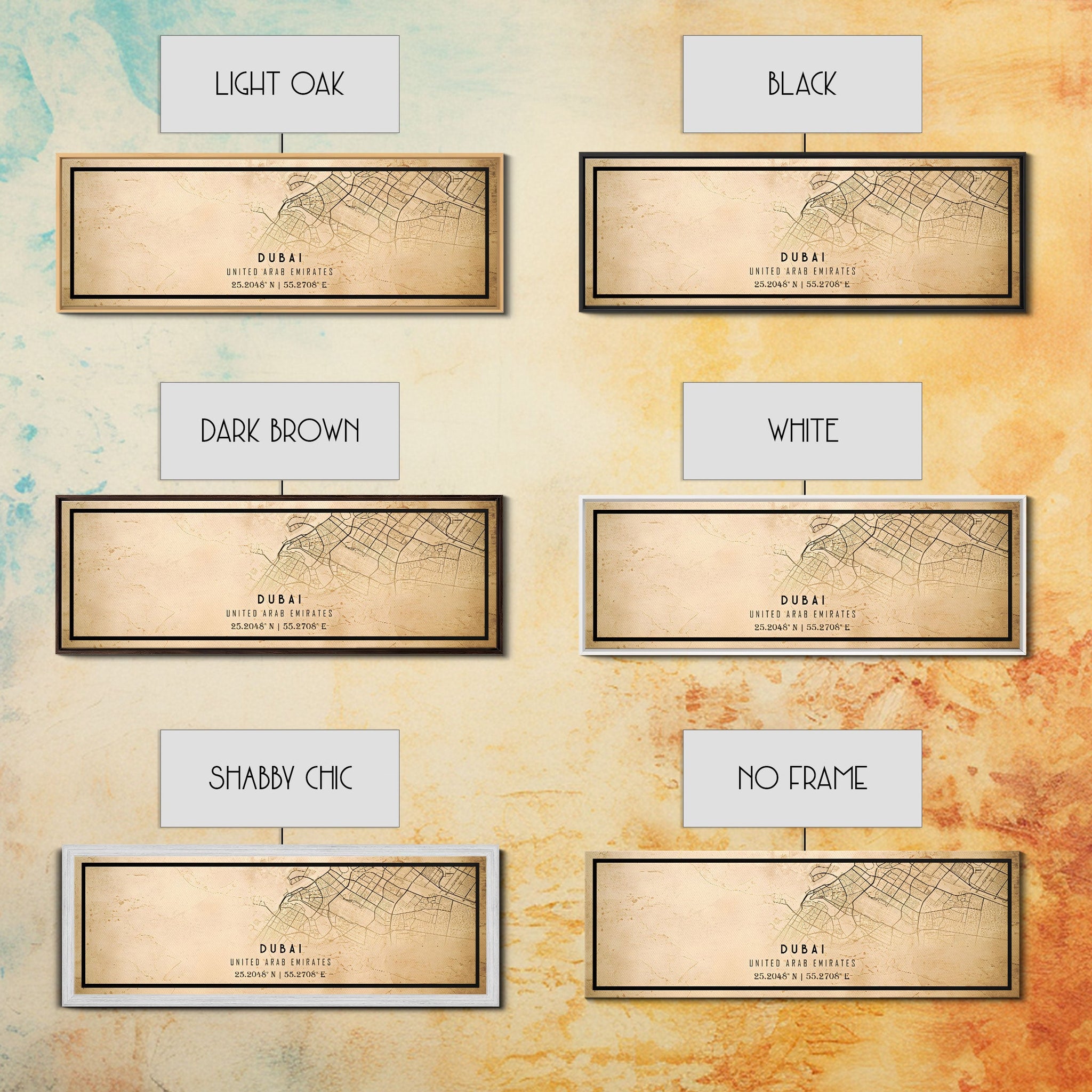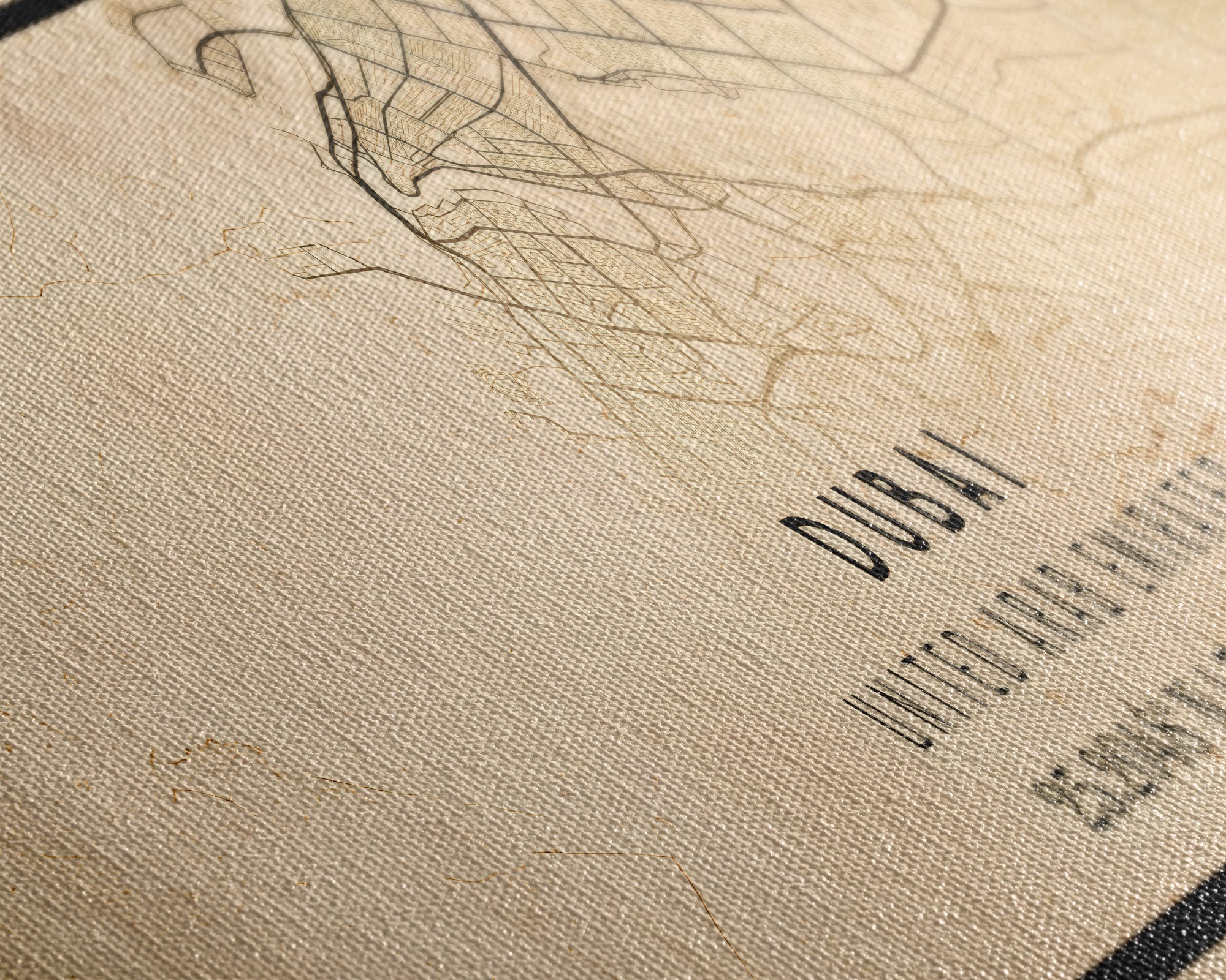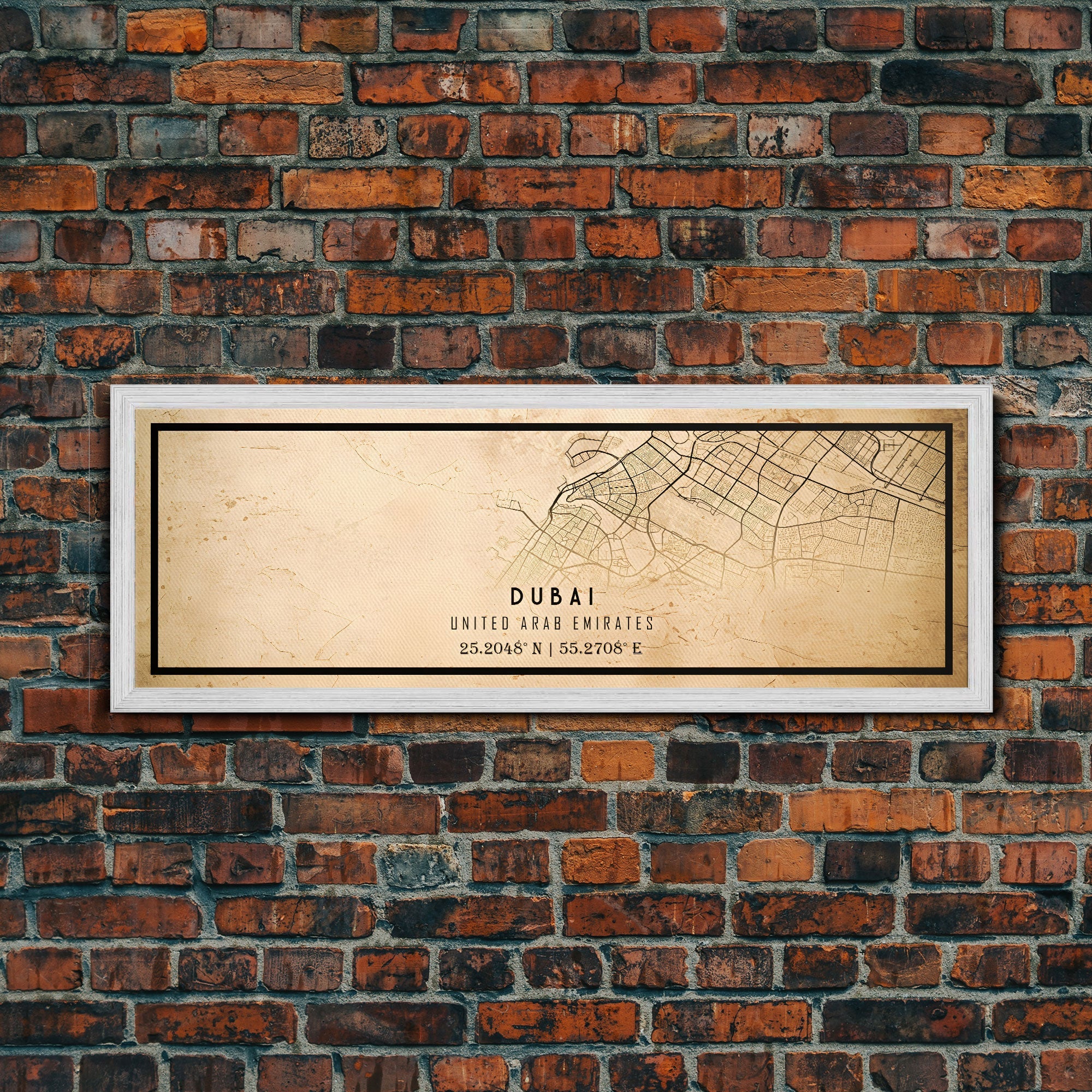 Dubai UAE Panoramic map print poster or framed canvas, Dubai map print poster canvas, Dubai city map print poster canvas, Vintage Travel Art
