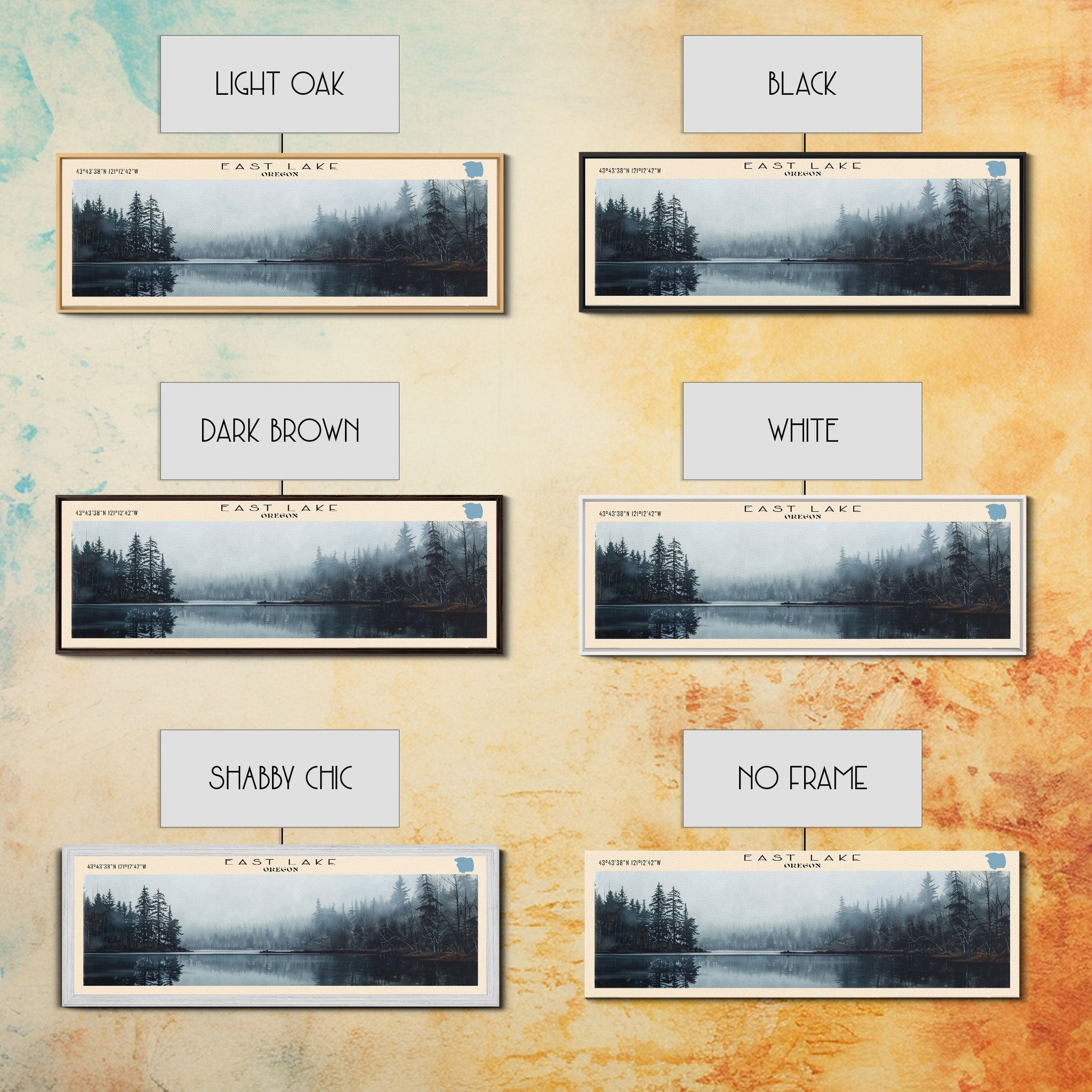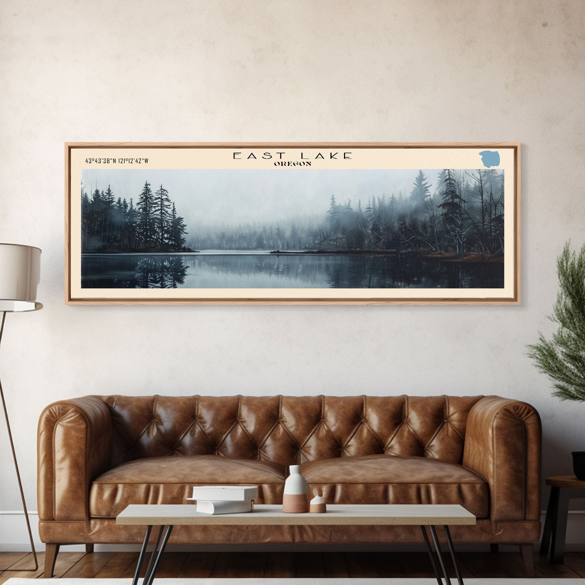 East Lake Oregon Framed Canvas Print, Panoramic Lake House Decor, Wall Art, Travel Poster, Rustic Lake Painting, Home Decor
