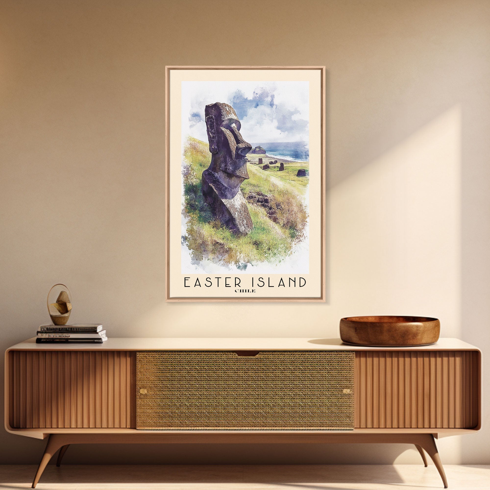 • Load image into Gallery viewer, Easter Island, Chile Watercolor Beach Print, Vacation Gift, Chile Wall Art, Beach Painting, Beach Decor, Beach Painting