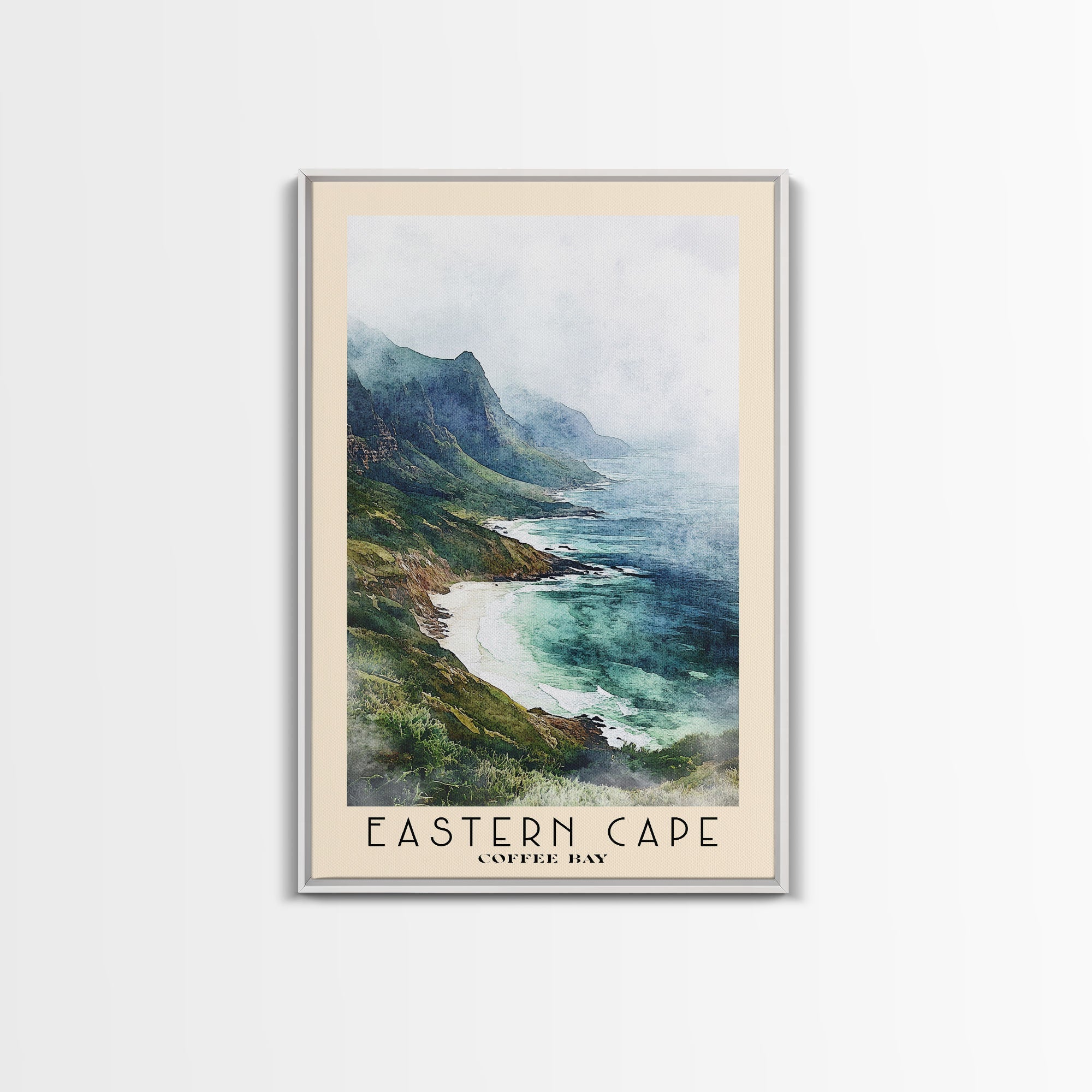 Eastern Cape, Coffee Bay Watercolor Print, Vacation Gift, Coffee Bay Wall Art, Beach Painting, Beach Decor, Large Wall Art, Wood Frame Art