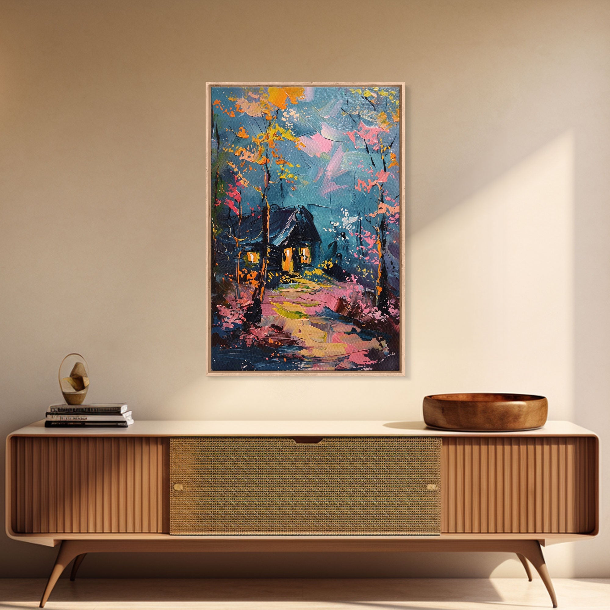 Eerie Moonlit Cemetery Framed Canvas Print, Halloween, Haunted Graveyard Wall Art, Gothic Horror Decor, Spooky Artwork, Framed Canvas Print