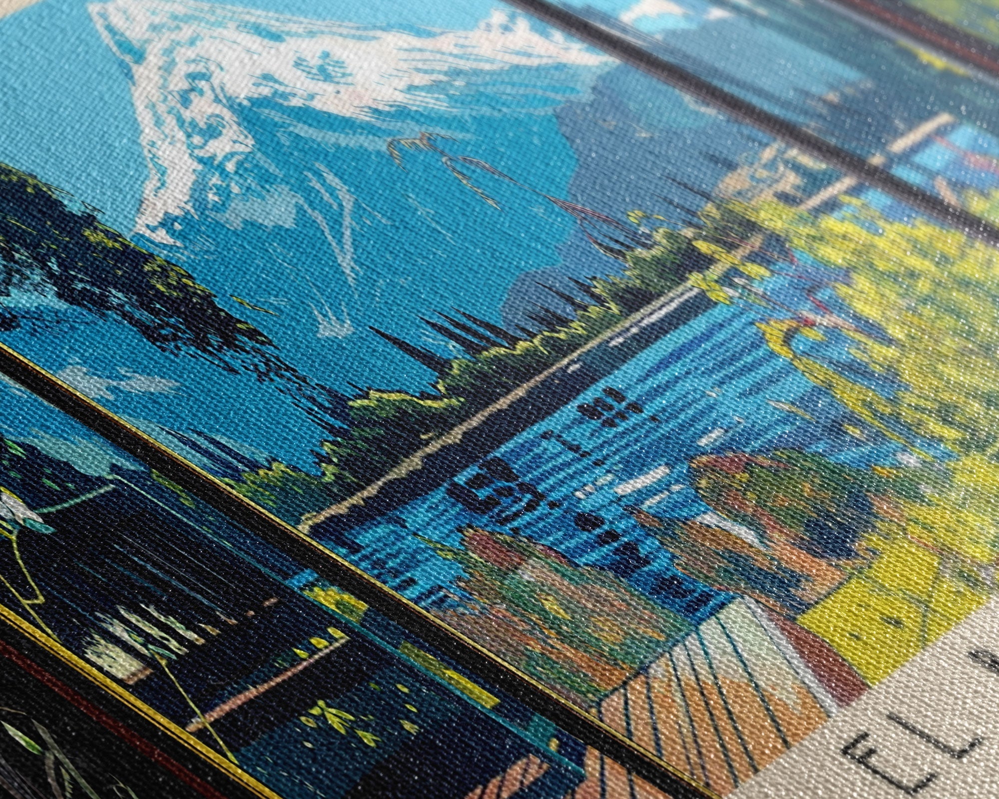 Most of our canvases are made in the USA, with the exception of canvases ordered with the light oak unstained frames, and any large canvases (24x48, 30x60, 16x48 and 20x60) ordered WITH a frame. These are temporarily made in and shipped from Europe, while we try to find a more consistent supplier in the USA.