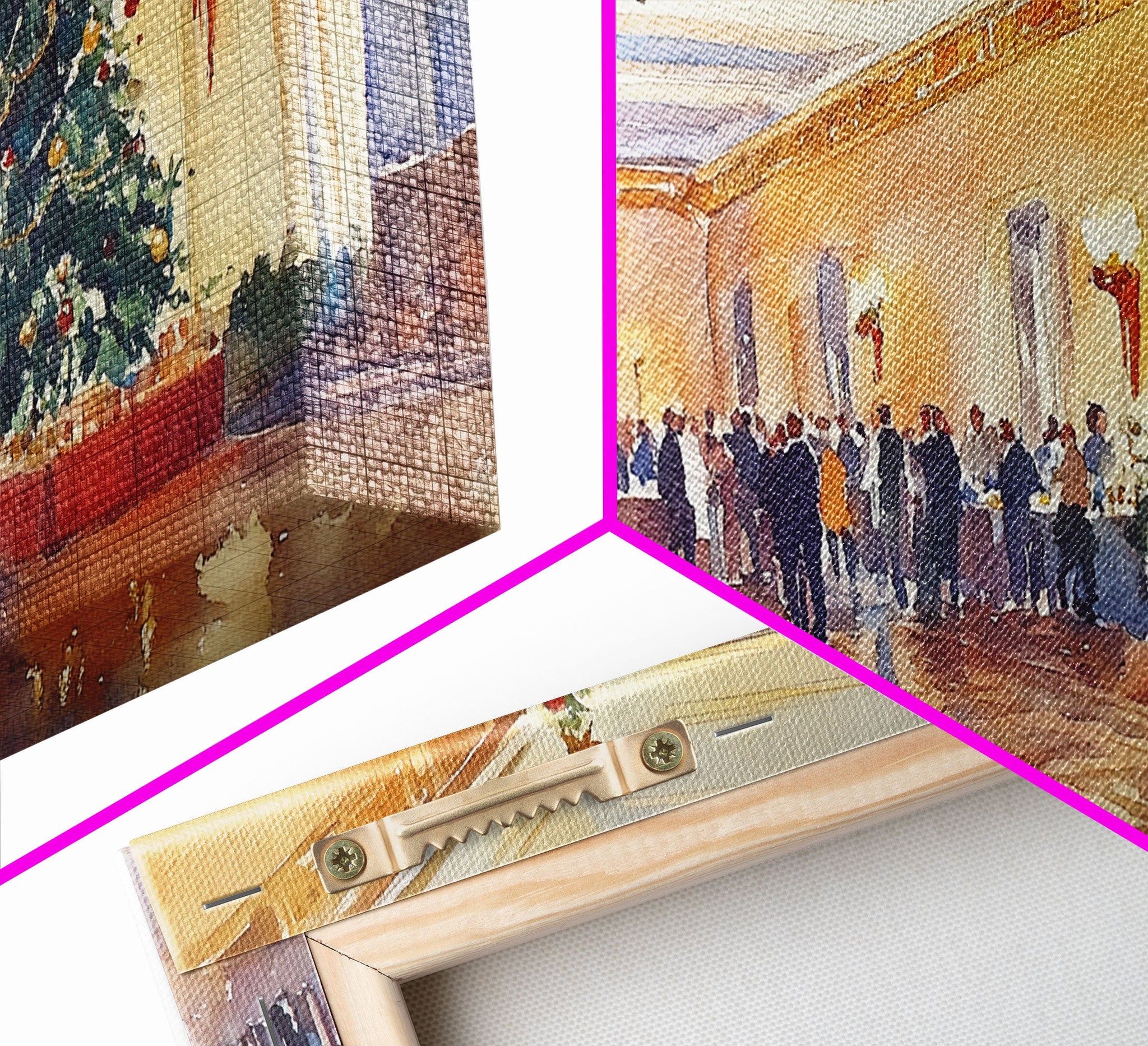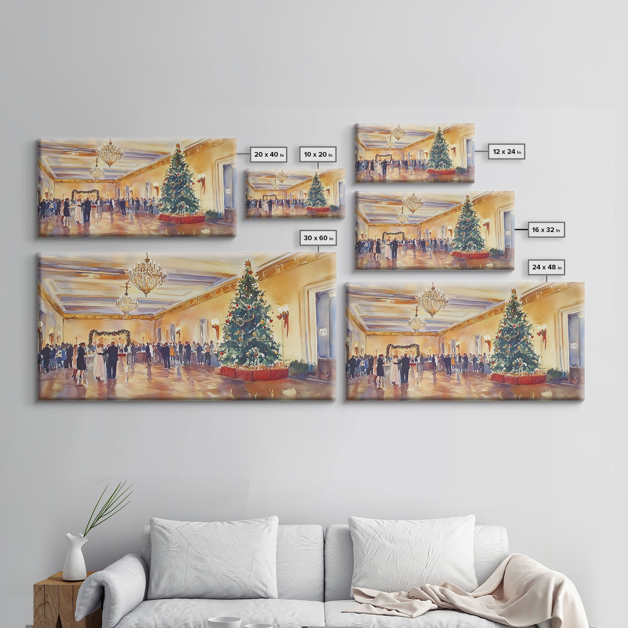 Elegant Ballroom Christmas Party Scene, Framed Canvas Print, Holiday Wall Art, Christmas Decor, Wall Art, Seasonal Decor, Best Gift Idea