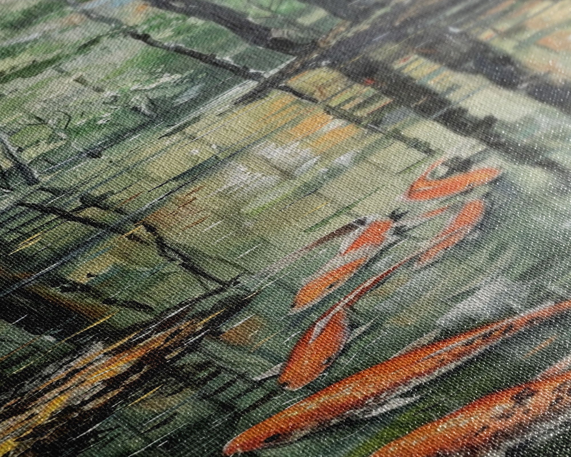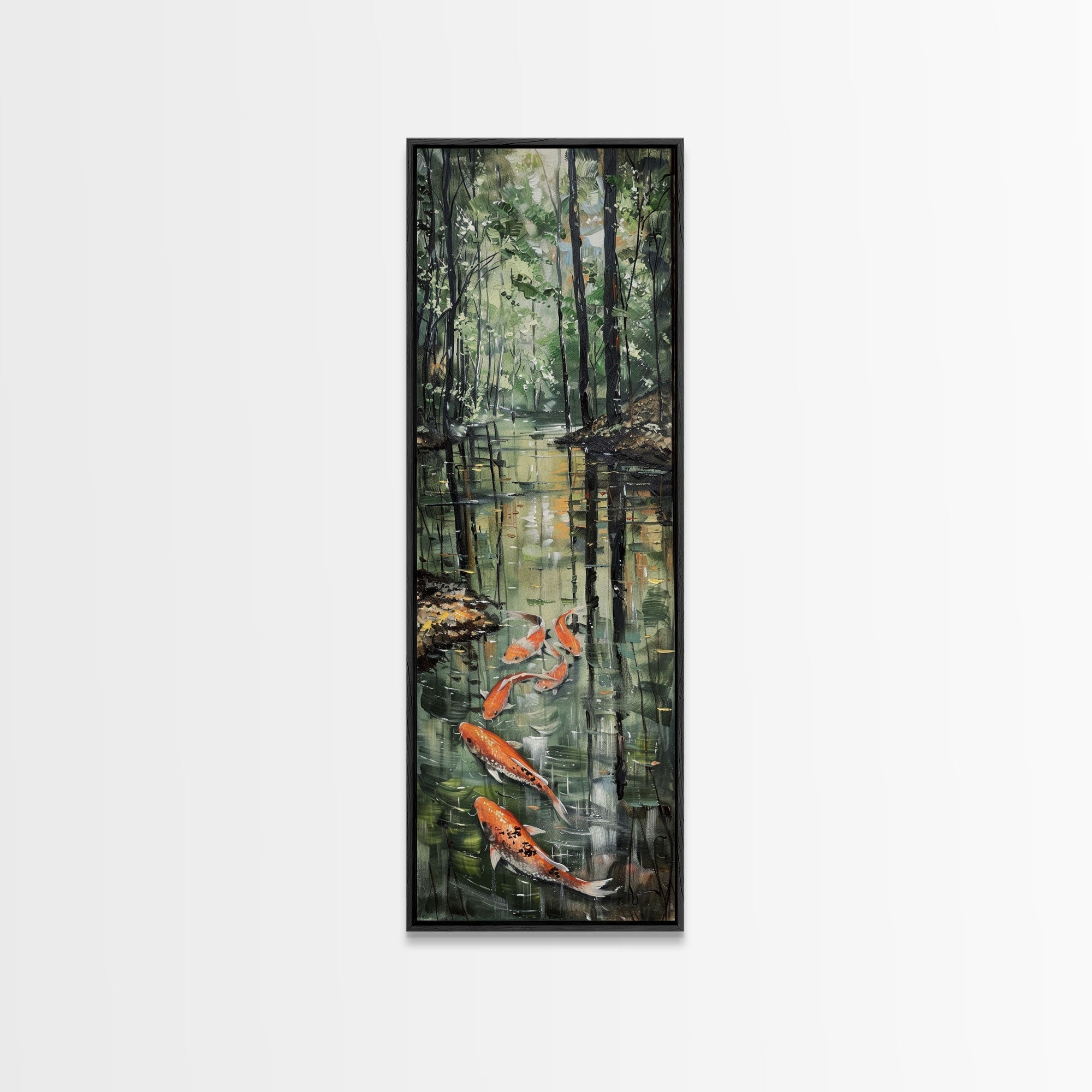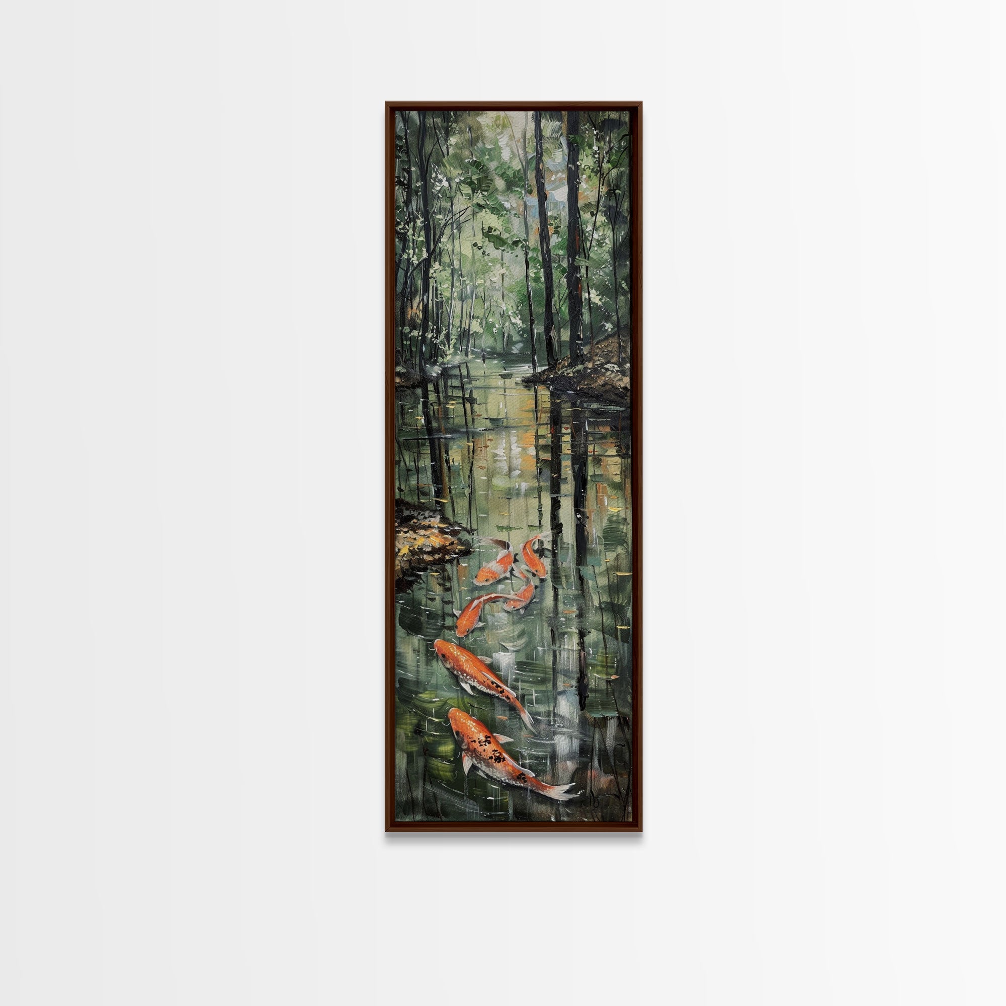Elegant Koi Fish Swimming Serene Water Garden Nature Art Framed Canvas Print Tall Art Japanese Style Art
