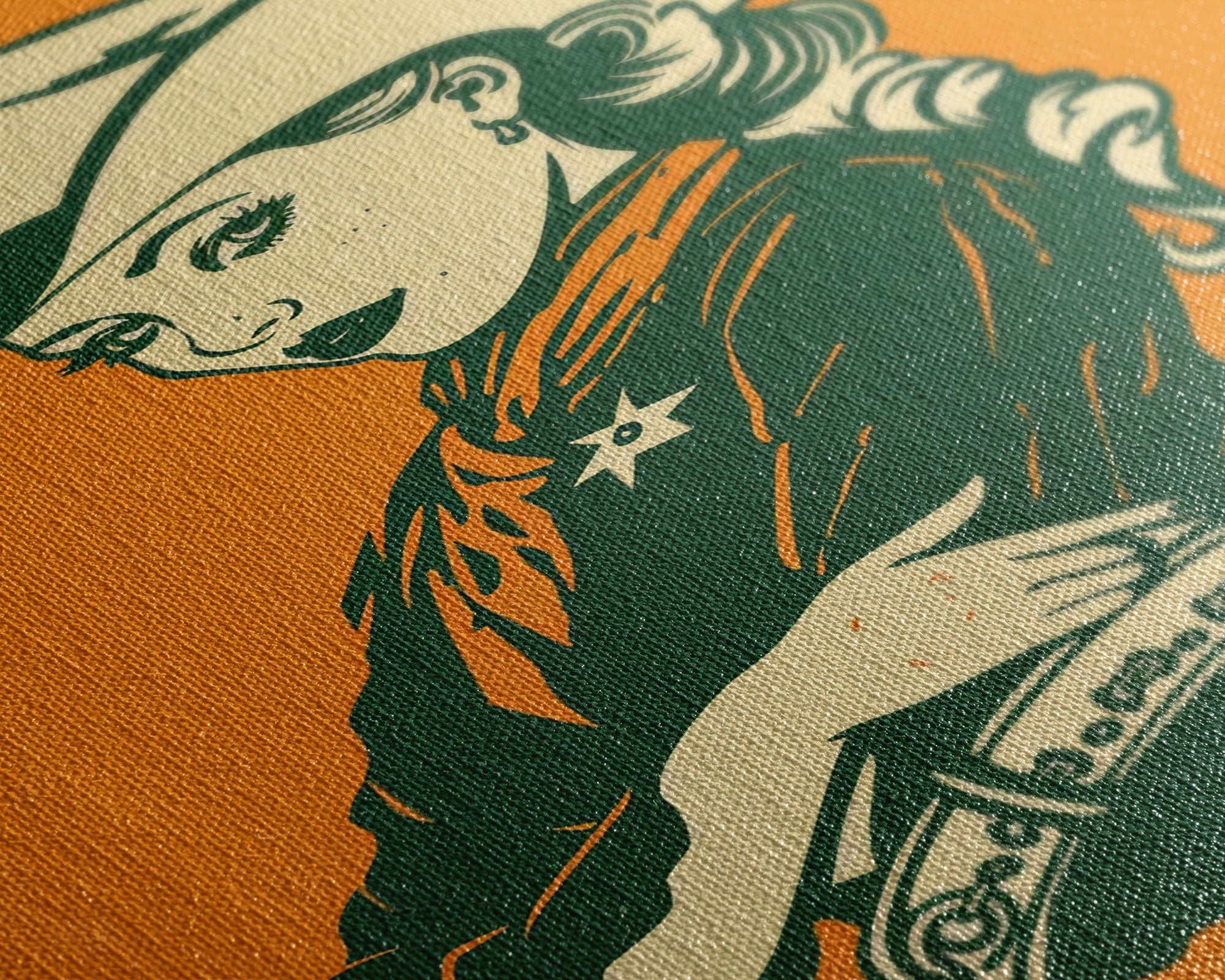 Elegant Retro Cowgirl with Hat Illustration | Framed Canvas Print | Vintage Western Art | Stylish Cowgirl Wall Art for Living Room