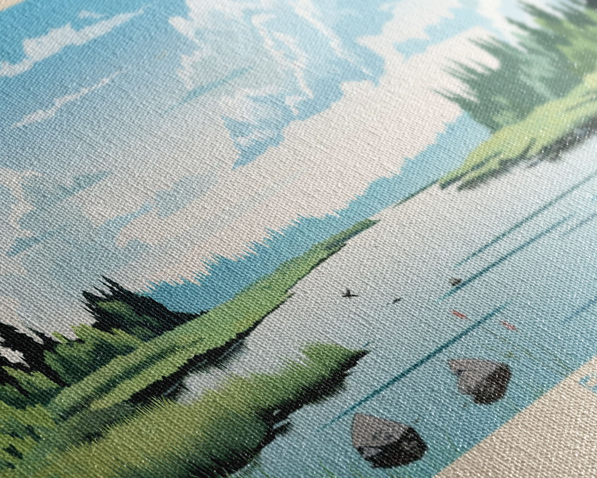 Most of our canvases are made in the USA, with the exception of canvases ordered with the light oak unstained frames, and any large canvases (24x48, 30x60, 16x48 and 20x60) ordered WITH a frame. These are temporarily made in and shipped from Europe, while we try to find a more consistent supplier in the USA.