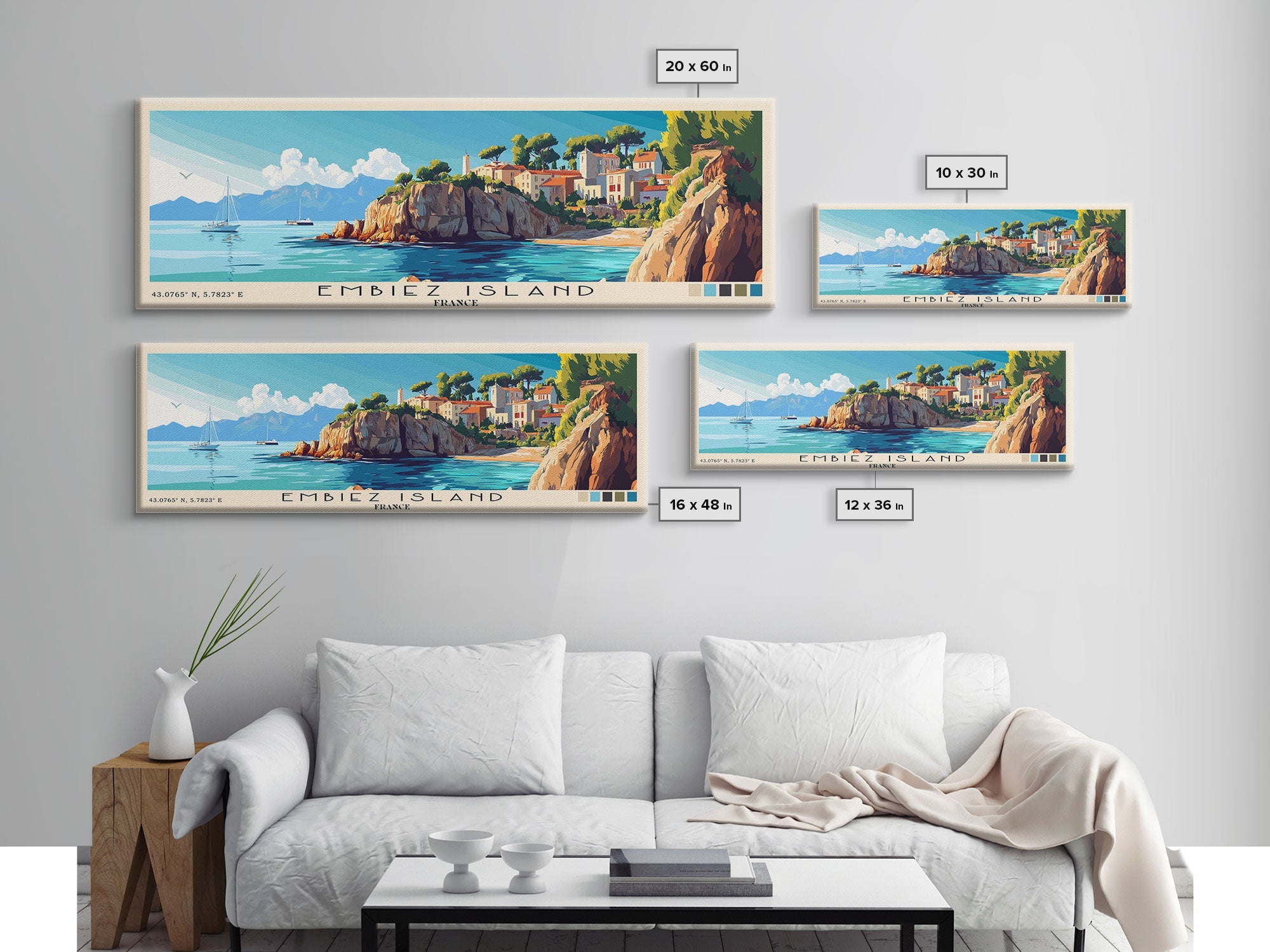 Embiez Island, France Panoramic Print, Vacation Gift, France Wall Art, Beach Painting, Beach Decor, Large Wall Art, Wood Frame Art