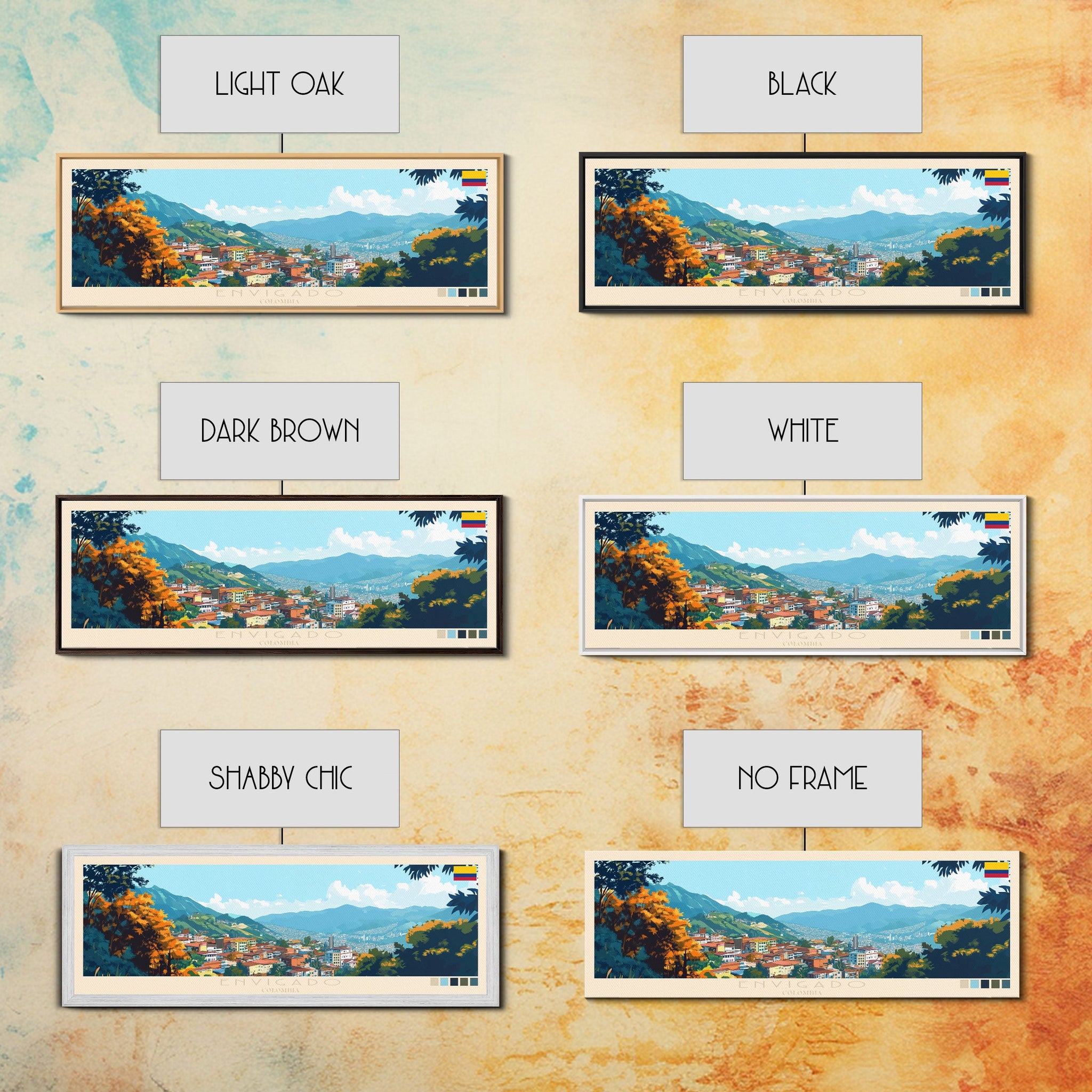 Envigado, Colombia Panoramic Travel Poster Canvas Print, Envigado, Colombia Painting, Colombia Art, Envigado Panoramic Travel Art, Travel Painting