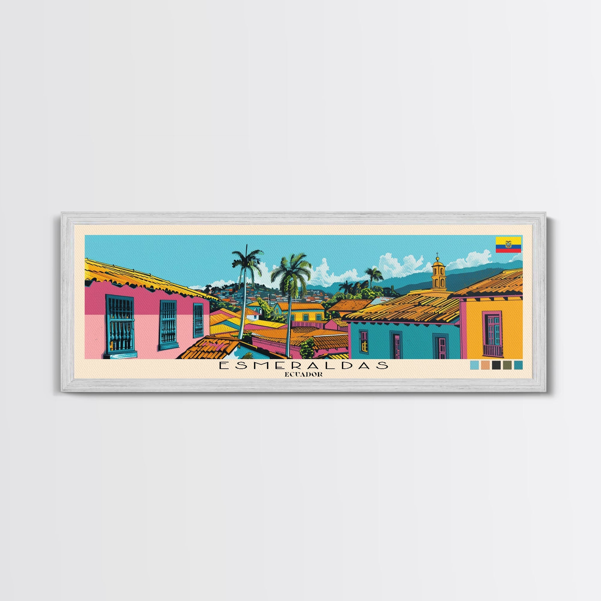 Esmeraldas, Ecuador Panoramic Canvas Print, Esmeraldas, Ecuador Painting, Ecuador Art, Esmeraldas Travel Poster, Travel Art, Guest Room Painting