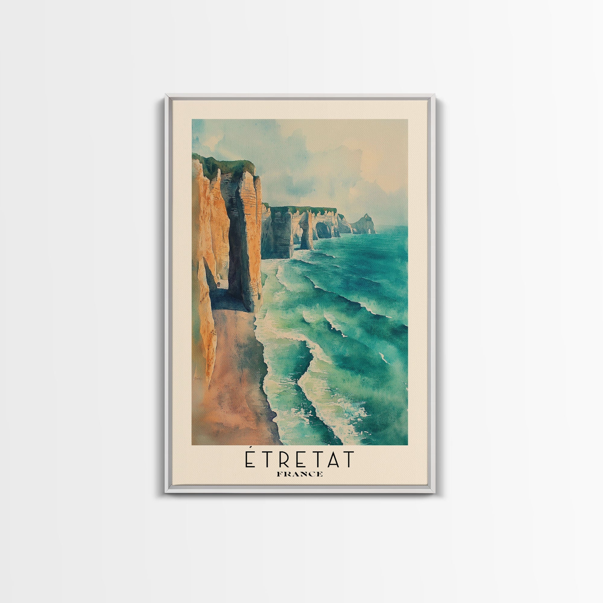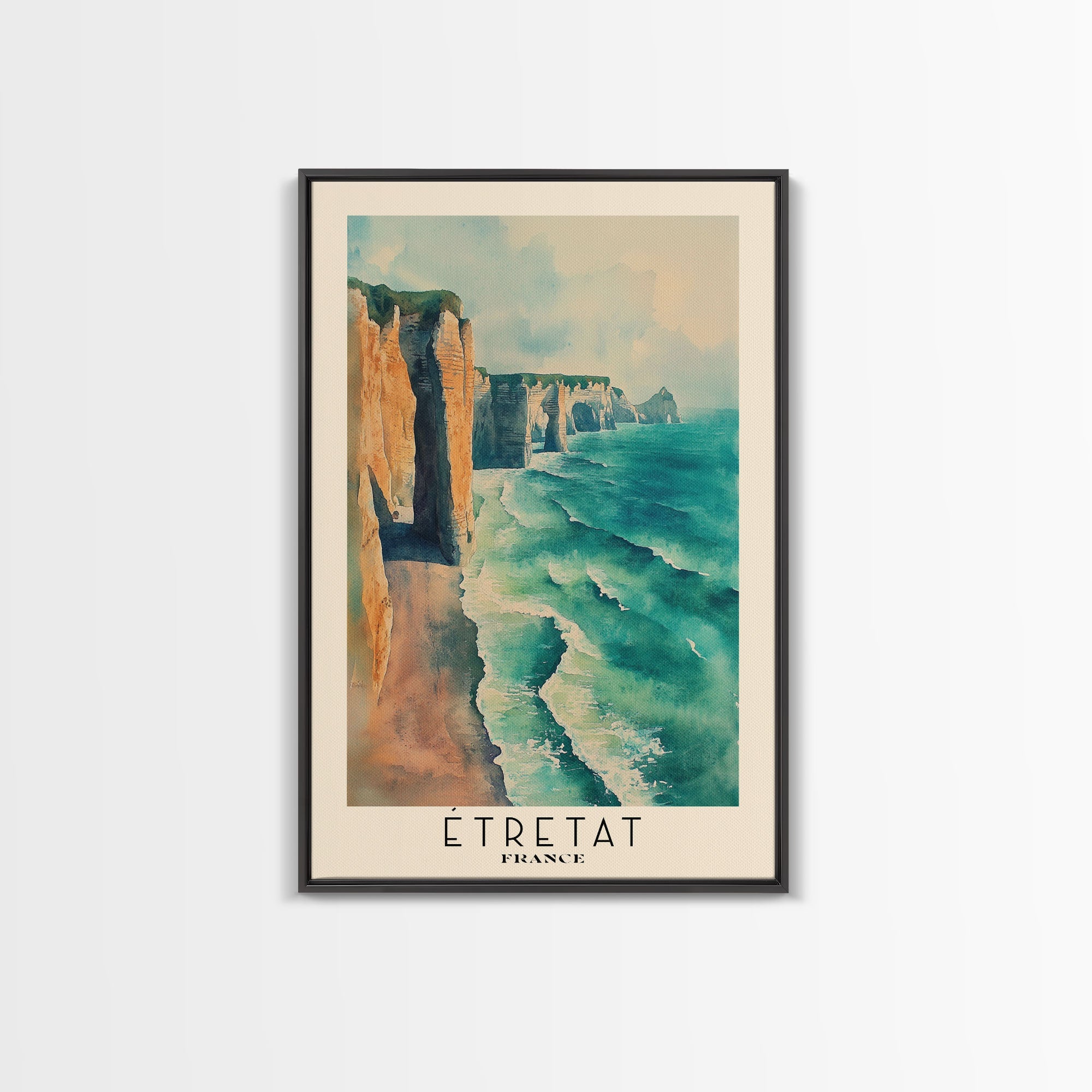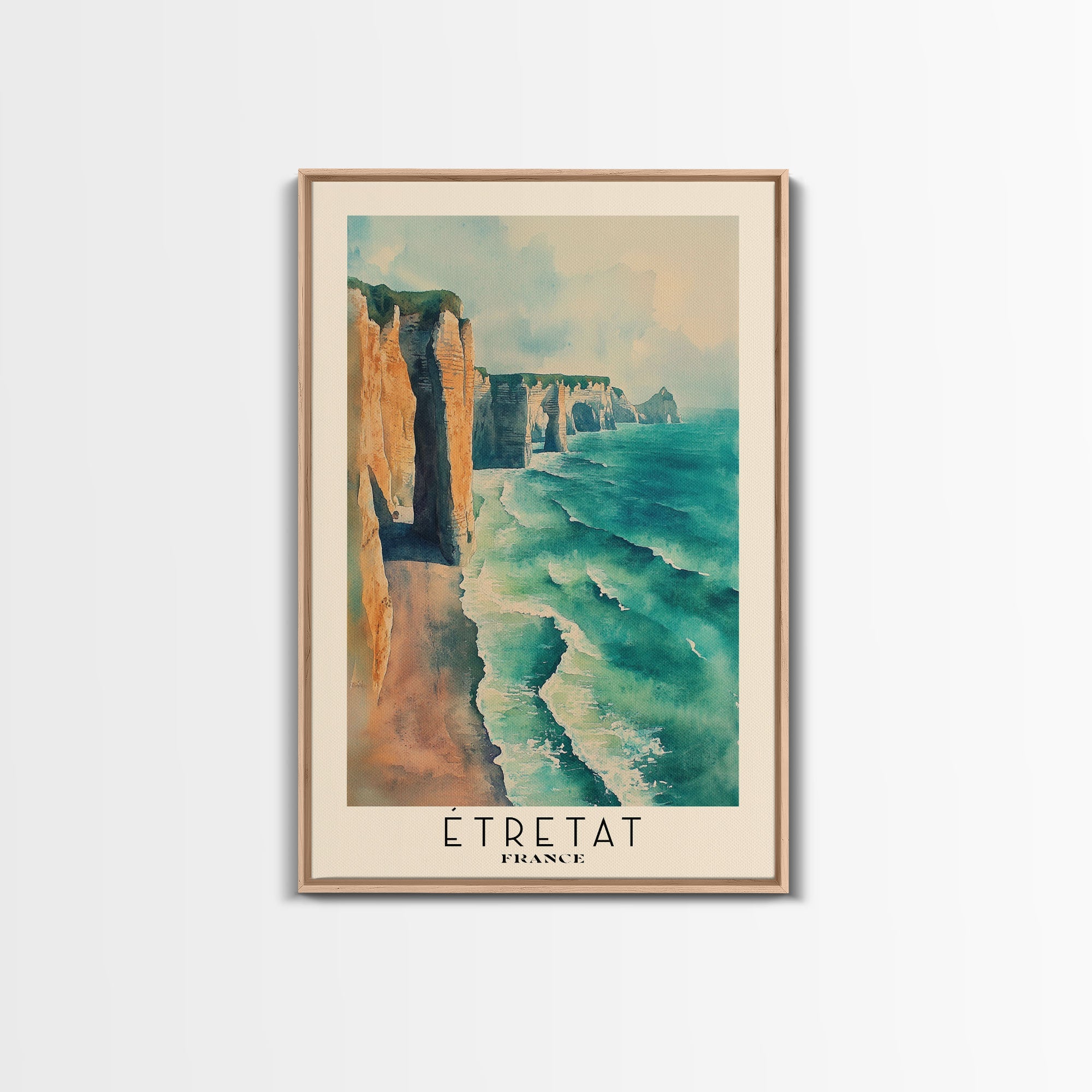 Étretat, France Watercolor Print, Vacation Gift, France Wall Art, Beach Painting, Beach Decor, Large Wall Art, Wood Frame Art