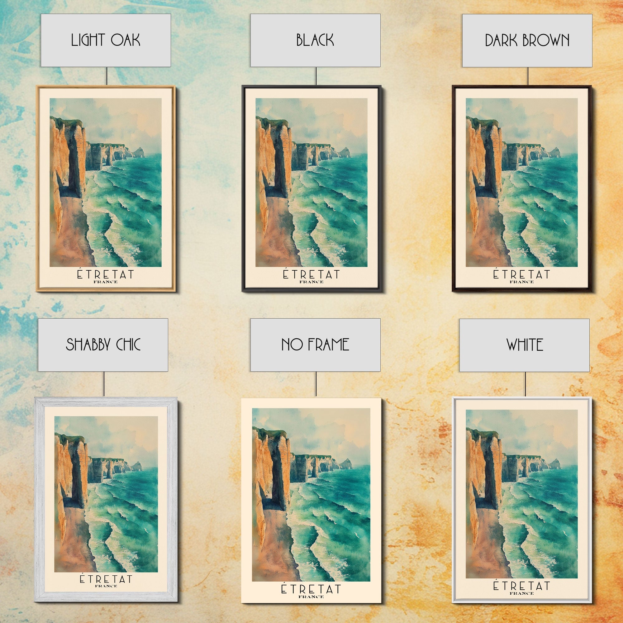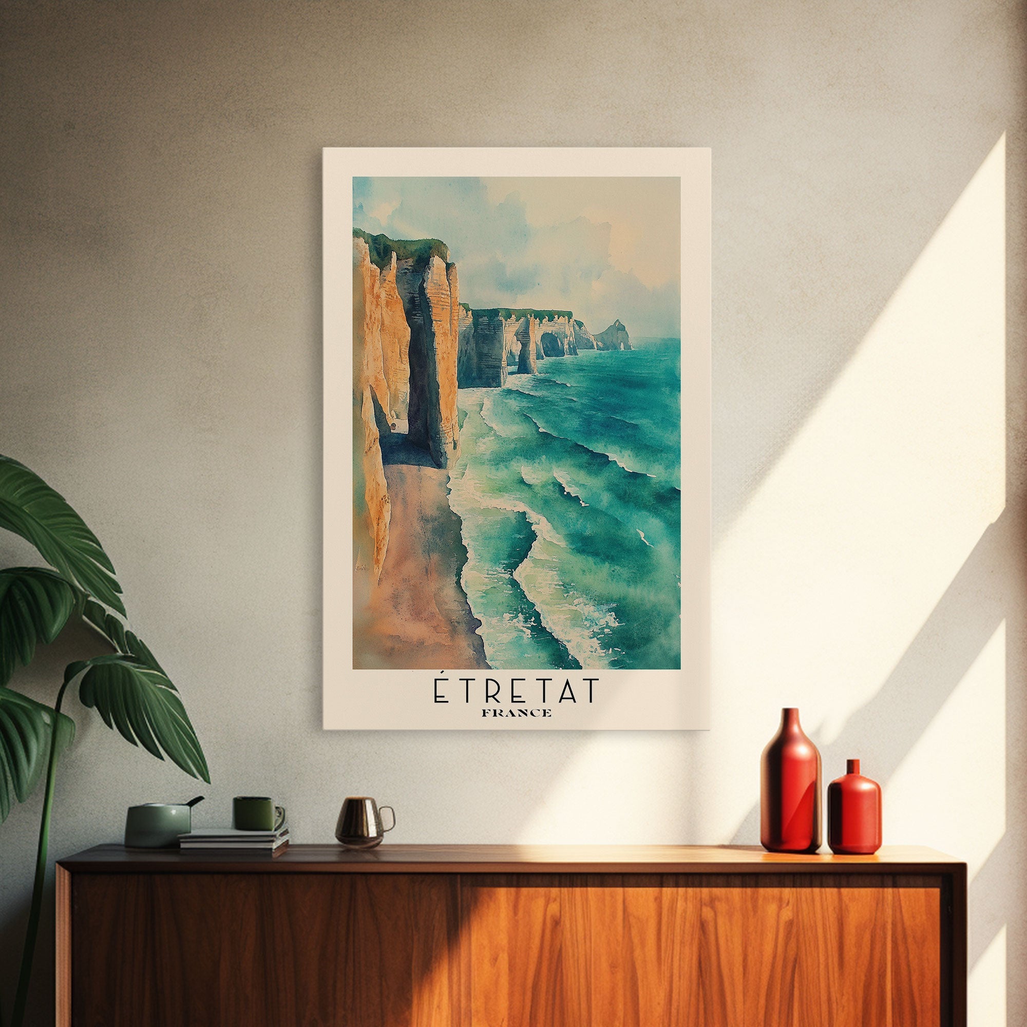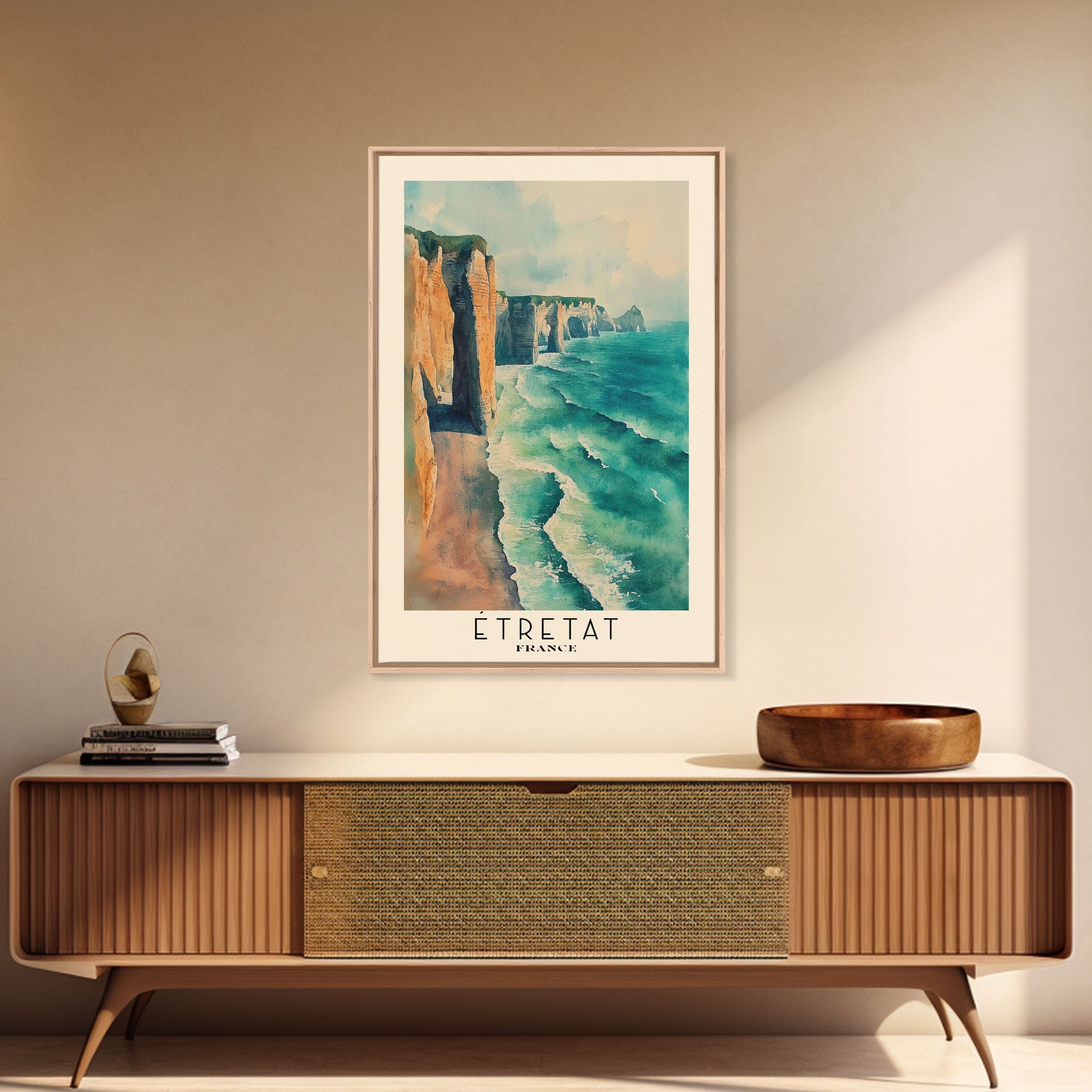Étretat, France Watercolor Print, Vacation Gift, France Wall Art, Beach Painting, Beach Decor, Large Wall Art, Wood Frame Art