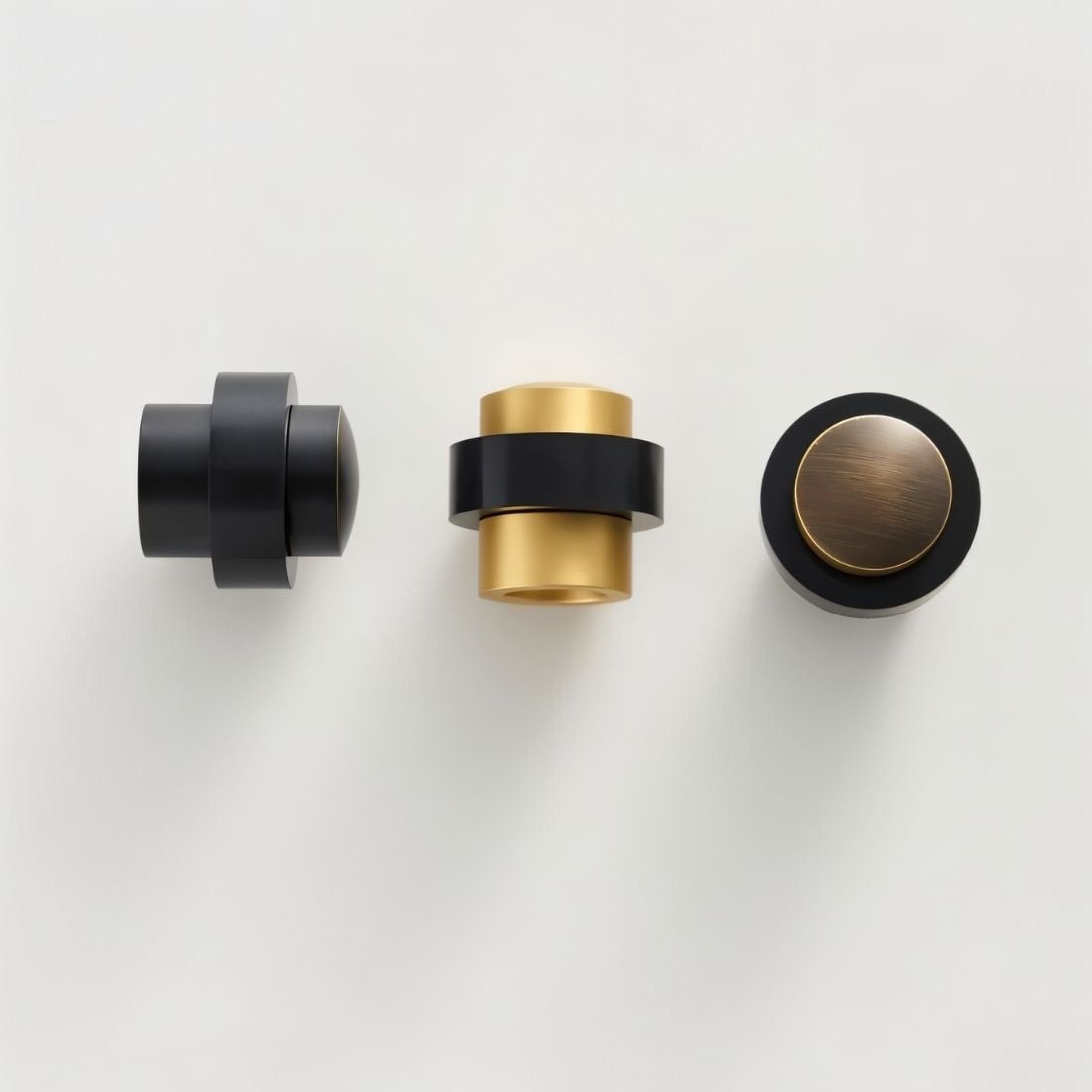 Finio Door Stop is a smart, stylish solution to safeguard your walls and hush door noises. Crafted with a rubber exterior, it reduces impacts and mounts securely to the floor for easy installation. Enjoy the added touch of brass knurling for both function and flair. Elevate your space with this blend of fashion and practicality.