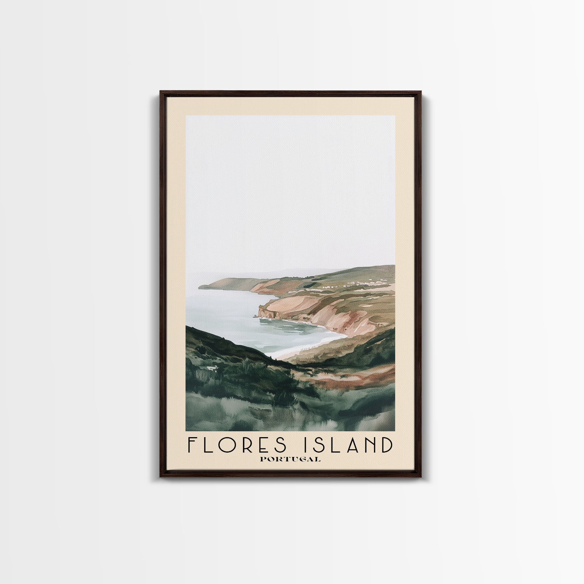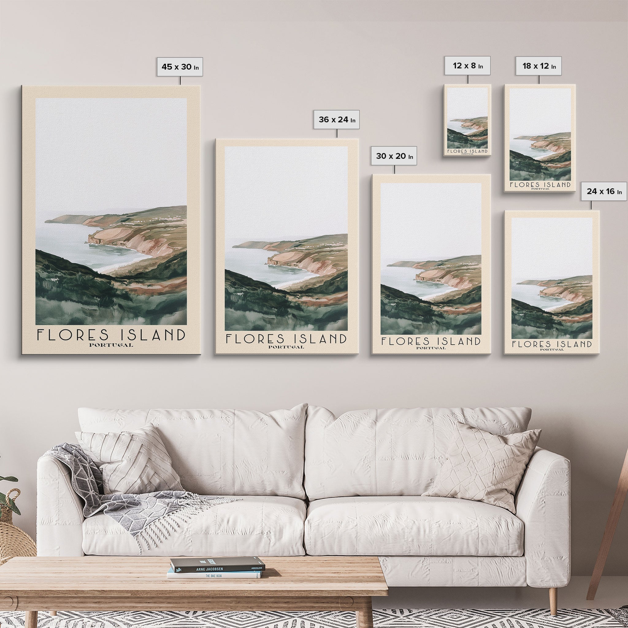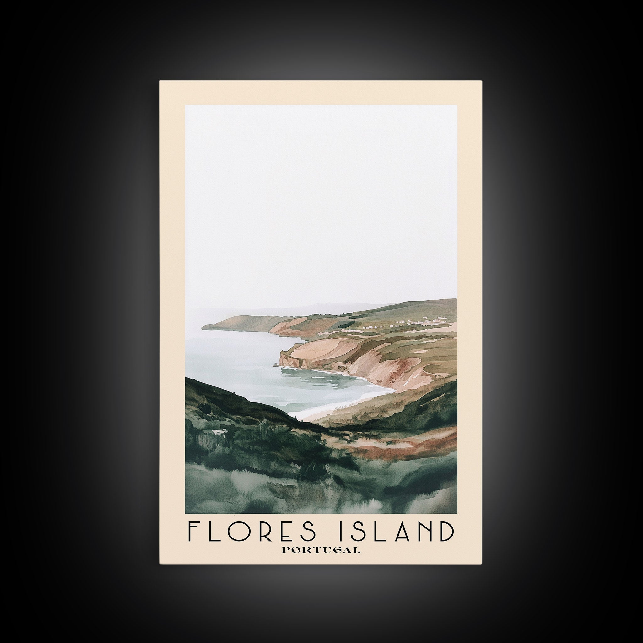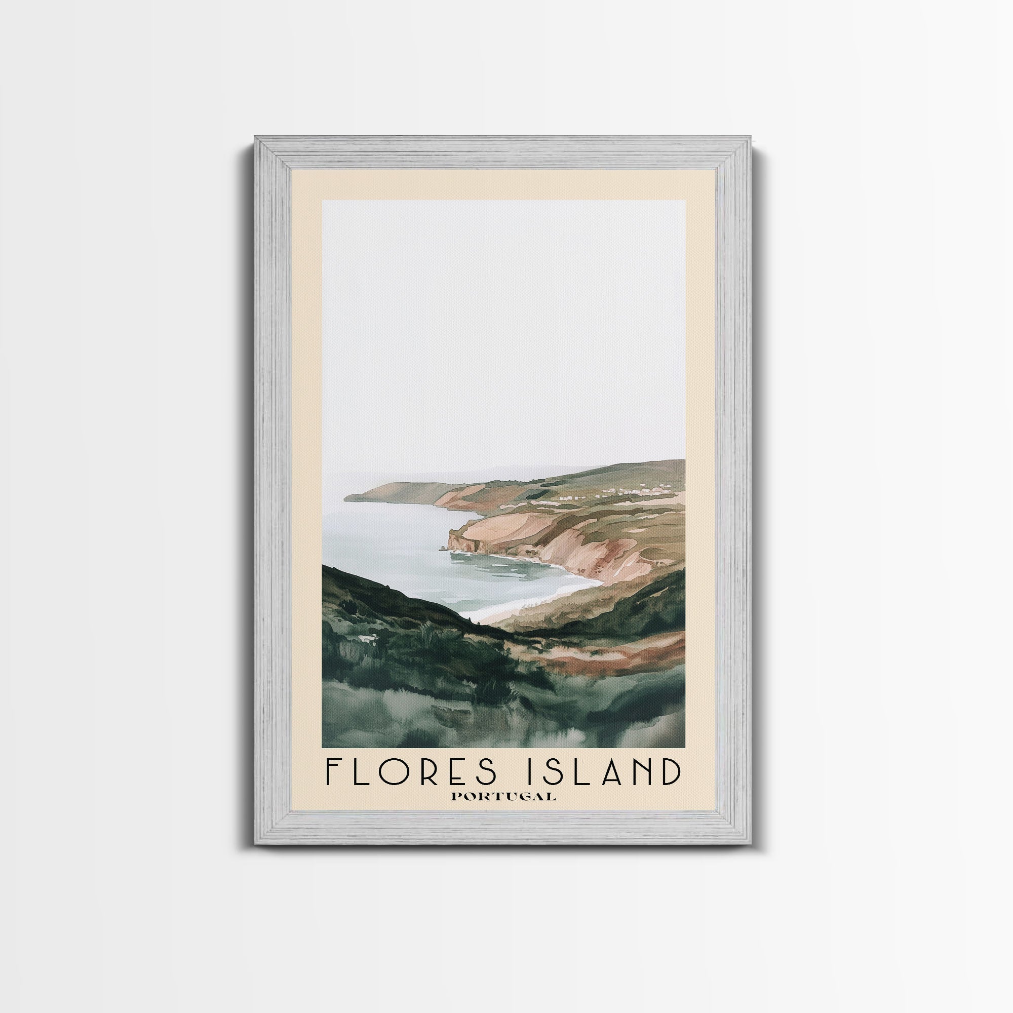 Flores Island, Portugal Watercolor Beach Print, Vacation Gift, Portugal Wall Art, Framed Canvas Print, Framed Beach Painting