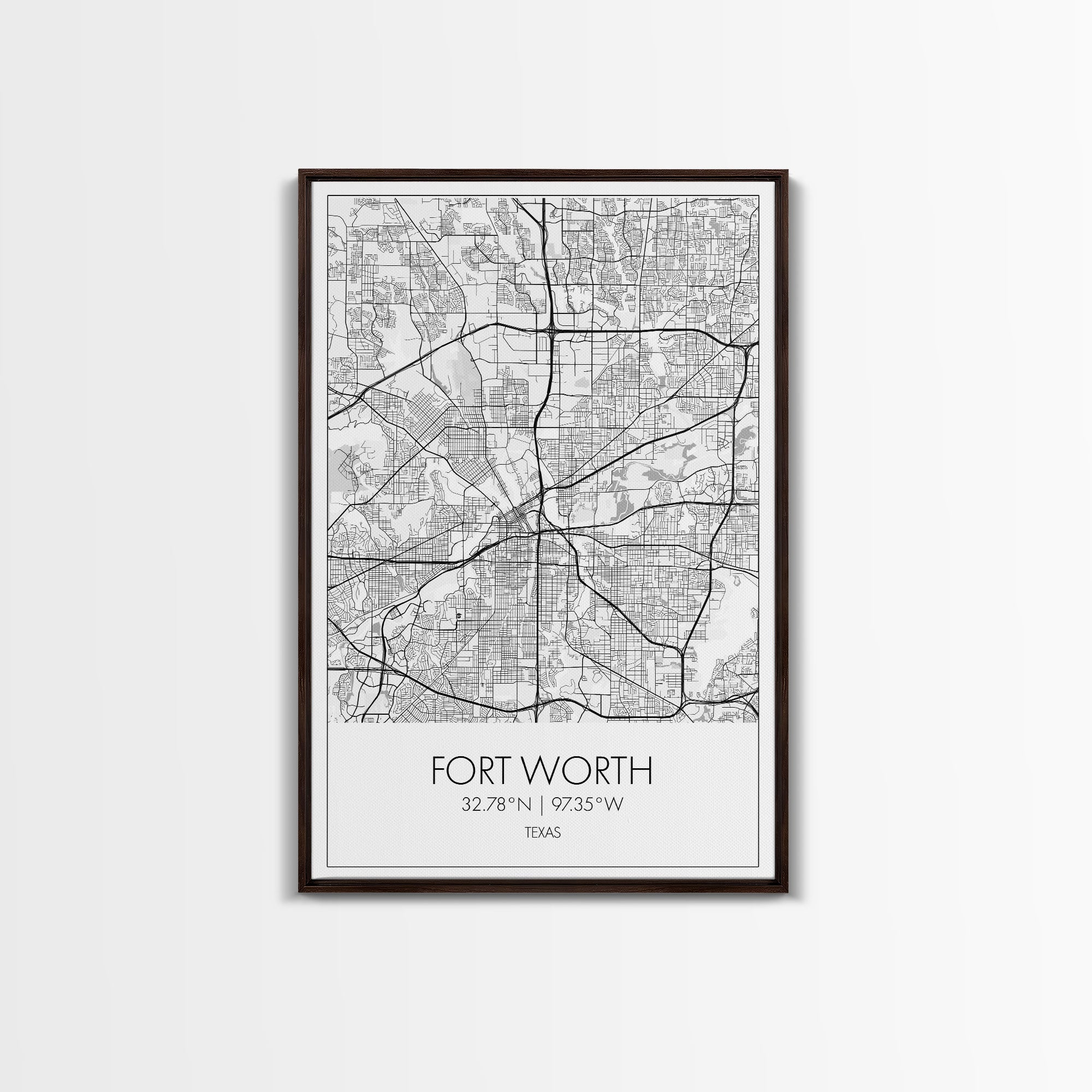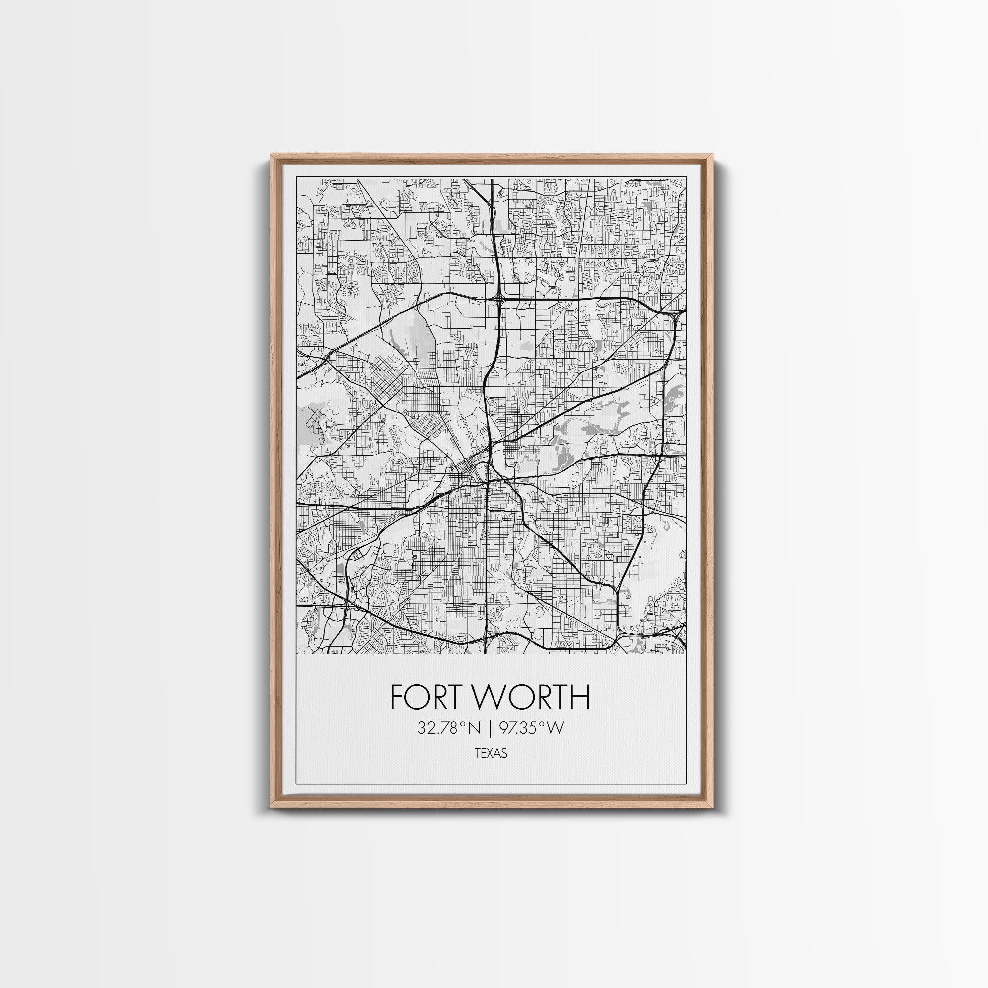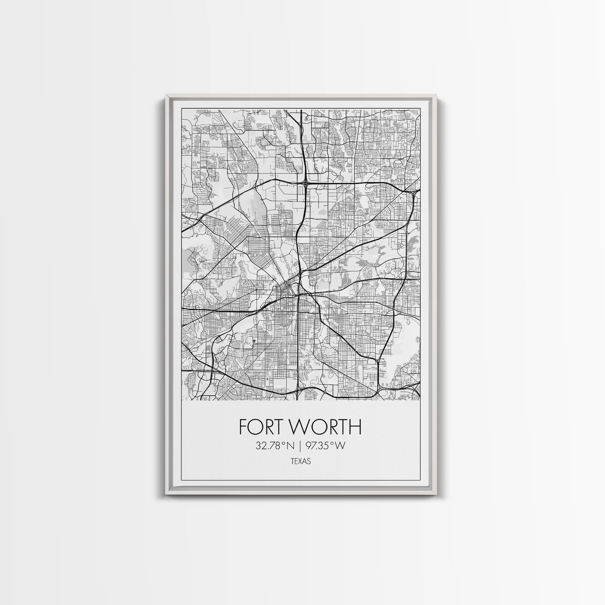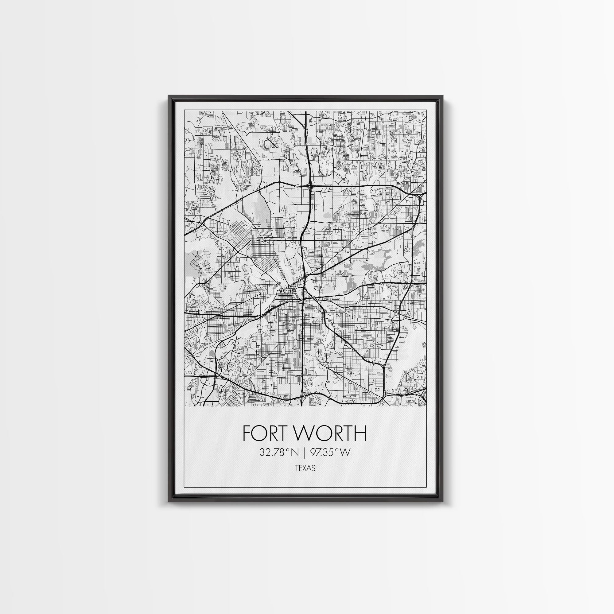 Fort Worth Street Map, Texas Map, City Map Art, Minimalist Art, Wall Art, Canvas Print, Travel Wall Art, Gifts For Women, Man Cave Décor