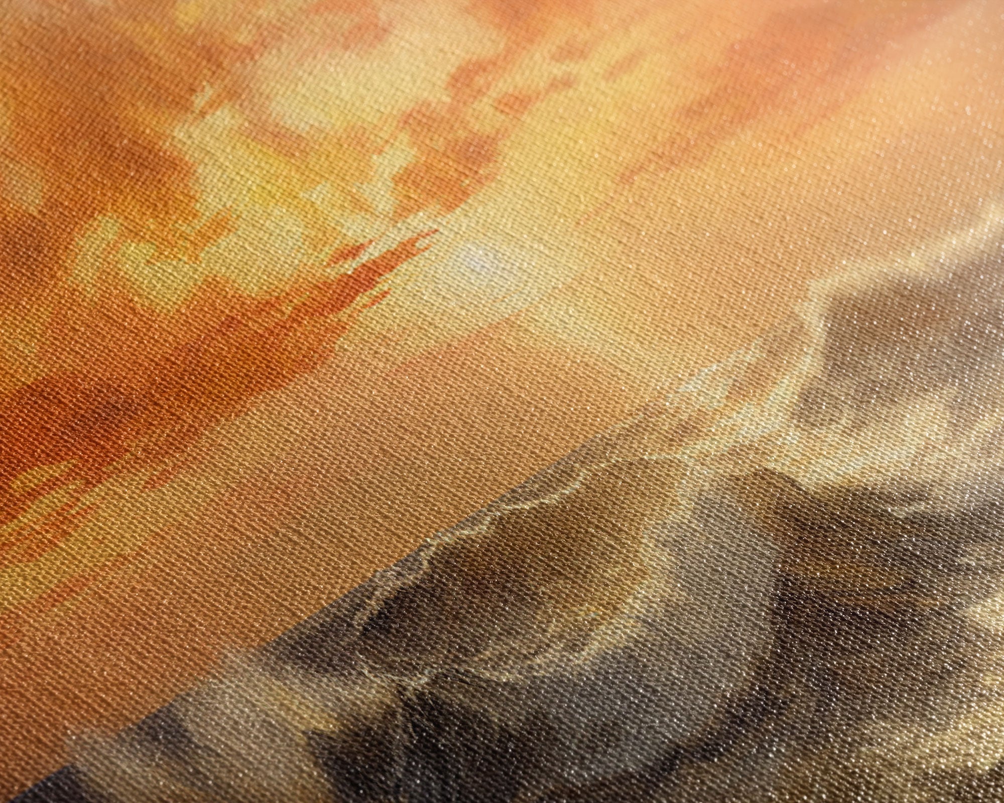Most of our canvases are made in the USA, with the exception of canvases ordered with the light oak unstained frames, and any large canvases (24x48, 30x60, 16x48 and 20x60) ordered WITH a frame. These are temporarily made in and shipped from Europe, while we try to find a more consistent supplier in the USA.