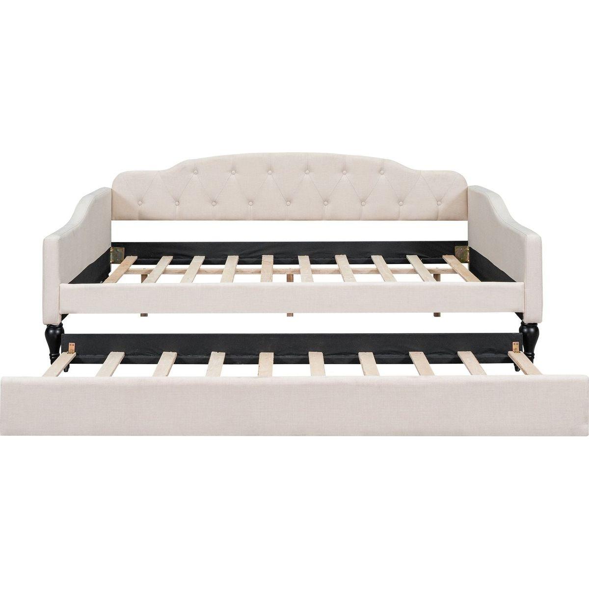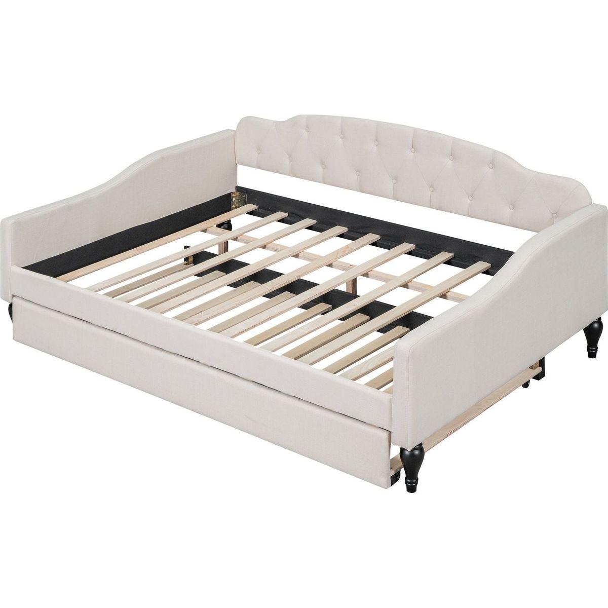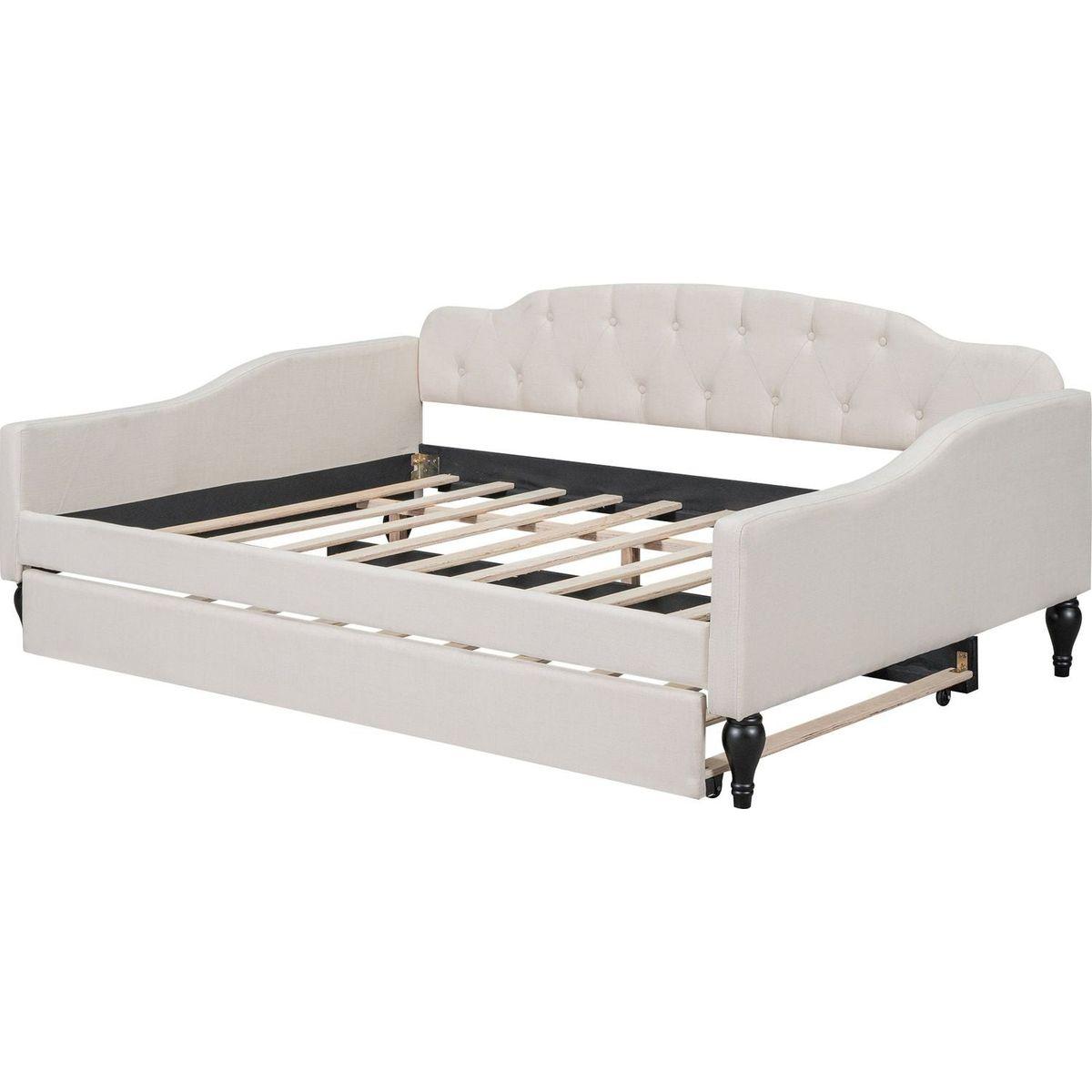 Full Size Upholstered Tufted Daybed with Twin Size Trundle, Beige