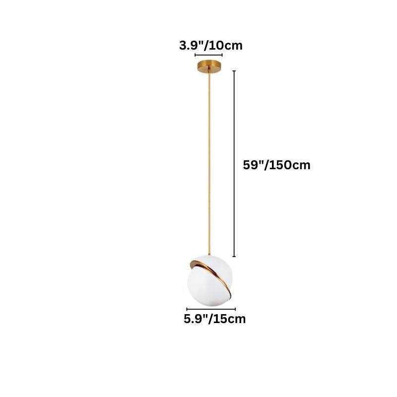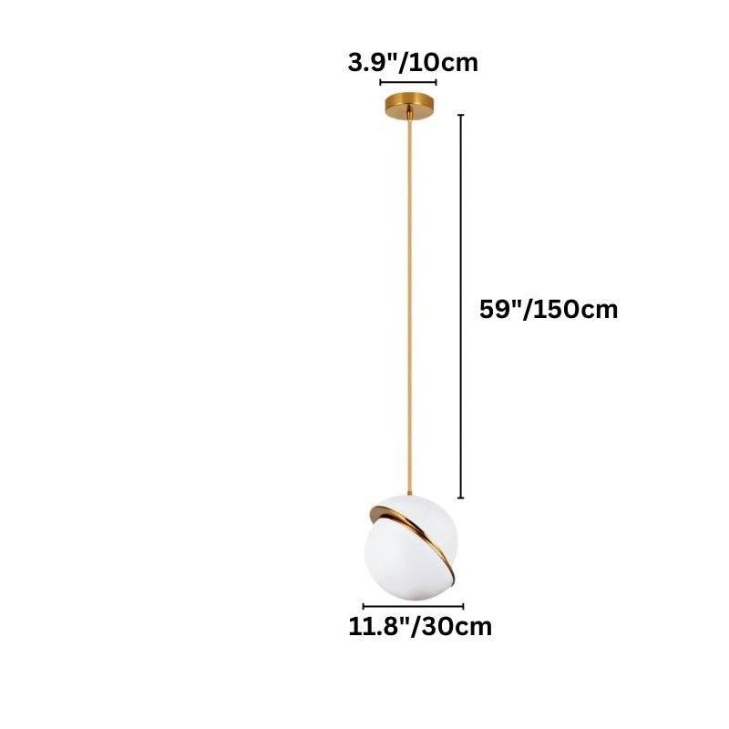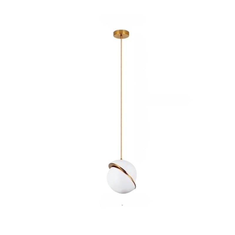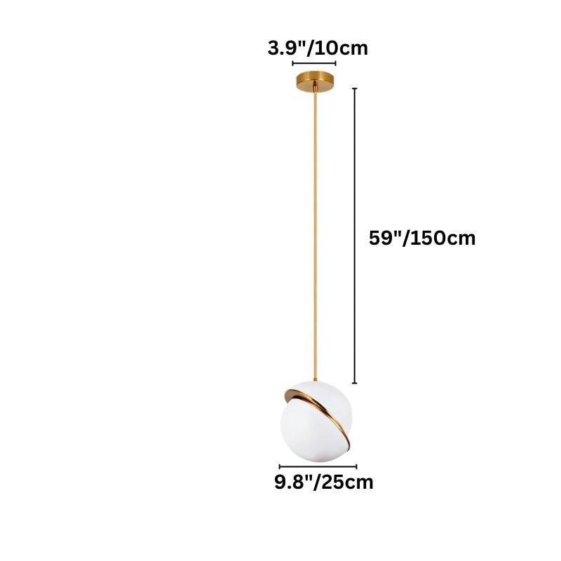 The Fysallida Pendant Light features an illuminated sphere that is asymmetrically sliced in half and made of opaque white acrylic and iron with a magnificent polished brass finish that lends weight to the striking design and grabs attention in any setting. This contemporary pendant light, which is warm and brilliant, creates a lovely, artistic lighting environment that will complement any interior style.