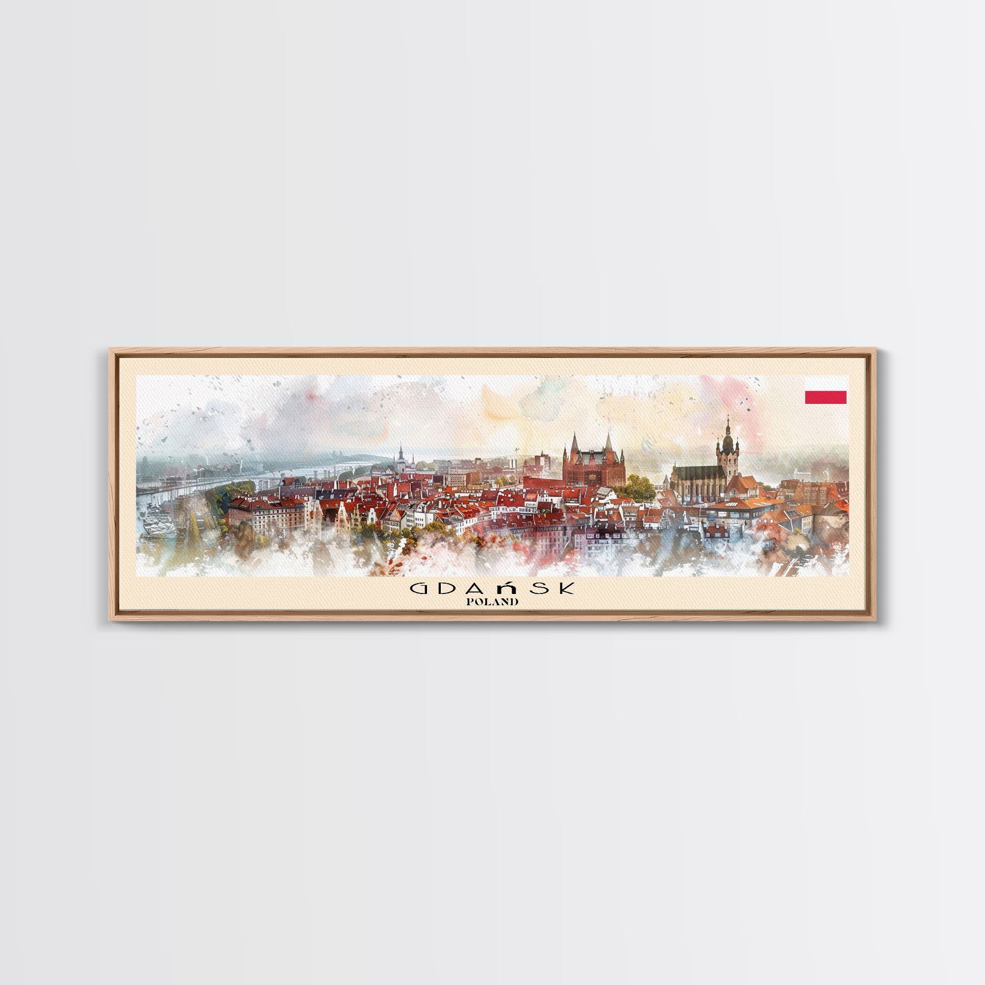 Gdansk Poland Travel Print Wall Art, Panoramic City Art, Travel Art, Wall Decor, Vacation Gift, Framed Canvas Print Or Metal Art