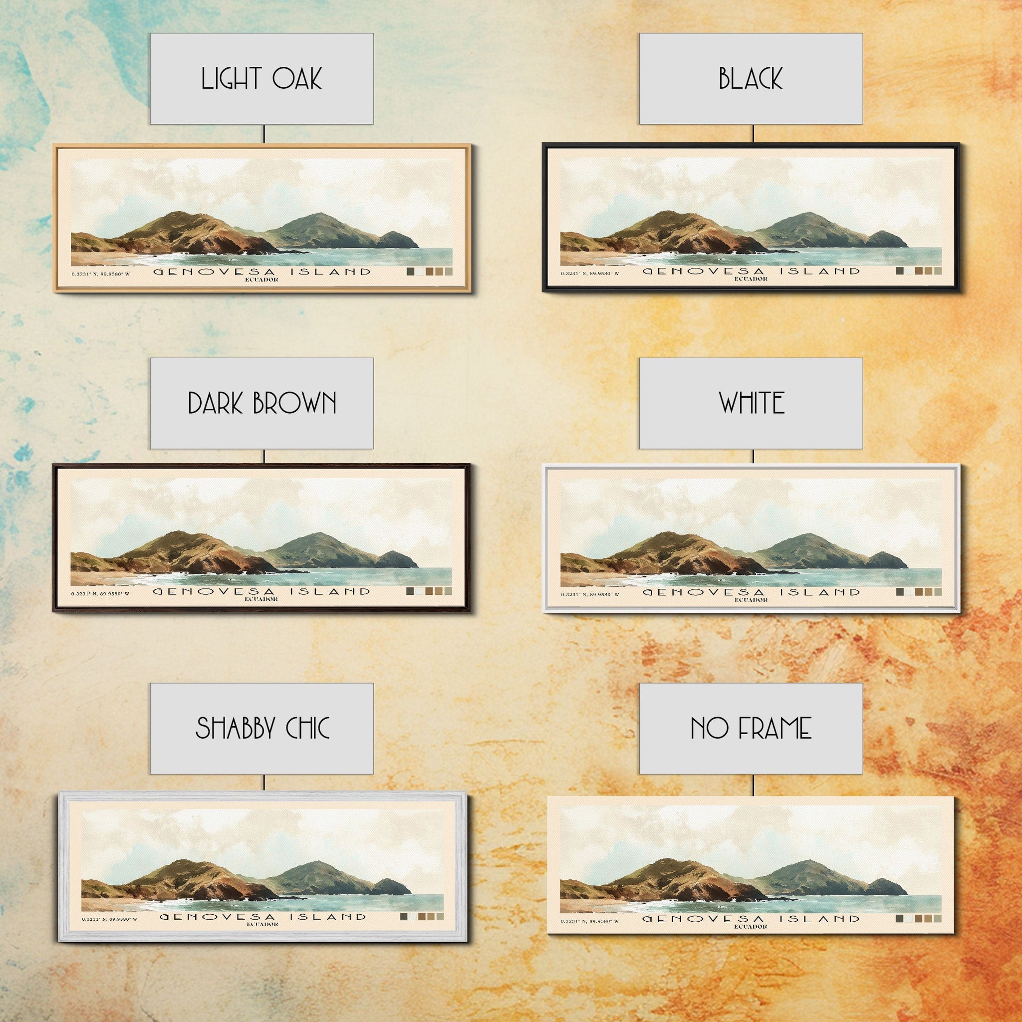 • Load image into Gallery viewer, Genovesa Island, Ecuador Watercolor Beach Print, Vacation Gift, Ecuador Wall Art, Framed Canvas Print, Framed Beach Painting