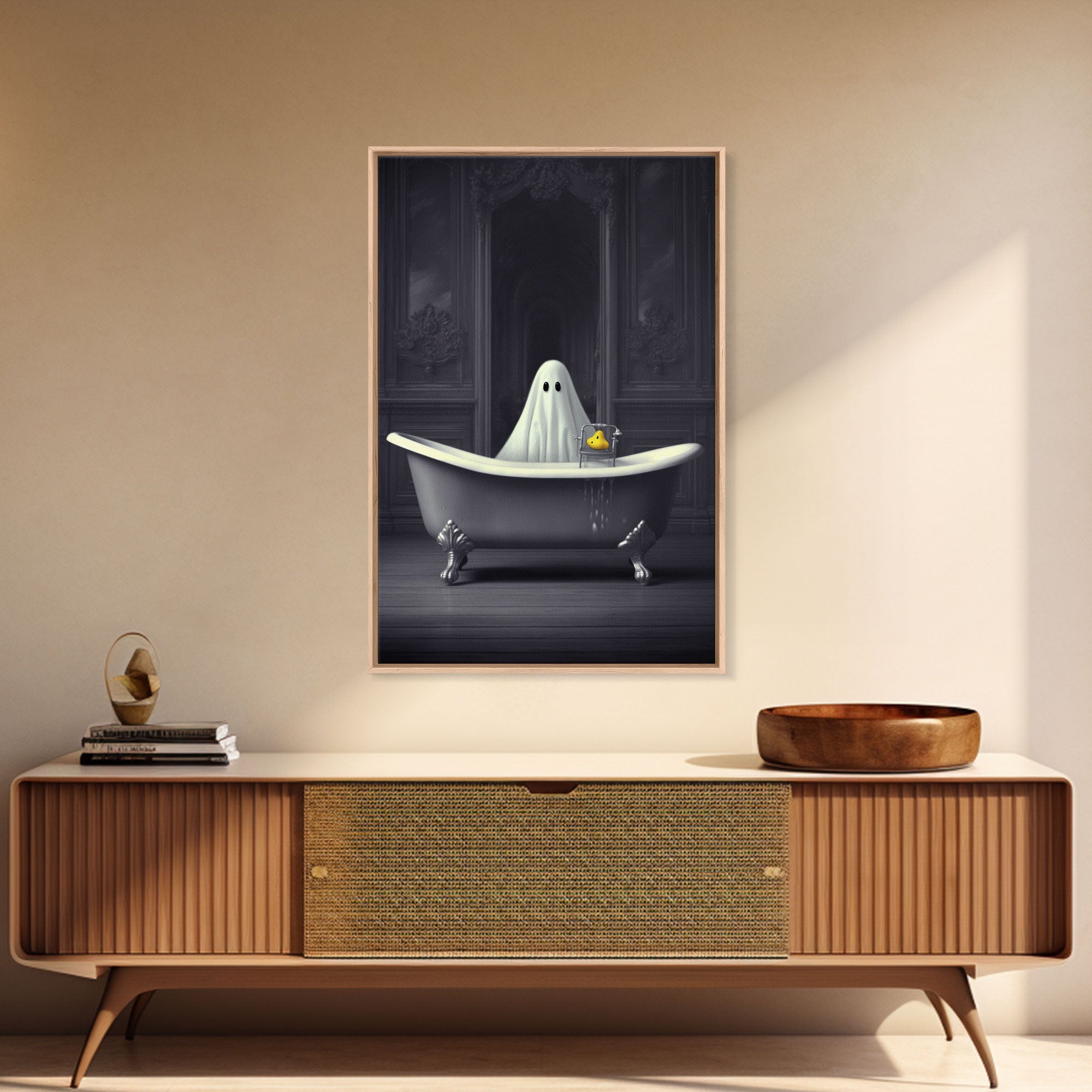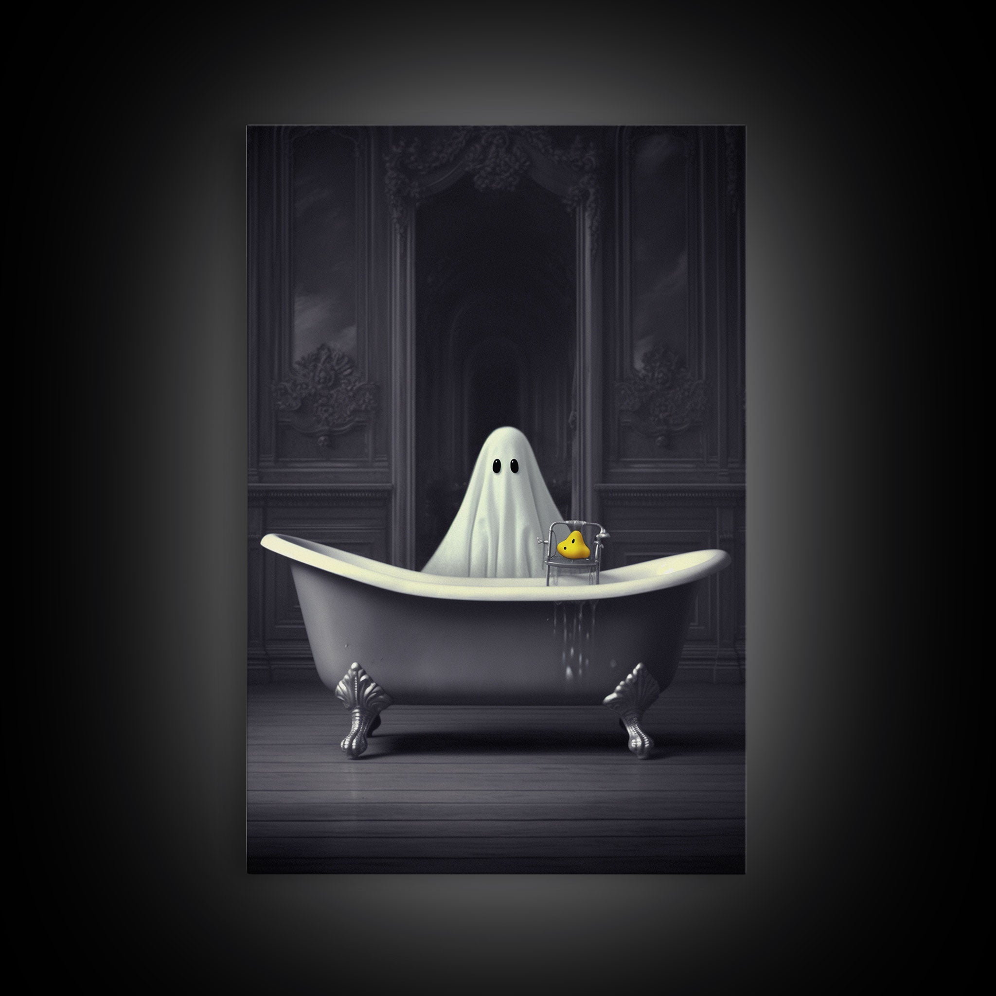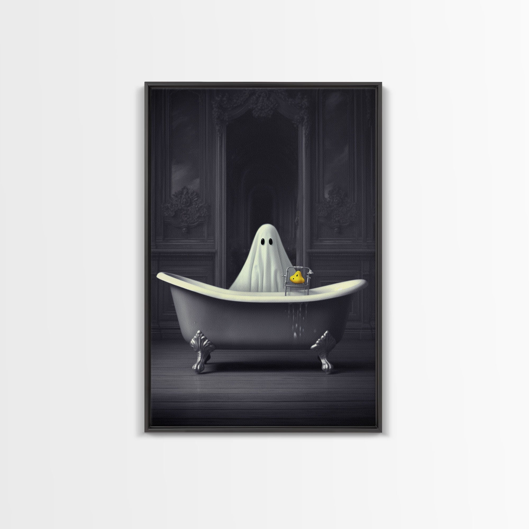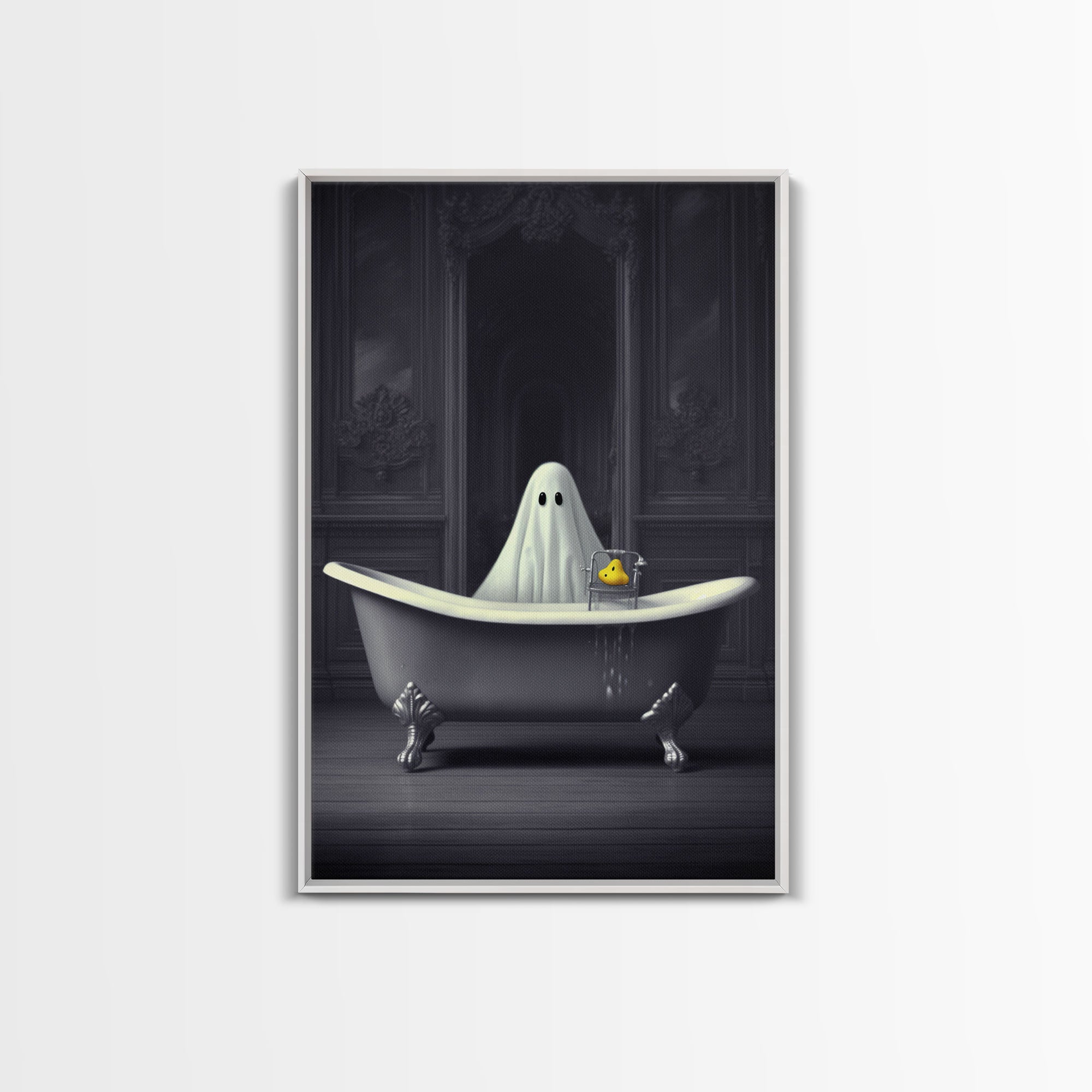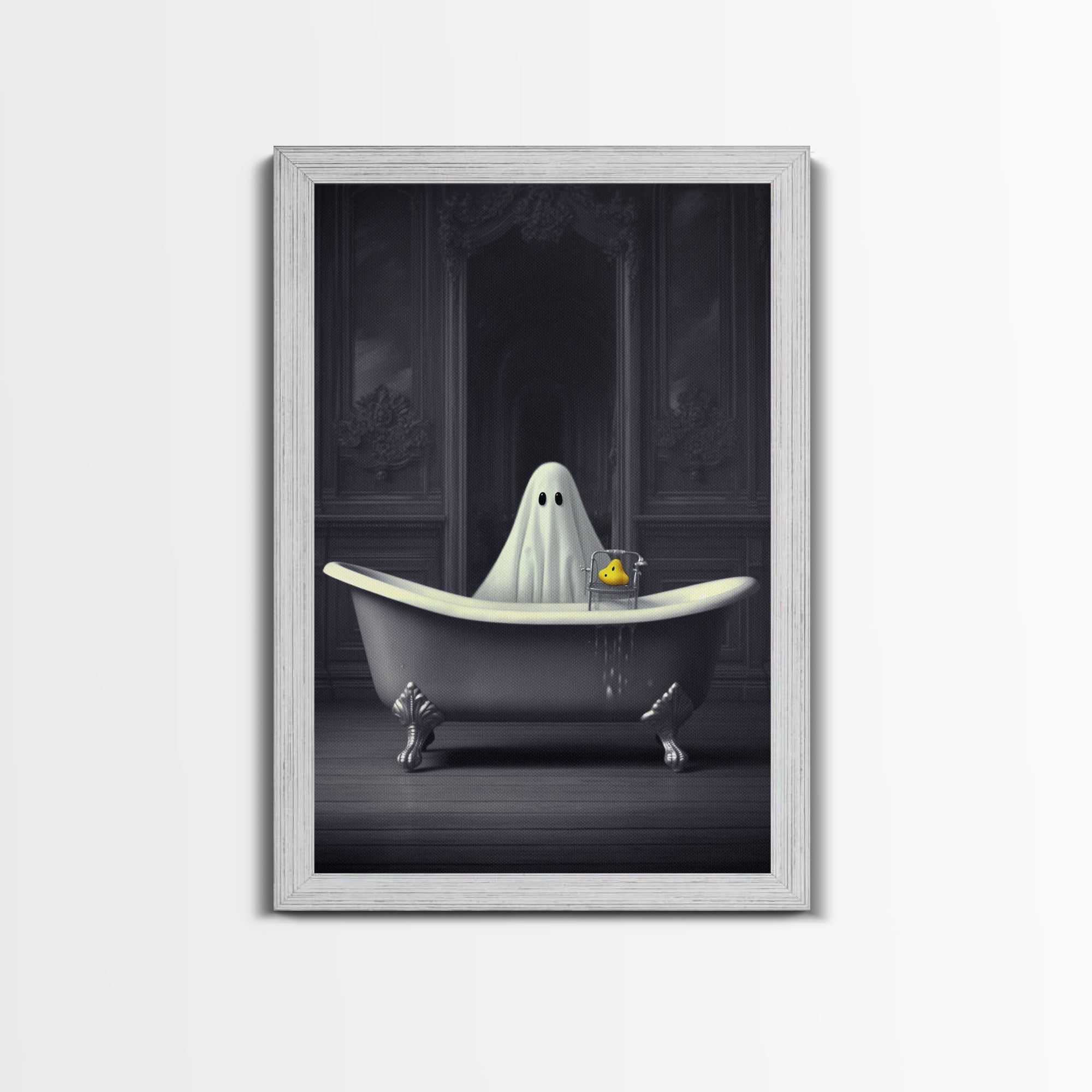 Ghost Bathroom Canvas, Dark Romantic Ghost Standing in Bathroom Creepy,  Ghost in the Bath tub Wall Art Halloween Canvas, Funny Halloween
