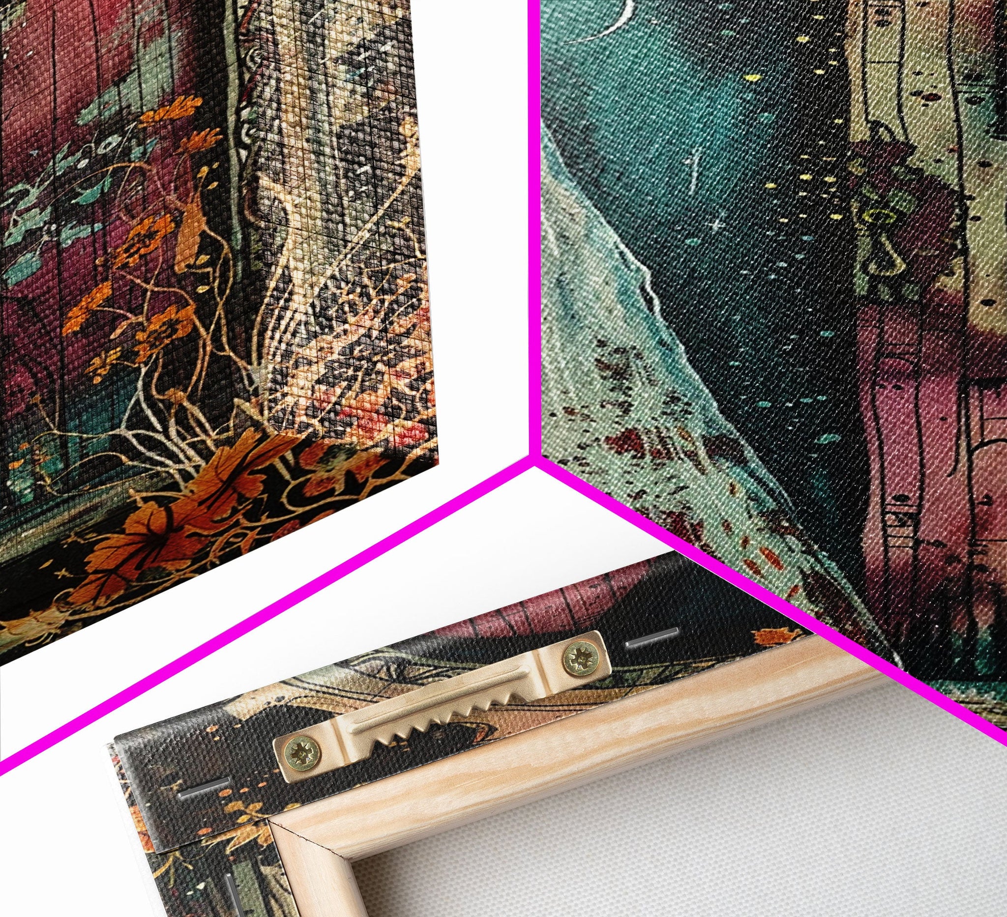 Ghostly Figure at Haunted Door Framed Canvas Print, Halloween Spirit Decor, Spooky Ghost Art, Haunted House Wall Art, Creepy Ghostly Print