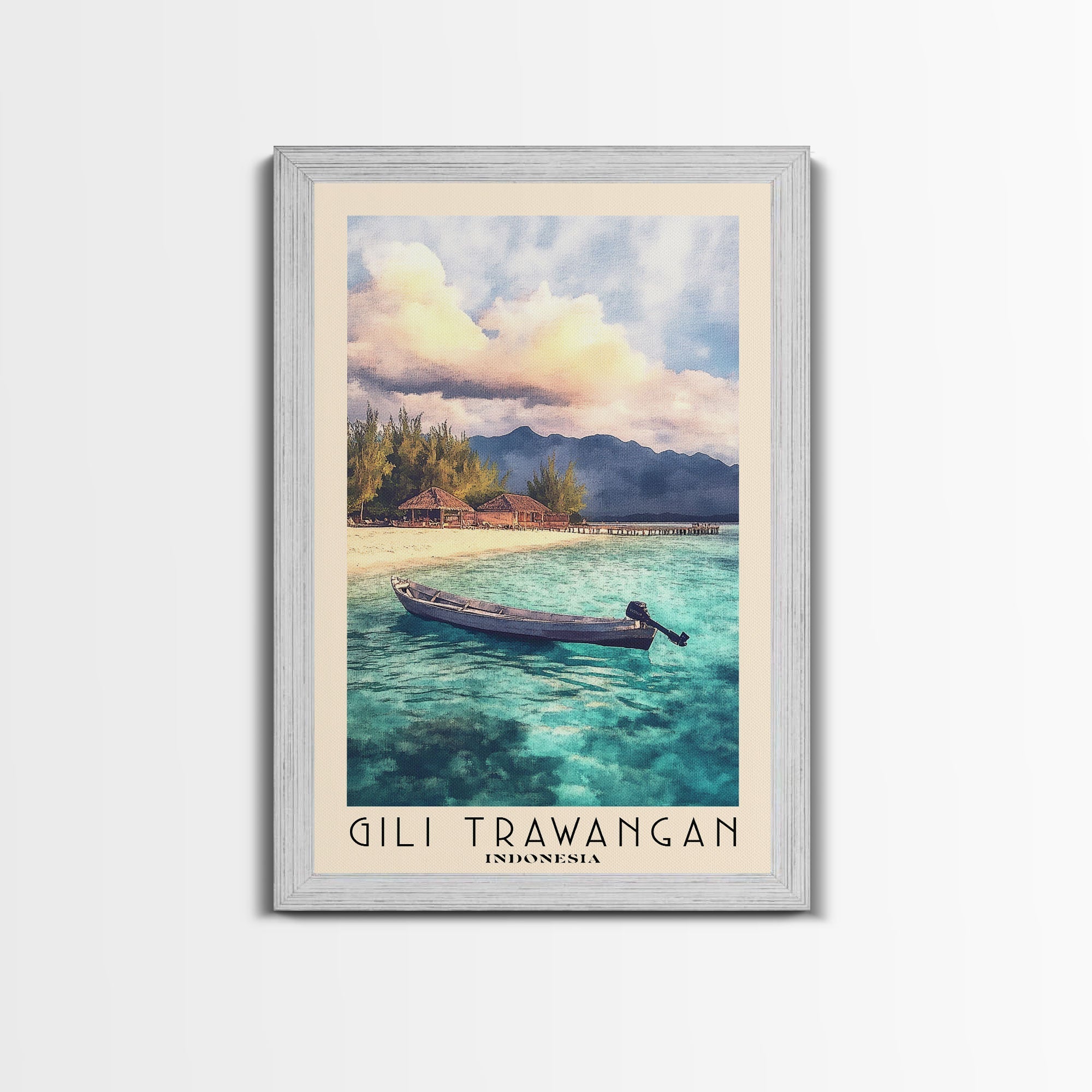 Gili Trawangan, Indonesia Watercolor Beach Print, Vacation Gift, Indonesia Wall Art, Framed Canvas Print, Framed Beach Painting