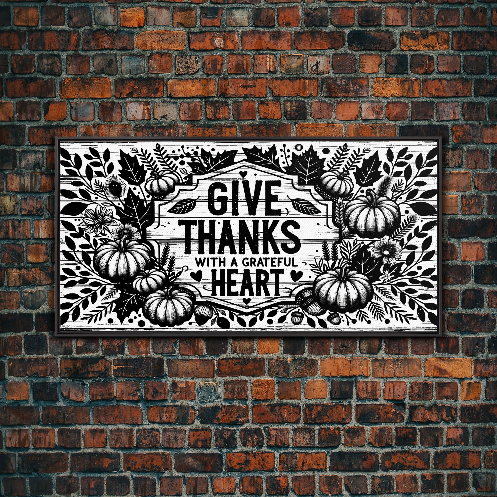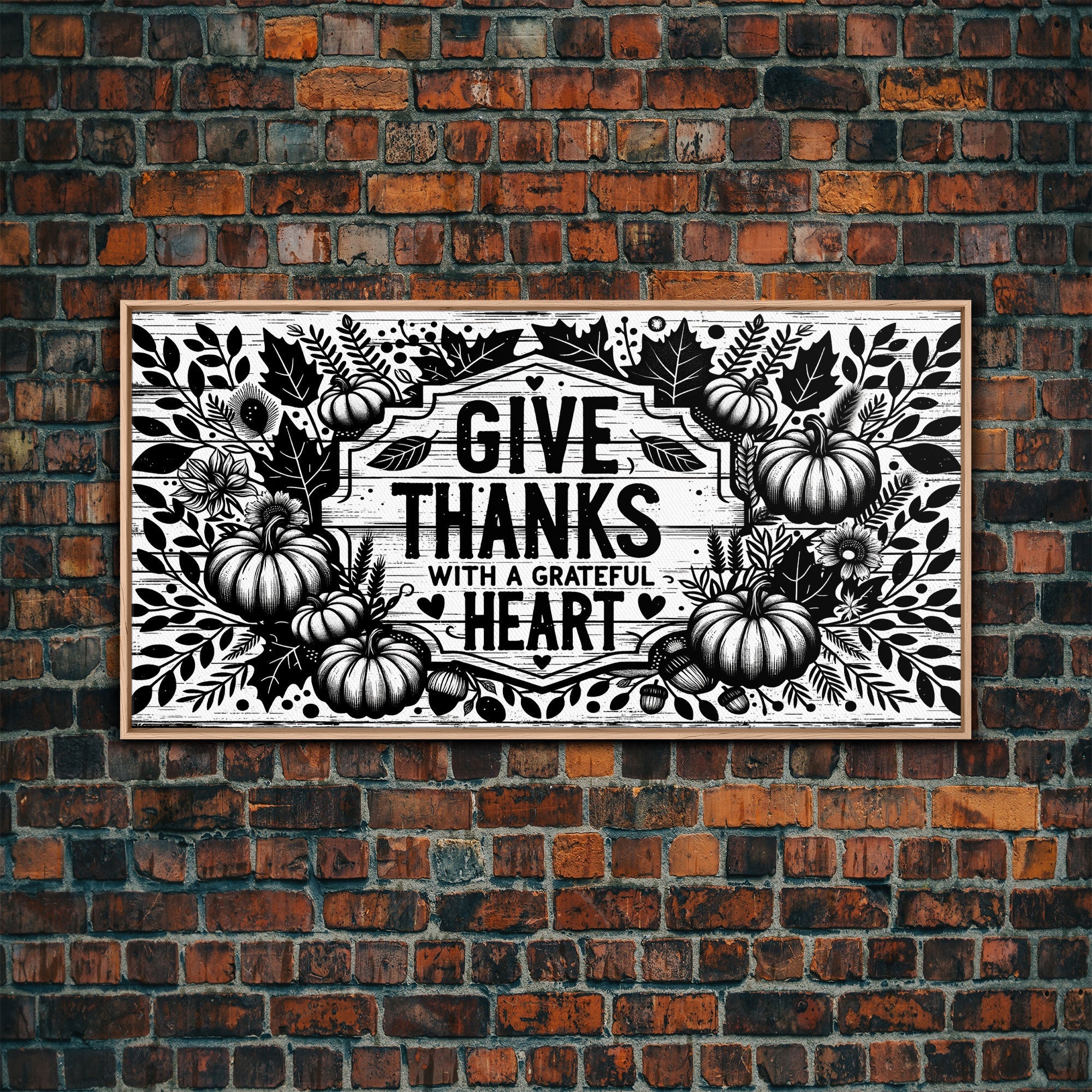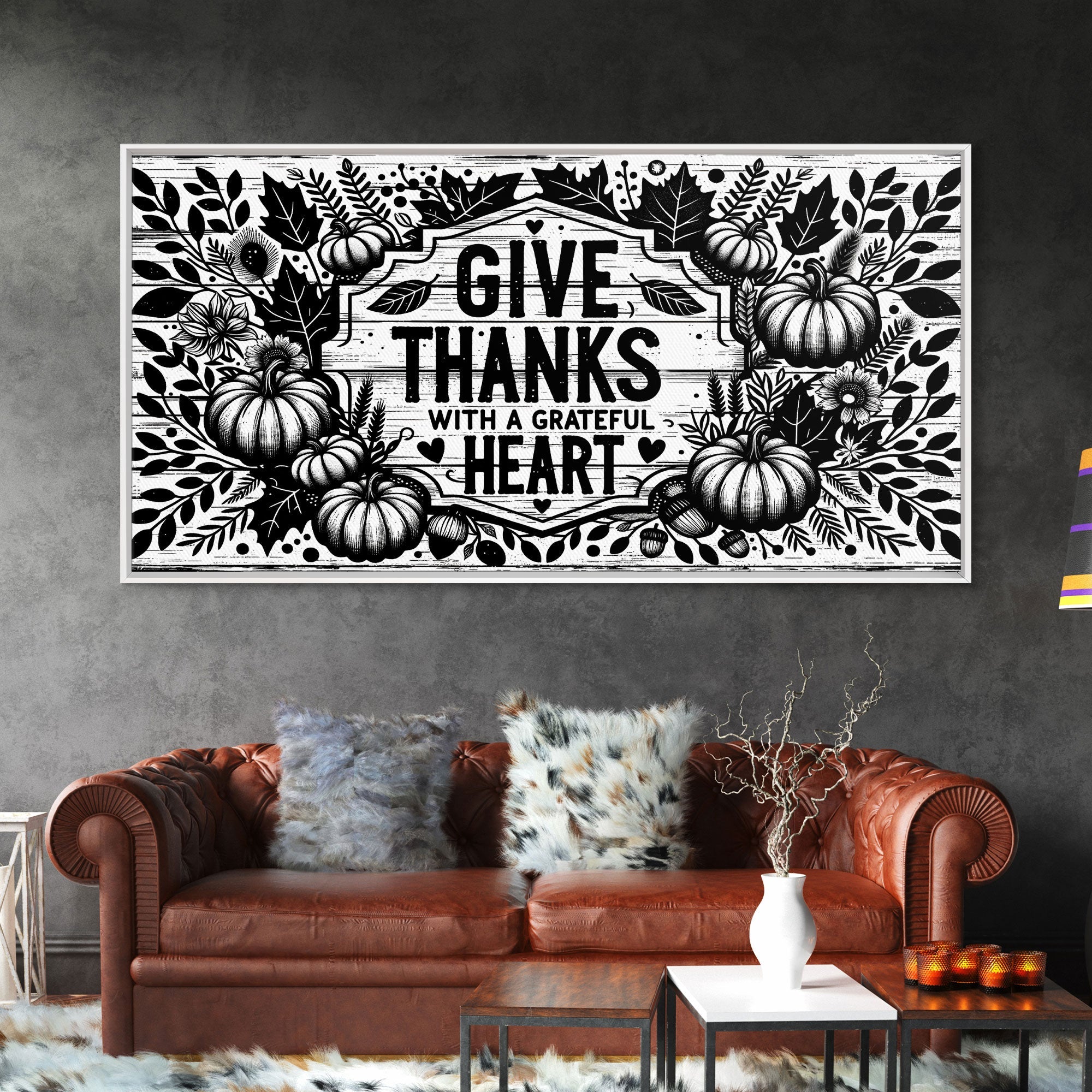 Give Thanks With A Grateful Heart Modern Farmhouse Wall Decor, Dining Room Wall Sign Kitchen Decor Large Framed Canvas Print, Fall Wall Art