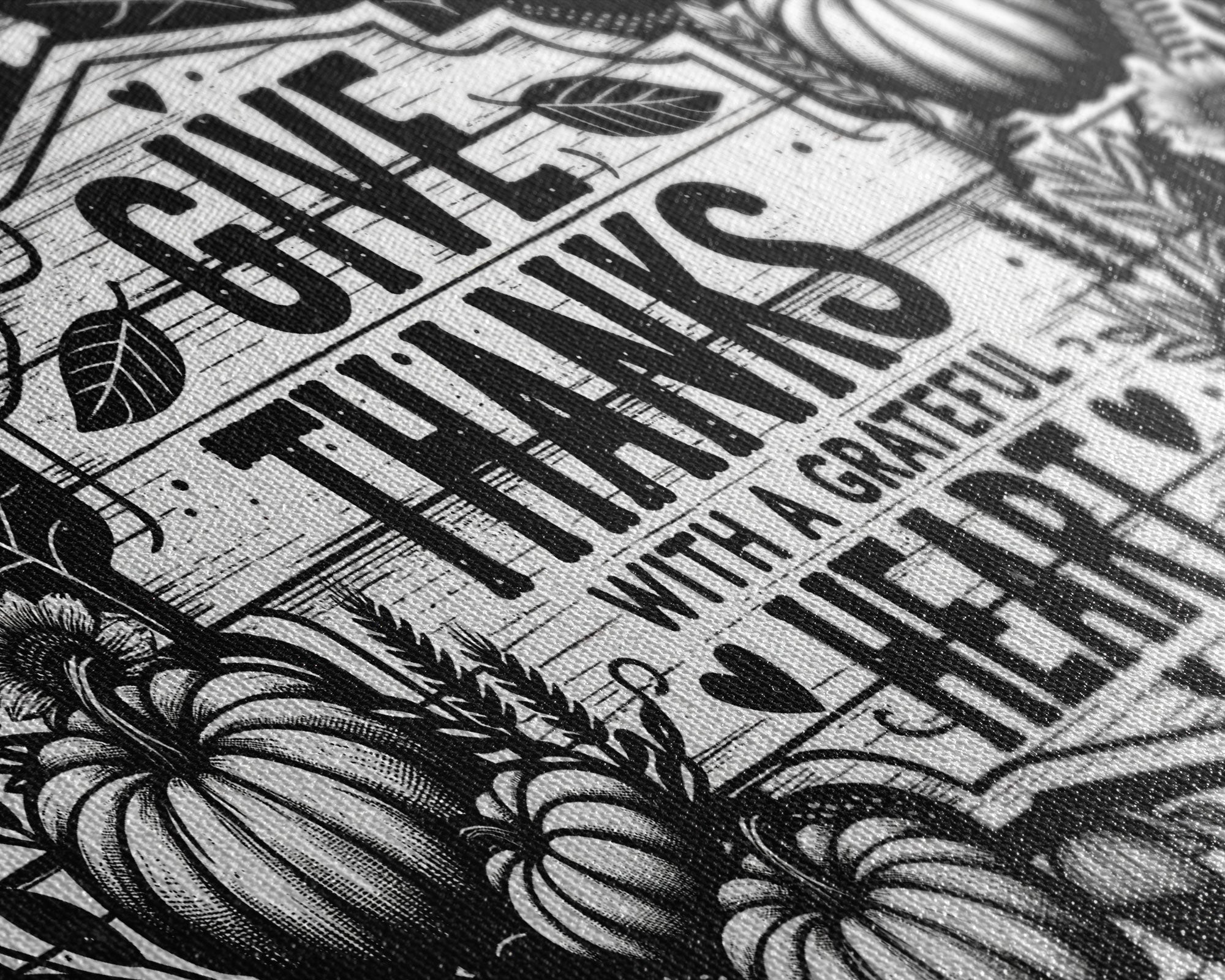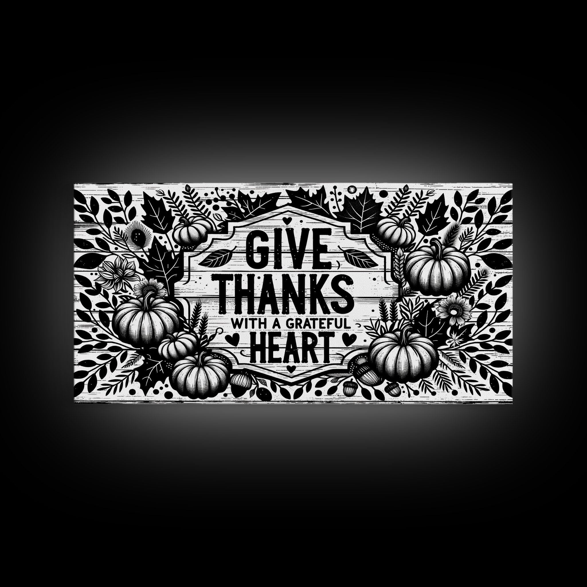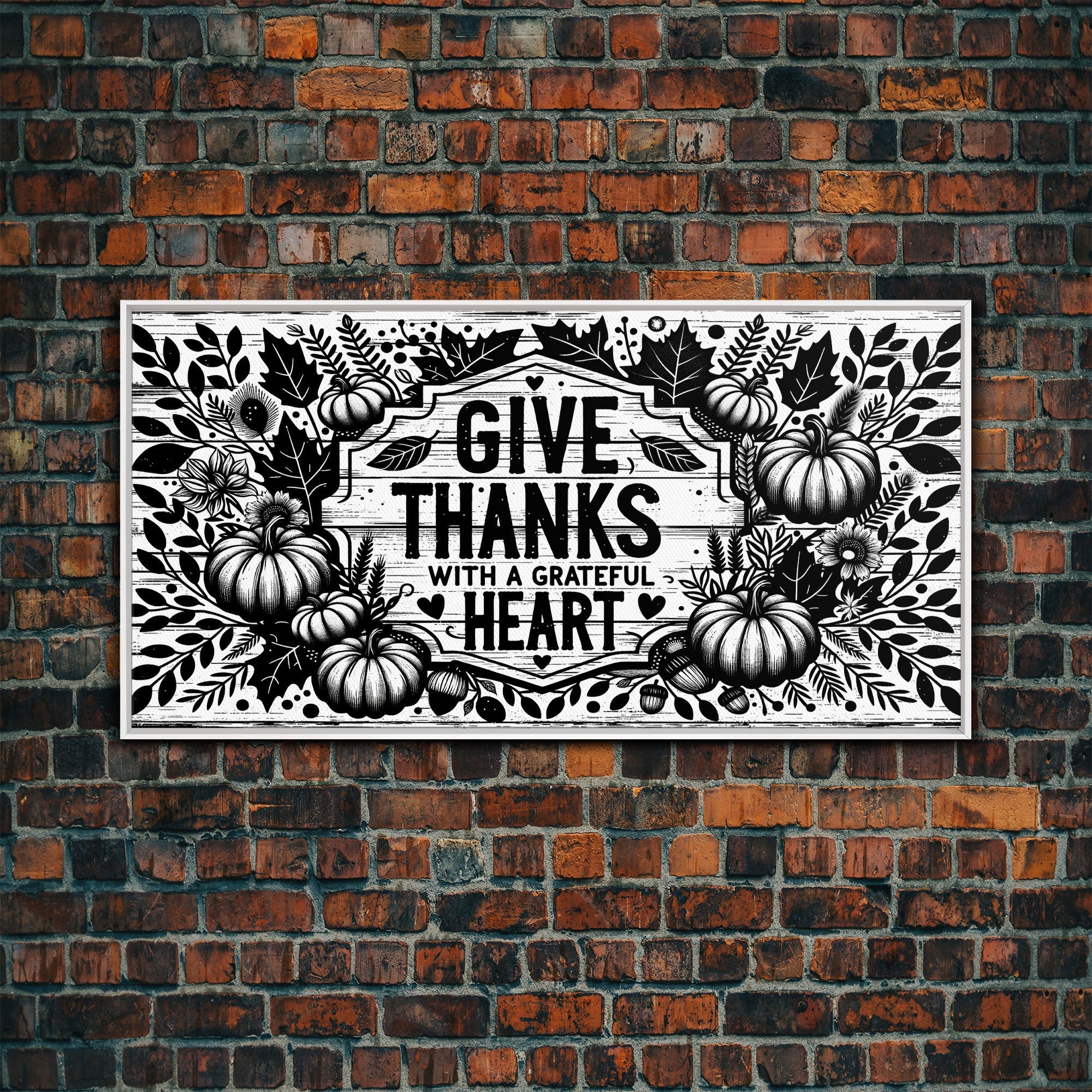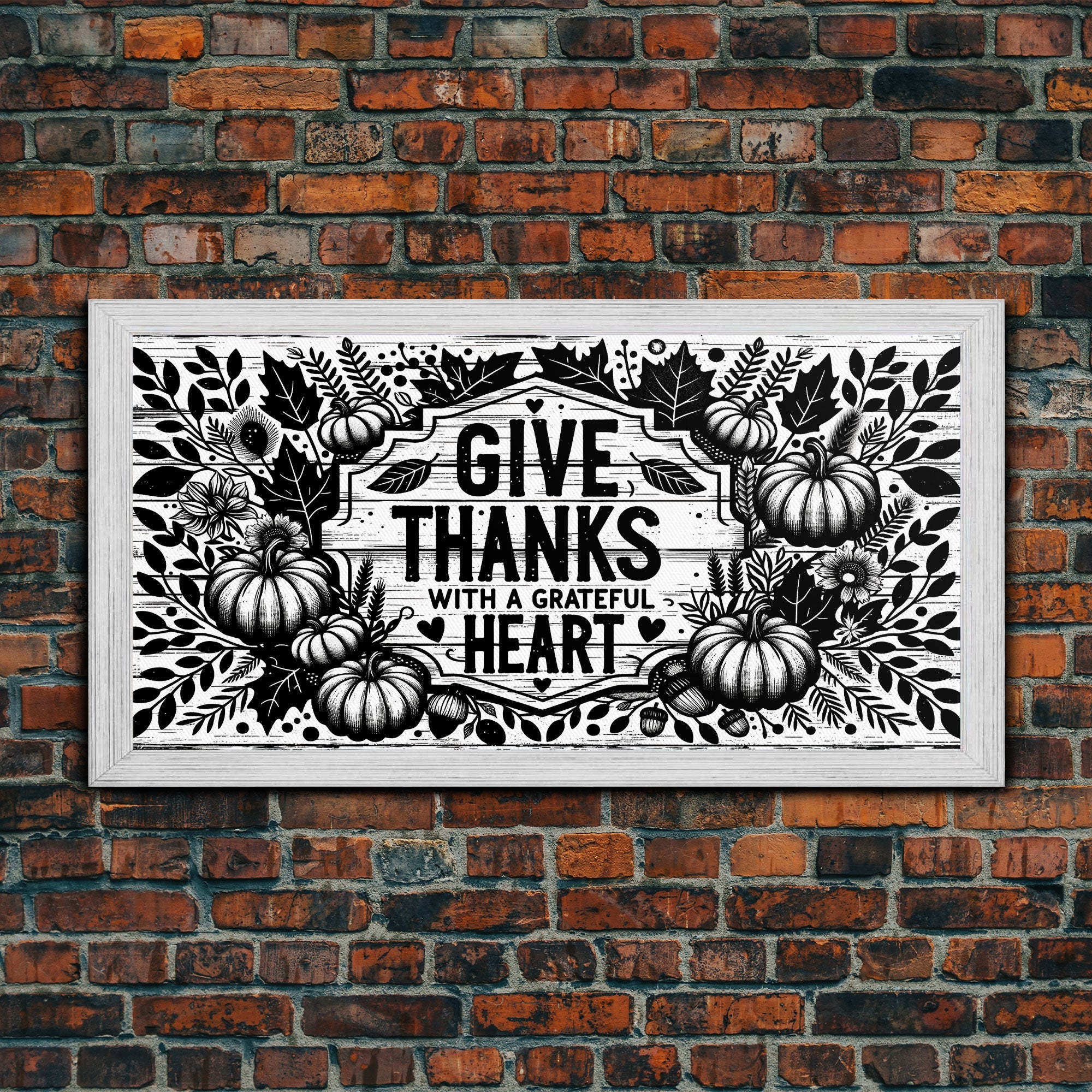 Give Thanks With A Grateful Heart Modern Farmhouse Wall Decor, Dining Room Wall Sign Kitchen Decor Large Framed Canvas Print, Fall Wall Art