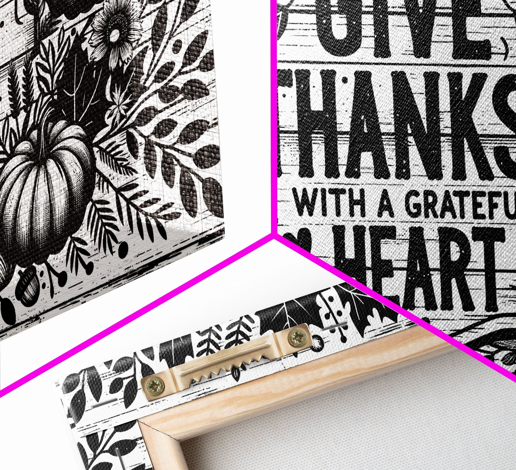 • Load image into Gallery viewer, Give Thanks With A Grateful Heart Modern Farmhouse Wall Decor, Dining Room Wall Sign Kitchen Decor Large Framed Canvas Print, Fall Wall Art