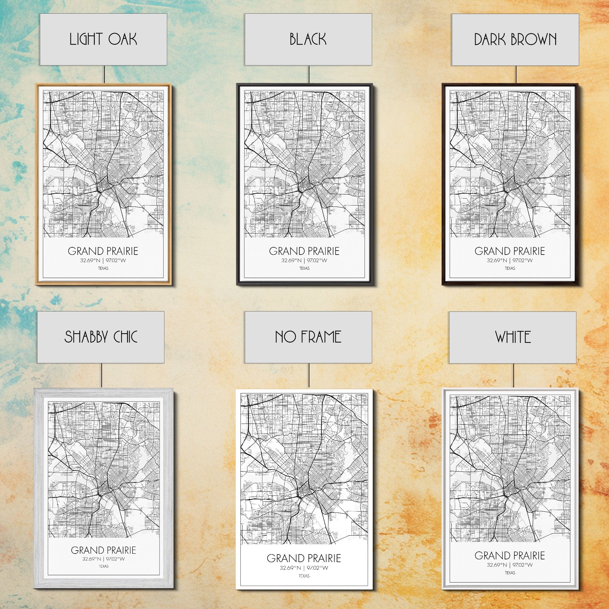 Grand Prairie Street Map, Texas Map, City Map Art, Minimalist Art, Wall Art, Canvas Print, Black And White, Travel Print, Anniversary Gift