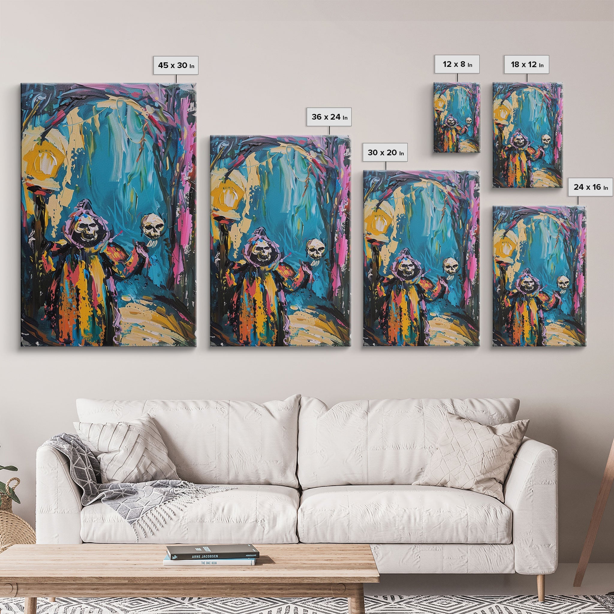 Halloween Ghostly Figure with Lantern Framed Canvas Print, Spooky Wall Art, Home Decor, Haunted Decor, Gift Idea, Night Haunt