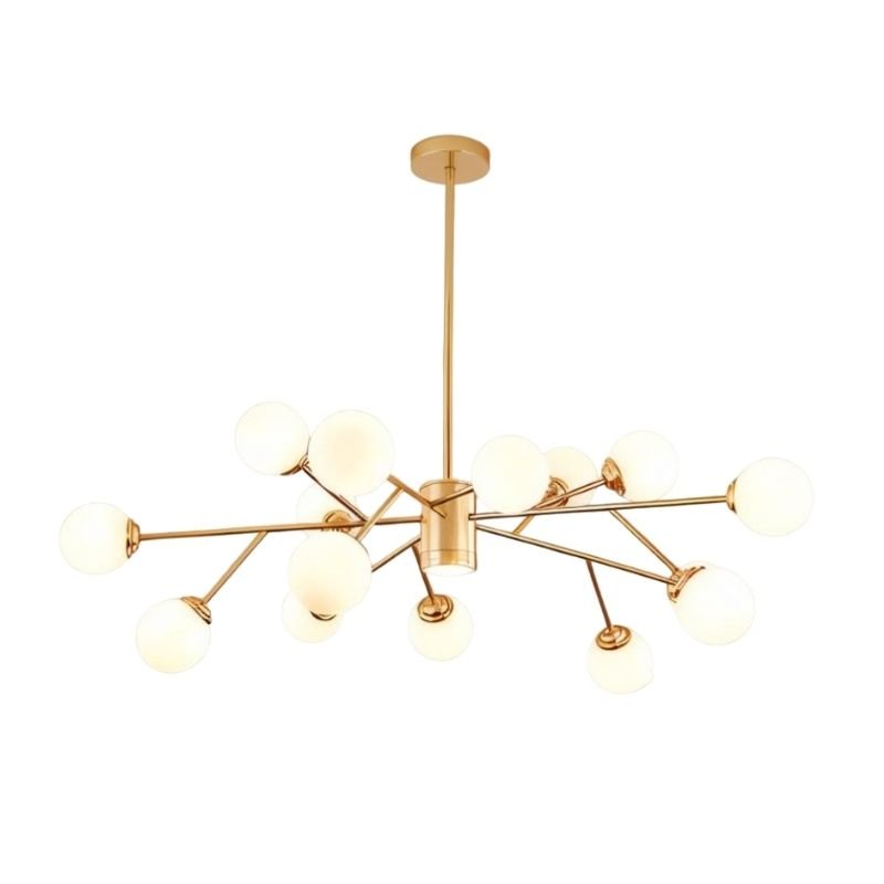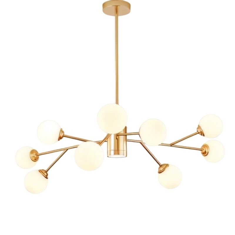 The Helena Chandelier is a versatile piece that exudes elegance and class. It is crafted from high-quality aluminum and available in beautiful hues of gold and black. Its sleek design provides ample lighting and creates a cozy ambiance, elevating the overall aesthetic of your space. This striking chandelier is perfect for illuminating dining rooms, living rooms, bedrooms, and entryways, adding a touch of drama and elegance to any space.
