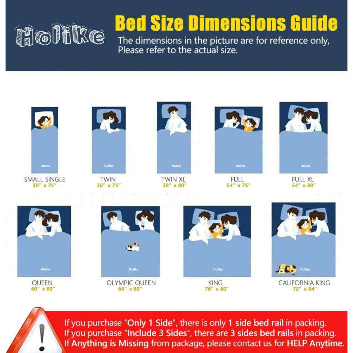 PERFECT FIT: Perfect for kid twin beds, full beds, doubles, queens and kings. ONLY for use with bed and box spring. NOTE: Please pay attention to the difference between “1 Side” or “3 Sides” and the difference size of the bed when purchasing.