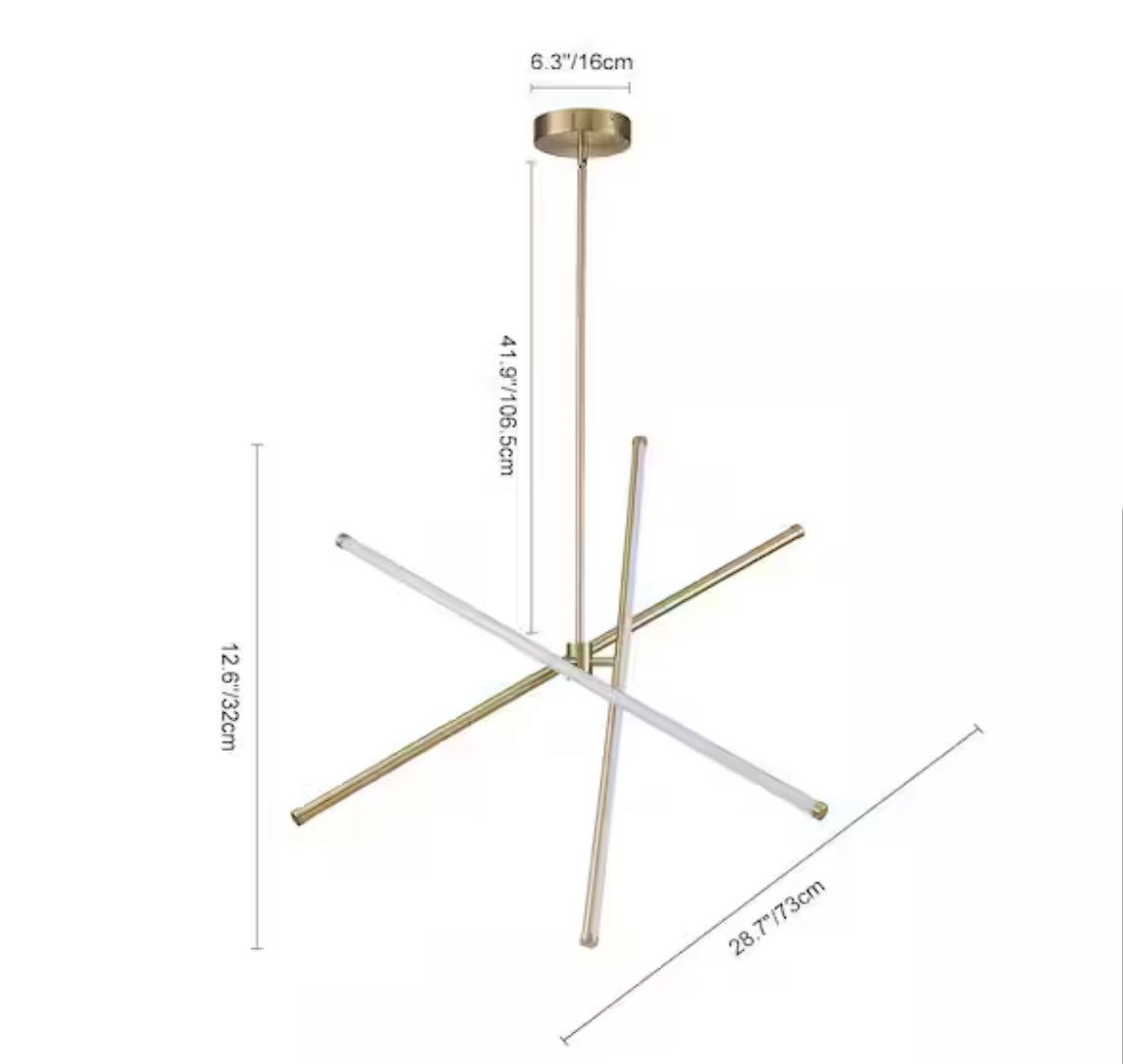 Add a touch of creativity and functionality to your contemporary living space with our 3-light LED tube sputnik chandelier. Featuring 3 rotatable built-in LED tubes, this chandelier provides efficient lighting while adding a flexible and modern look. Crafted from high-quality die-cast aluminum, our Modern 3-Light Cross Arms Sputnik LED Chandelier in Aged Brass Finish catches the eye with its luminous fixture and bar finish. Our Modern Minimalism Linear LED Chandelier doubles as sculptural art, with a repositionable arm that lets you create the ideal outlook. This chandelier features 3 slender integrated LED strips, eliminating the need for bulb replacement. The LED light source is evenly attached to the center lamp housing, forming a neutral and attractive presence. Highlight and enhance any decor or setting with this versatile and beautiful modern minimalism linear LED chandelier.