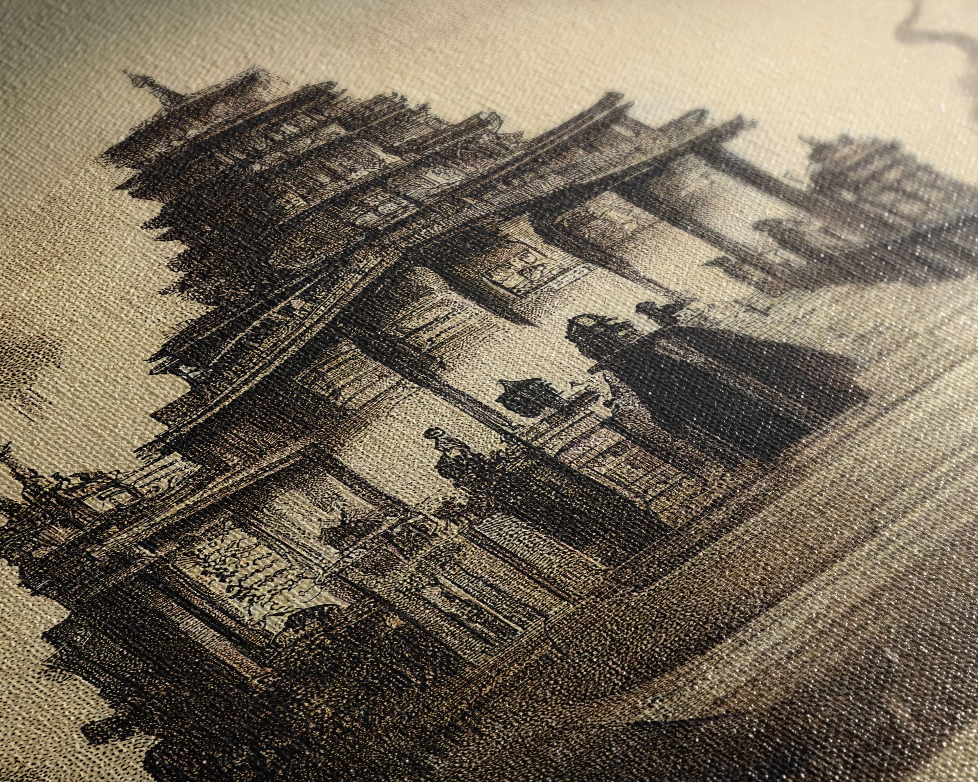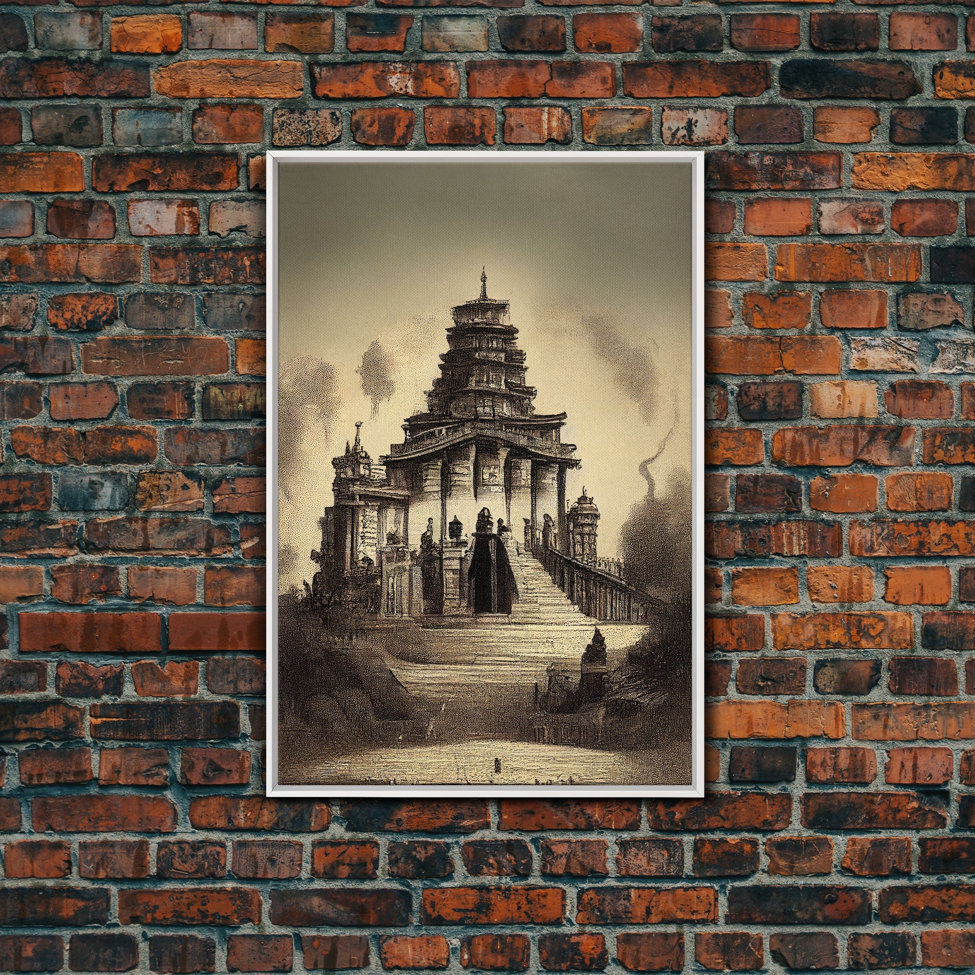 Incan Temple diagram art, canvas print, unique Mayan or Incan style temple diagram wall art, 1800s inca style wall art