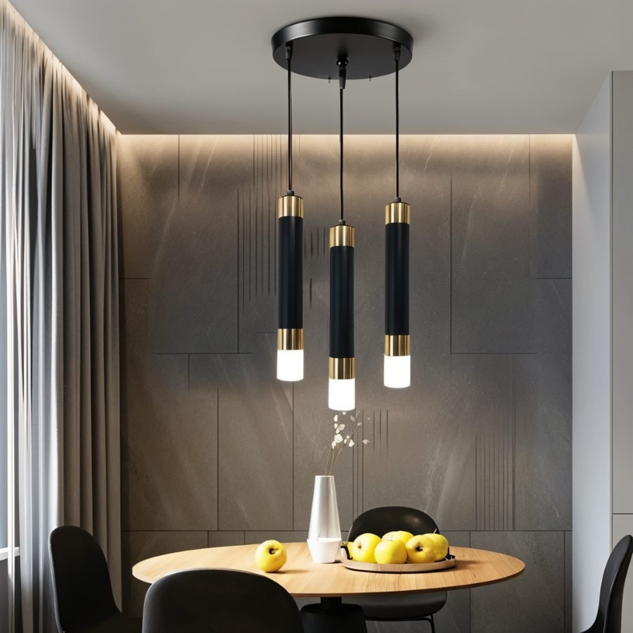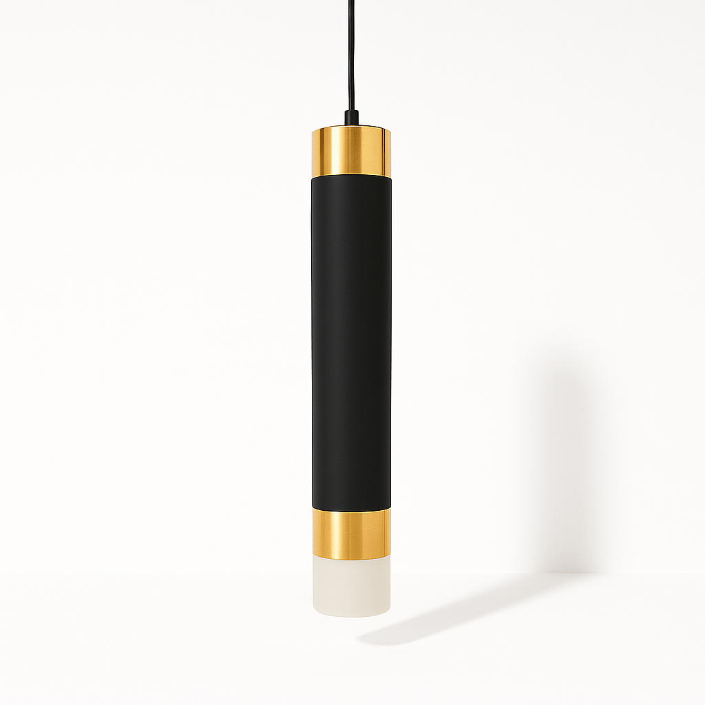 The Ivanna Pendant Light is a striking masterpiece designed to transform your décor. Crafted with exquisite detail from premium metals, its matte black finish with gold accents radiates elegance while the frosted acrylic diffuser delicately softens and distributes illumination throughout your space. Whether suspended above a spiraled staircase or gracing the heart of your living room, this luminaire is the perfect addition to any home.
