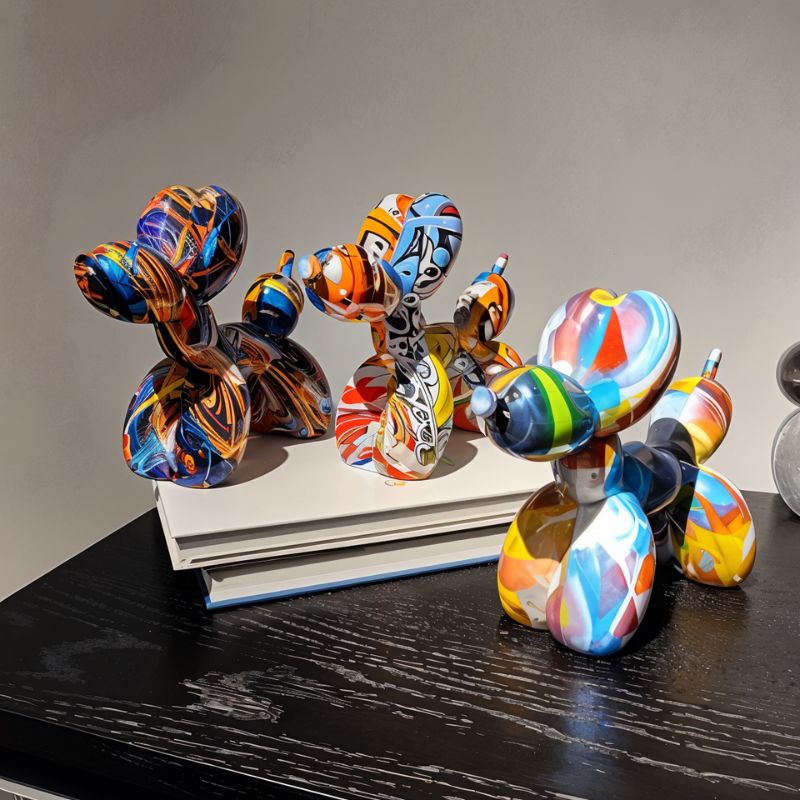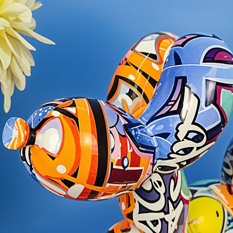 The Kyon Home Decor is aesthetically pleasing and artistically charming. It is artisan-made and expertly crafted from durable, high-quality resin featuring a figurine of a balloon dog with colorful graffiti or patterns on it. Kyon brings all the joy, flair, and uniqueness that any modern setting deserves and comes in a range of vibrant, eye-catching patterns making it the perfect addition to your existing decor or as a gift for a birthday, Christmas, or any other occasion.