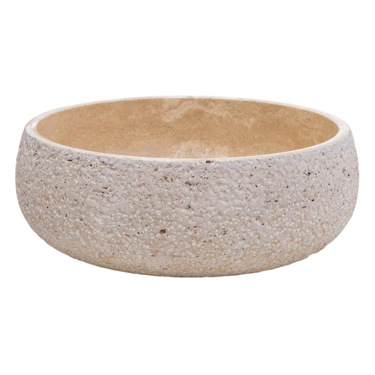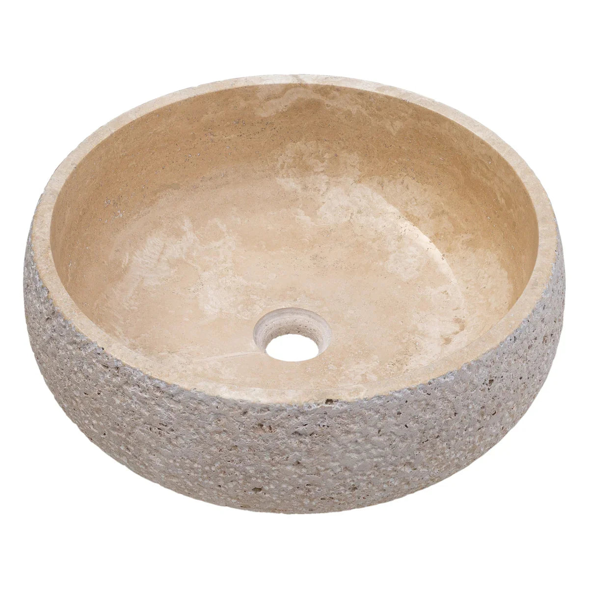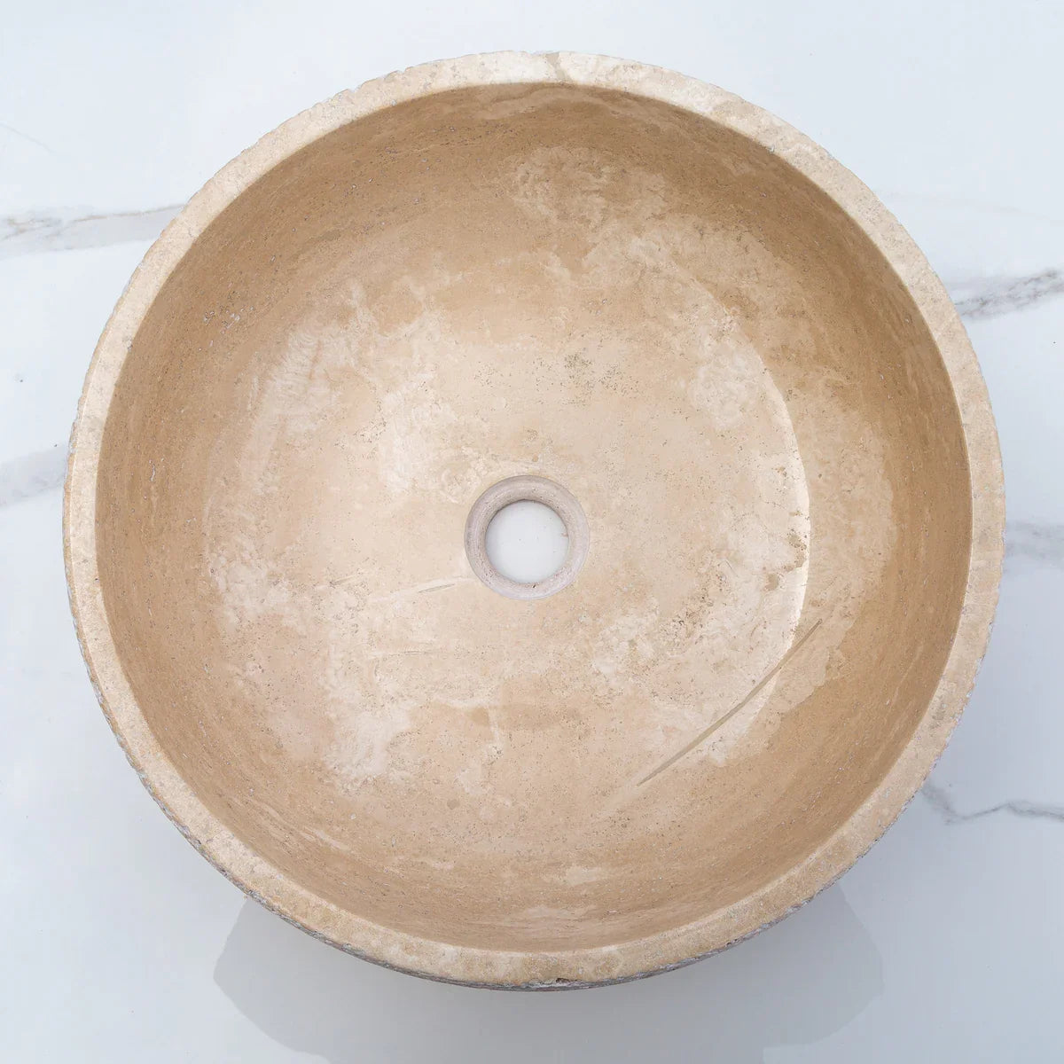 Light Beige Travertine Above Vanity Bathroom Sink Rustic Outside (D)16" (H)6"- Modern Aesthetic Travertine Round Sink Handcrafted in Turkey. It can be used above-vanity.