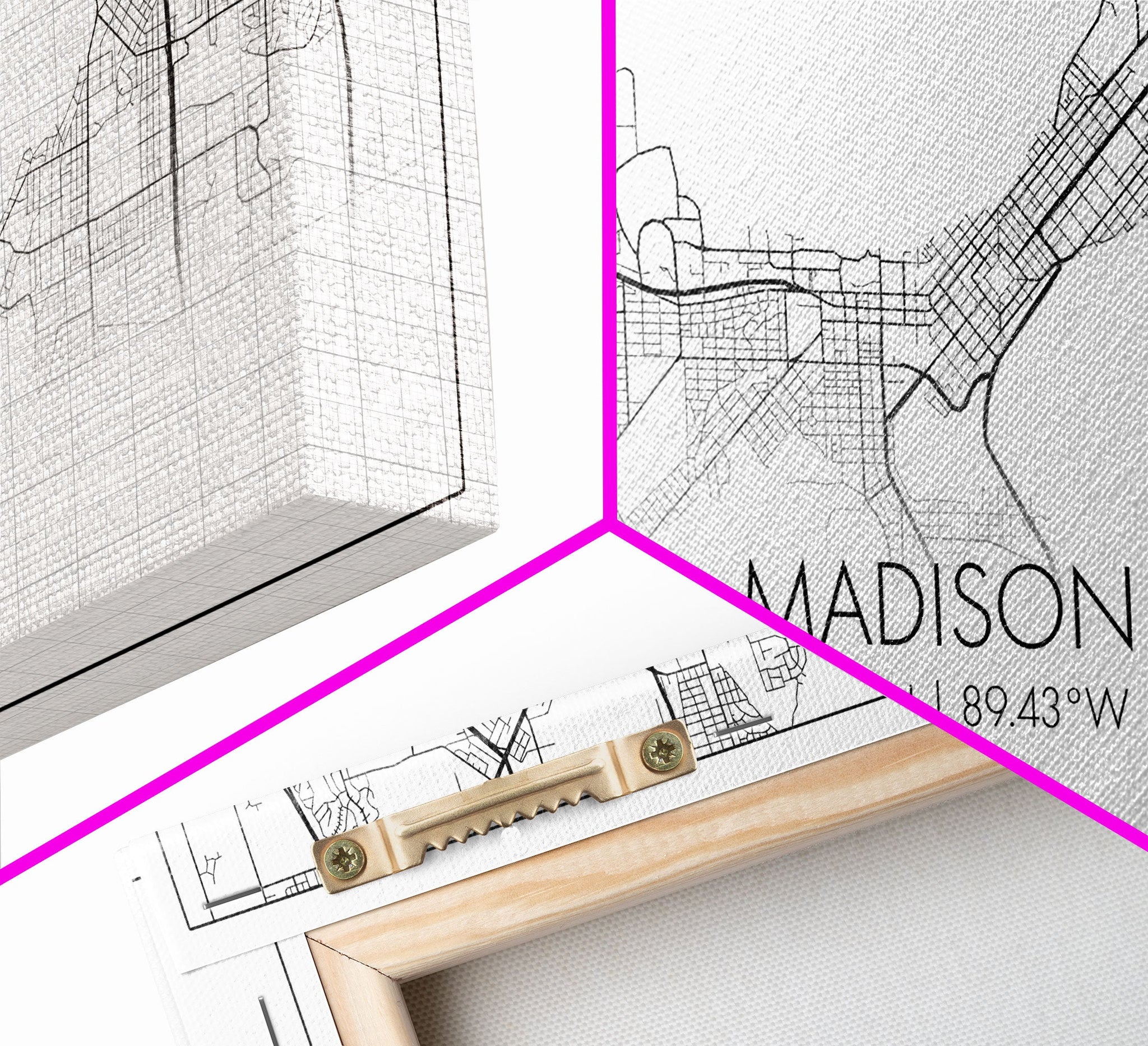 Madison City Map, Wisconsin Map, Map Art, Modern Art, Wall Art, Canvas Art, Unique Gifts, Large Wall Art, College Décor, Room Décor, Prints